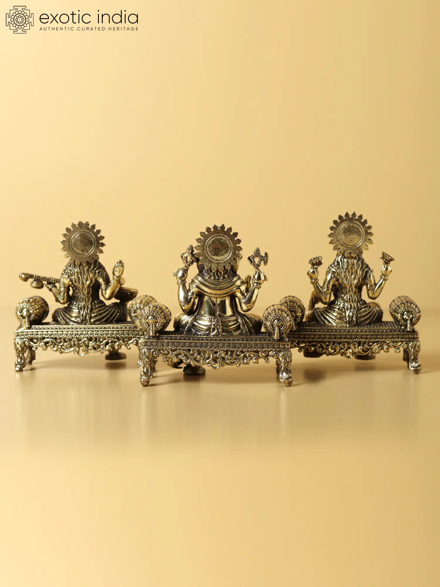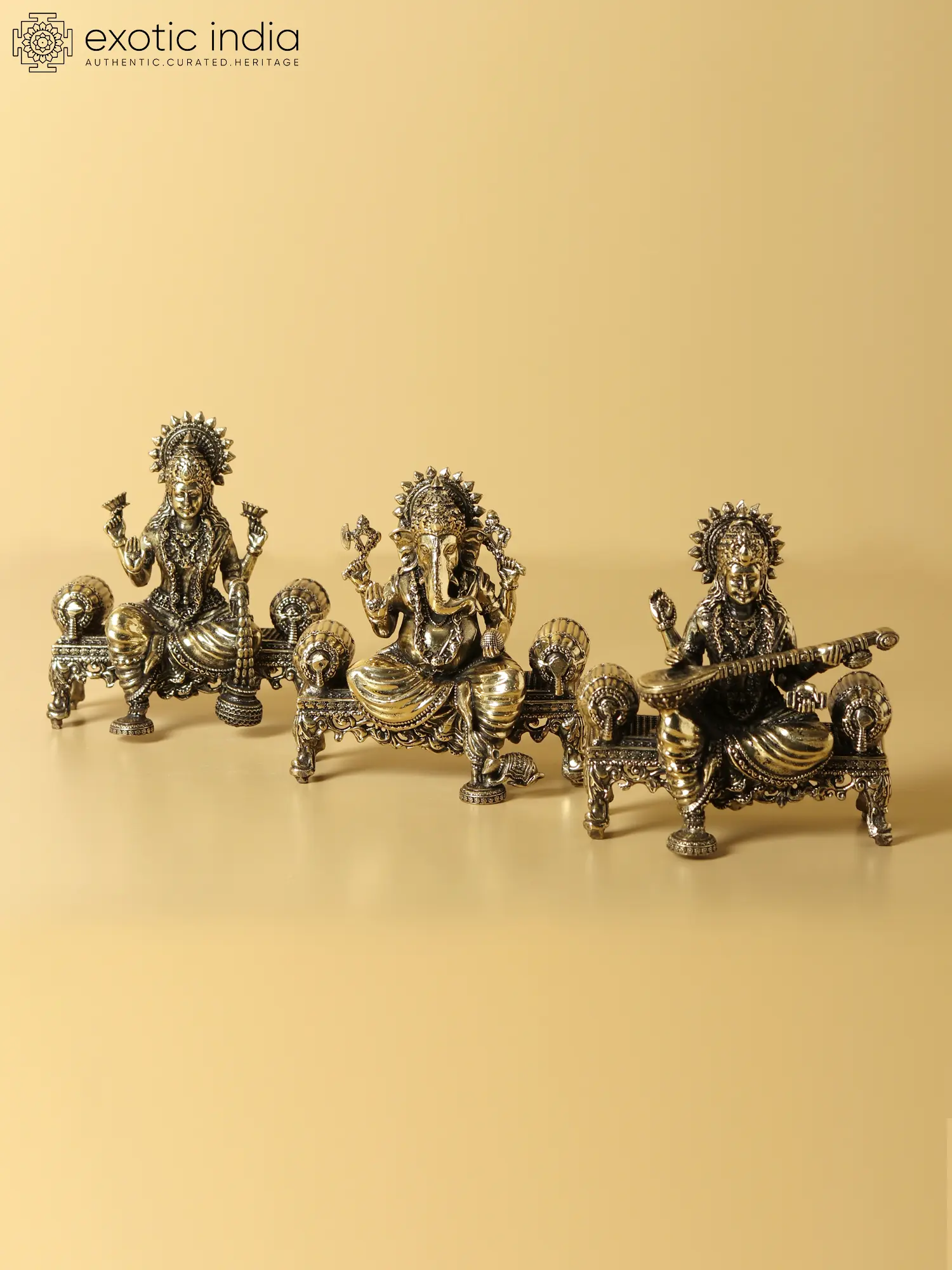 Lakshmi : 4.2" Height x 3.7" Width x 2.5" DepthGanesha : 3.8" Height x 3.7" Width x 2.5" DepthSaraswati : 3.8" Height x 3.7" Width x 2.5" Depth