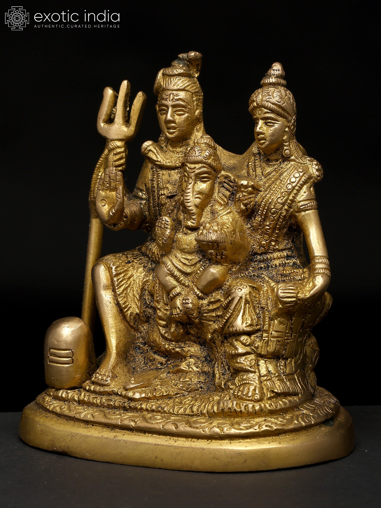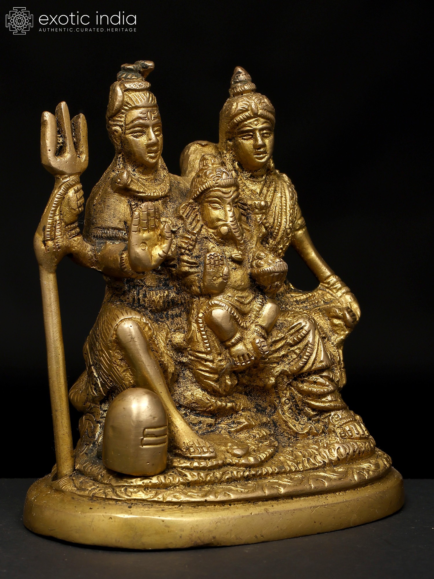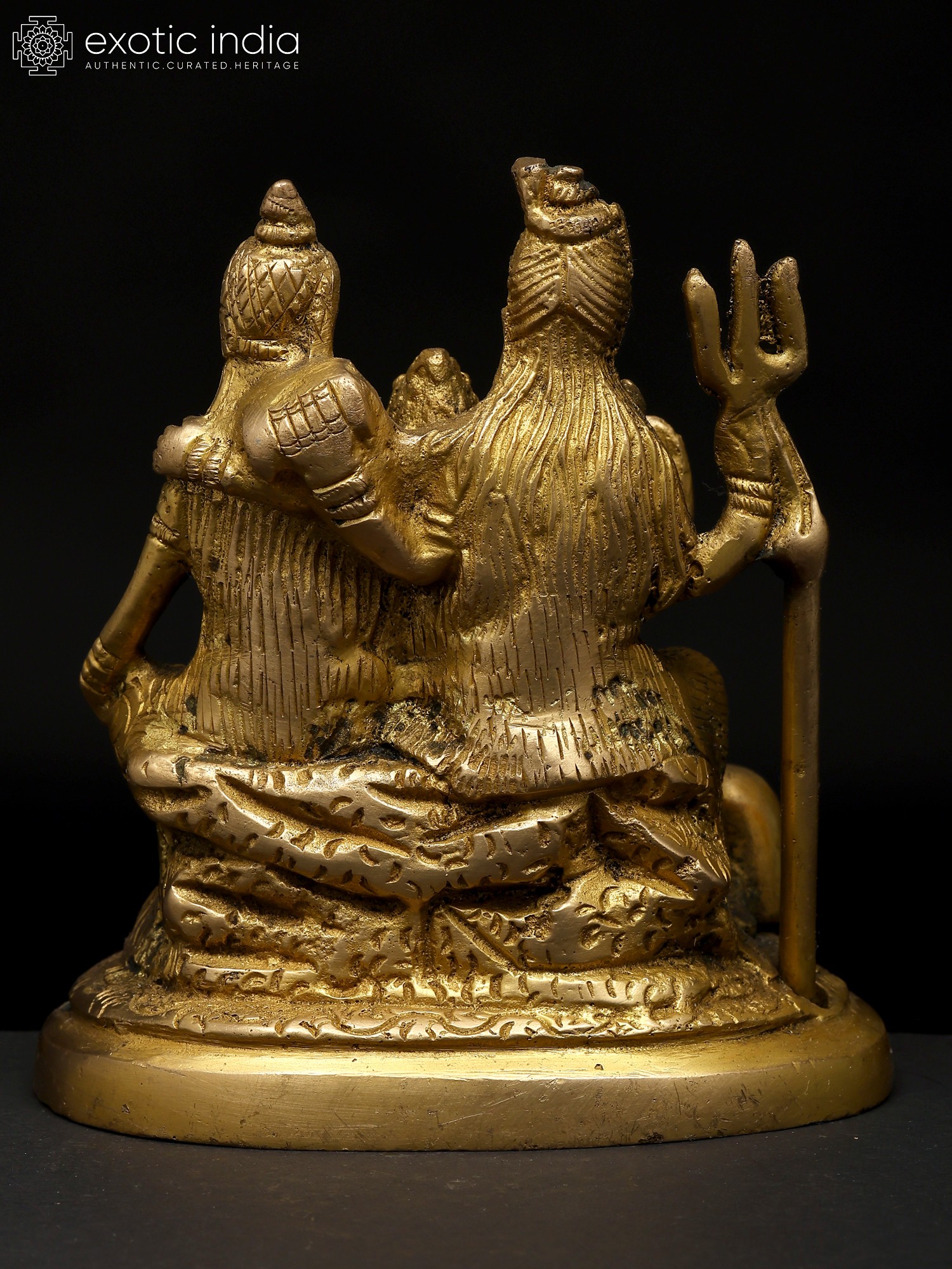 4" Small Shiva Family Brass Statue | Religious Home Figurine