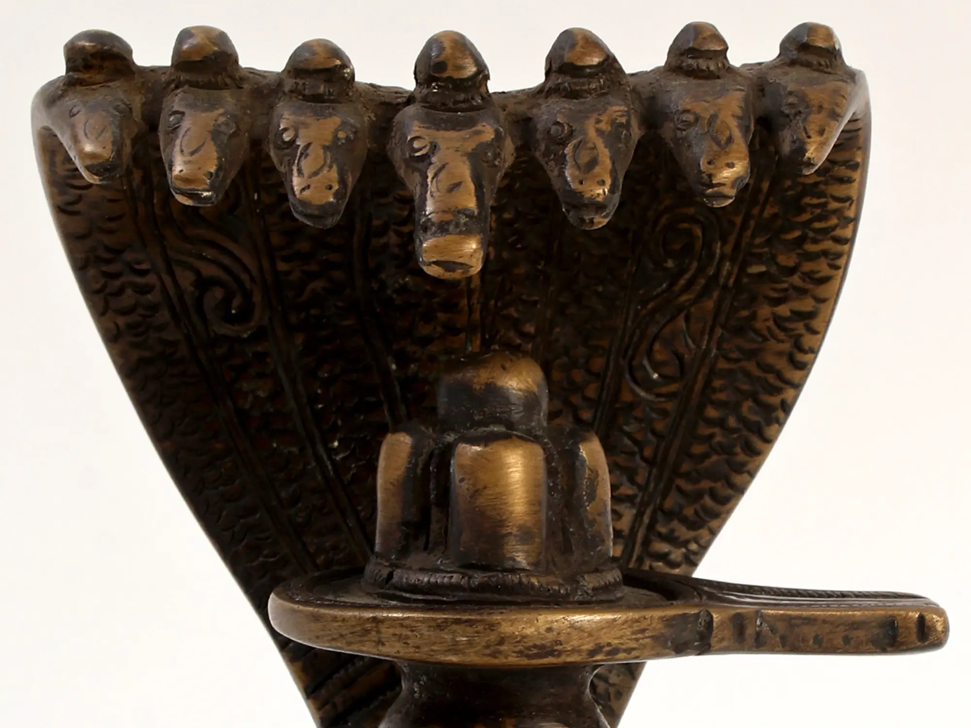 "A stunning and eye-catching shiva linga, ensconced on a turtle pedestal, narrates the tale of patience and stability”. The turtle, an emblem of steady perseverance, carries the weight of divinity. The Shiva linga, with its towering presence, stands as a tribute to Lord Shiva's cosmic dance. It signifies the interconnectedness of the microcosm and the macrocosm. Water poured over it signifies purification, echoing the rejuvenation of the soul. This brass masterpiece, an embodiment of resilience, motivates us to embrace change while rooted in our steadfast essence.