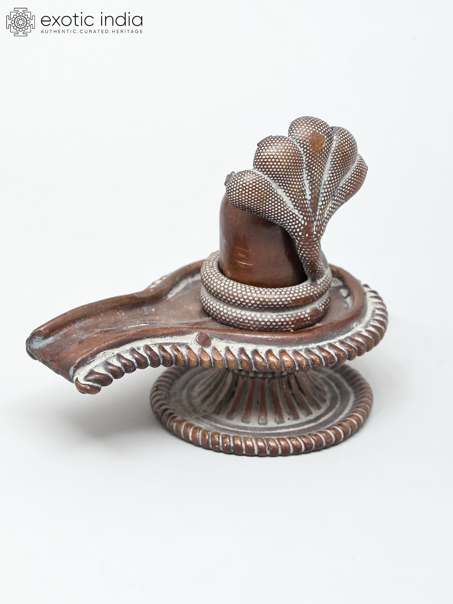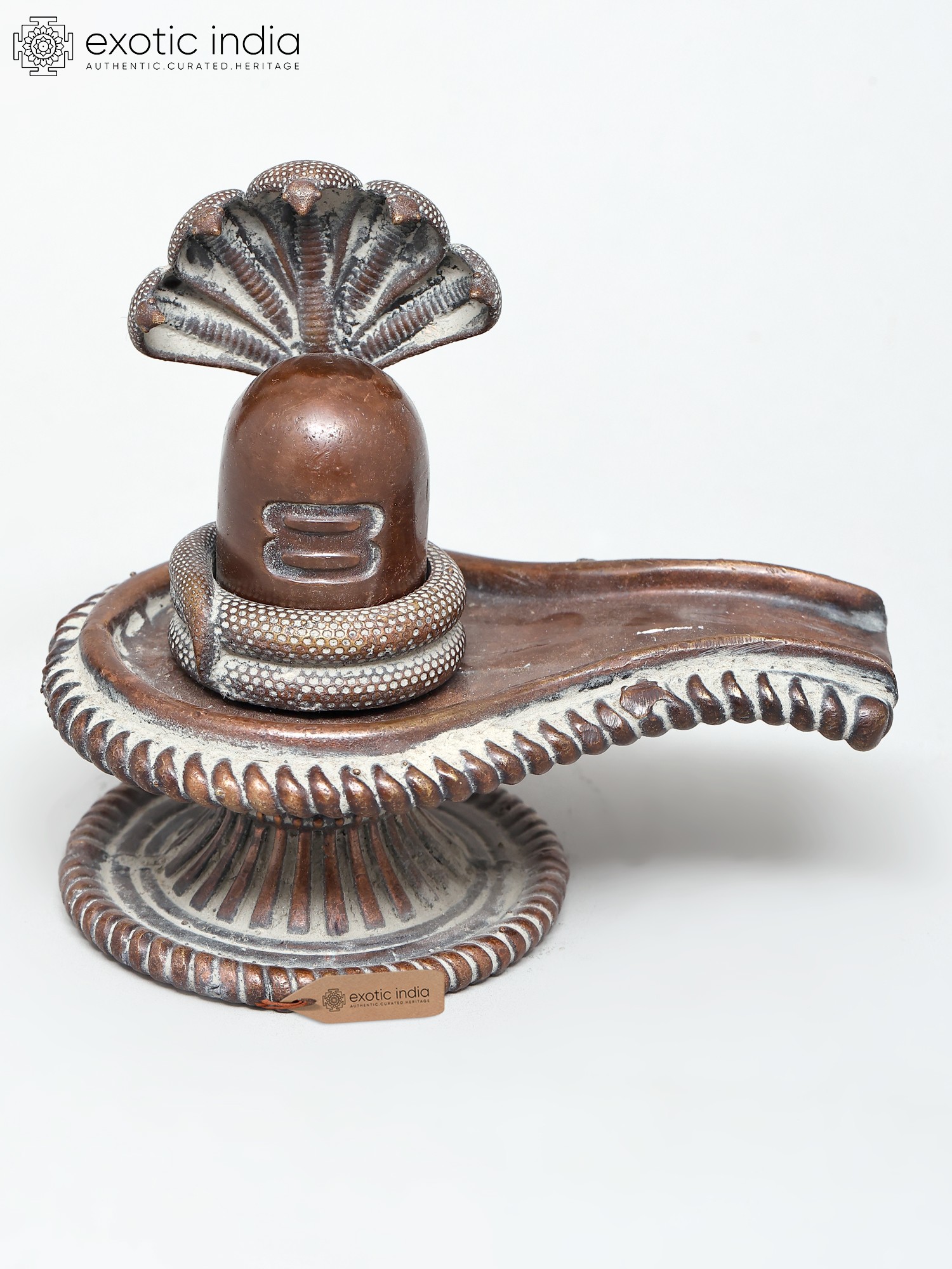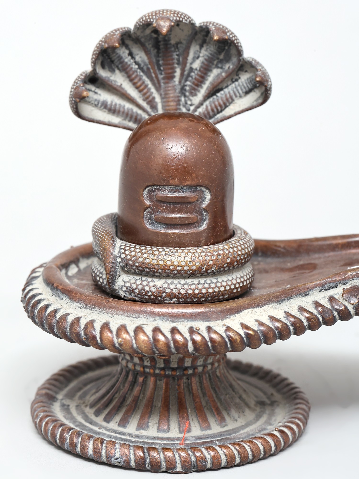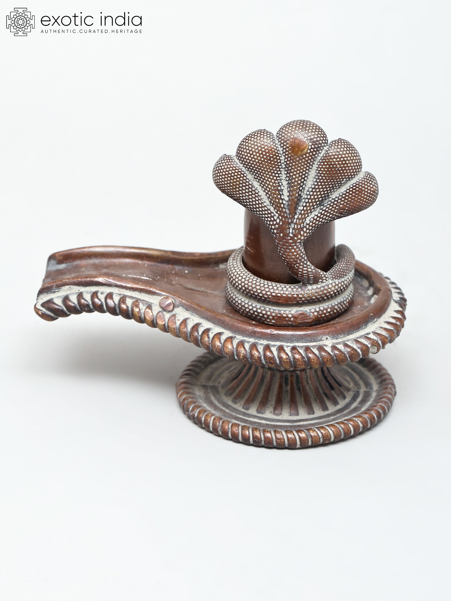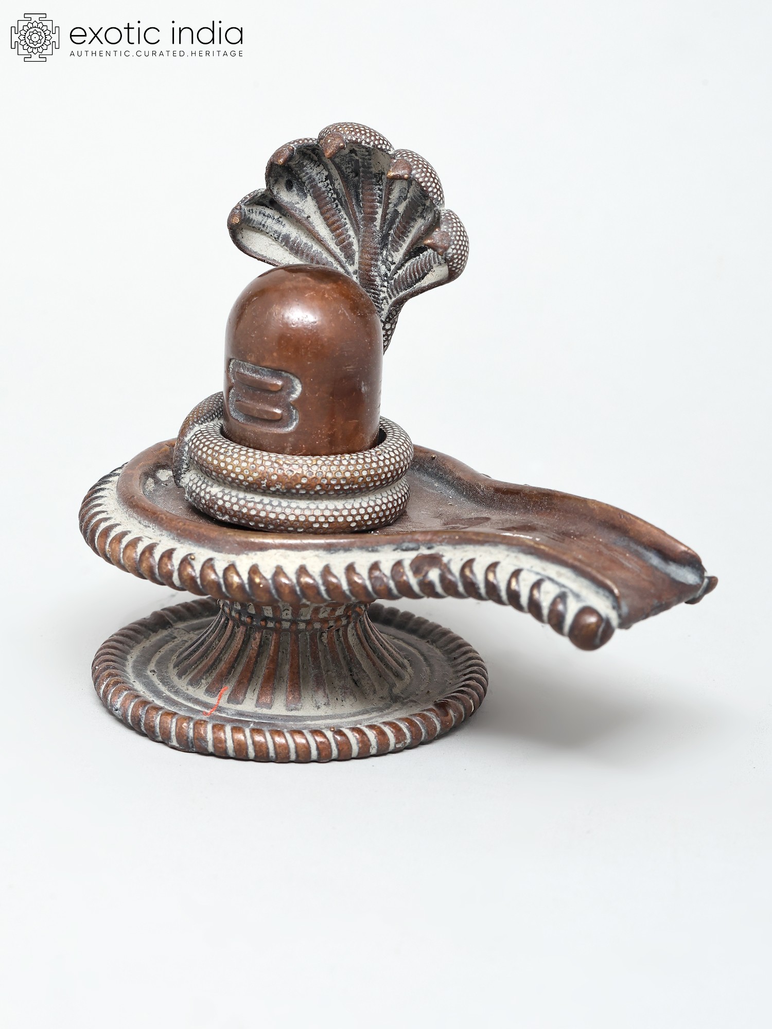 4" Small Copper Shivalinga Protected by Vasuki Nag