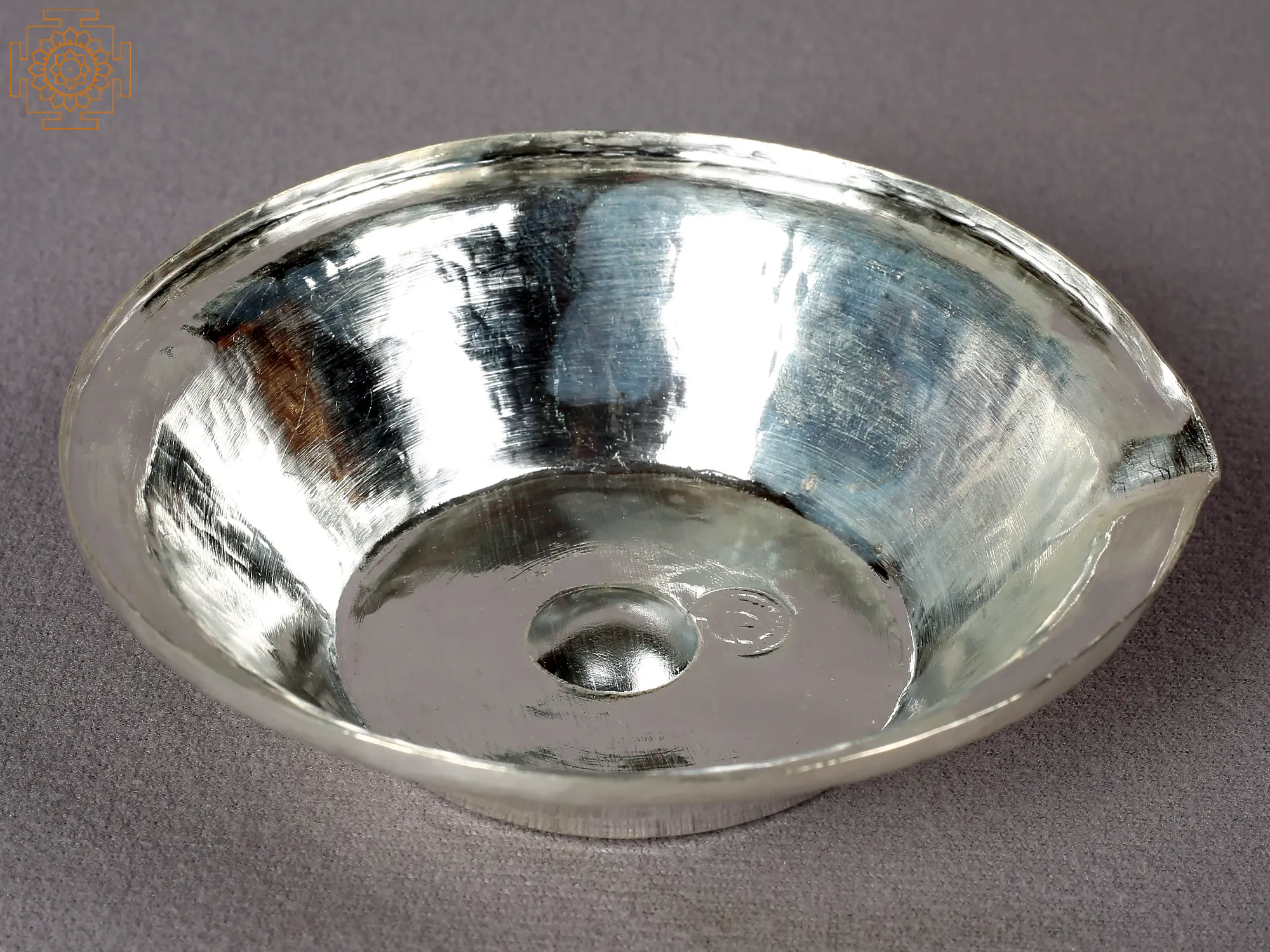 This little silver puja Diya is an appropriate ritual object for personal worship places, combining the ayurvedic benefits of silver metal with the ceremonial importance of lighting lights. The warmth that touches the sacred metal and is distributed in the atmosphere will enrich the ambiance when this lamp is lit.