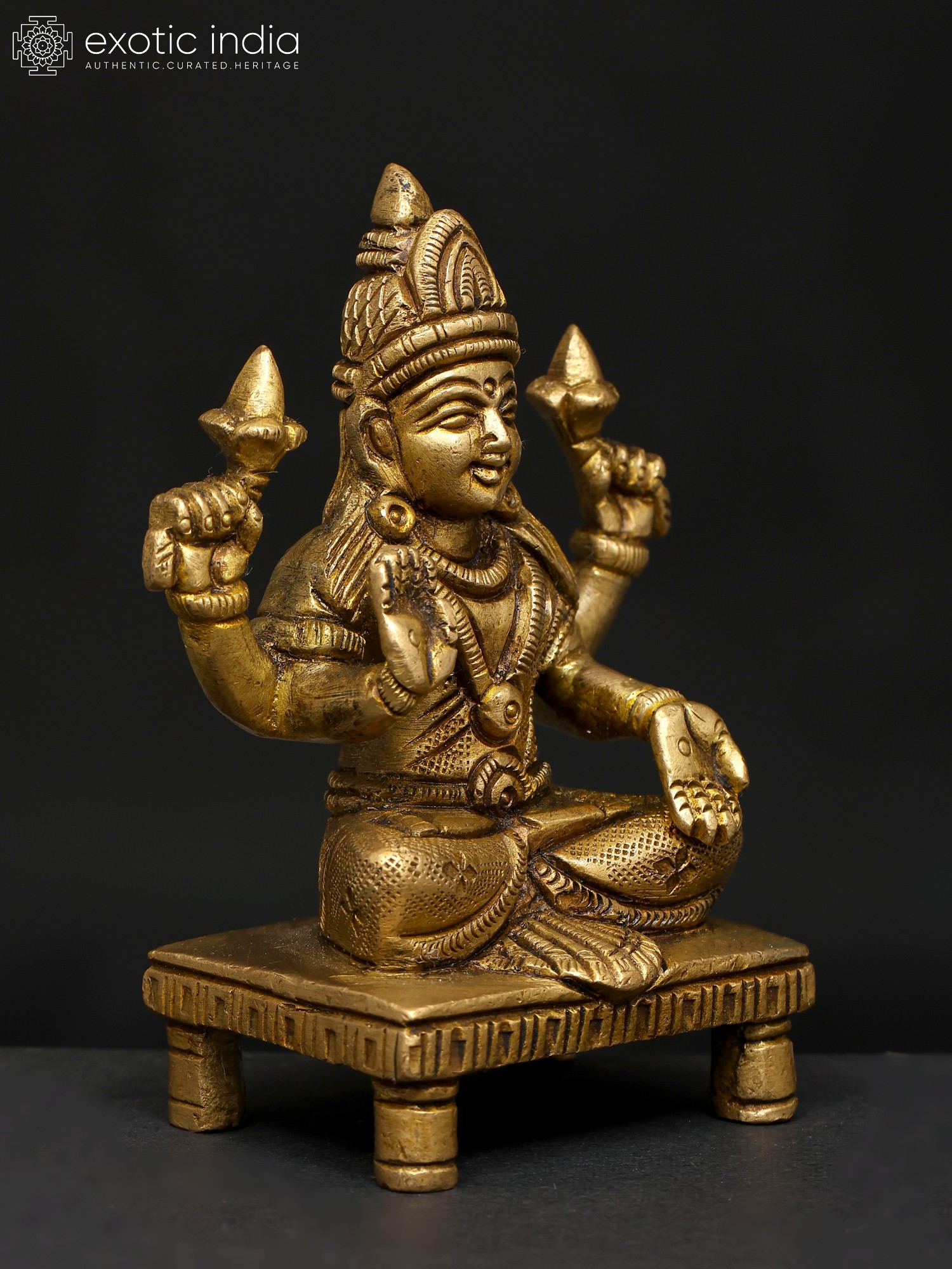 4" Small Superfine Blessing Goddess Lakshmi | Silver Plated Brass Statue