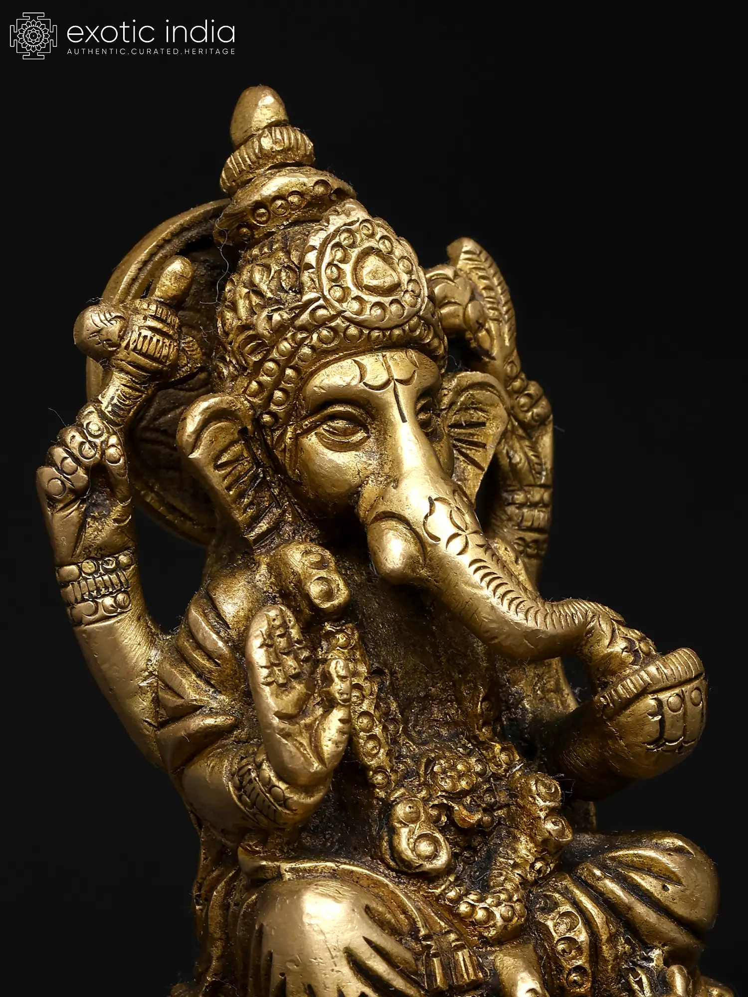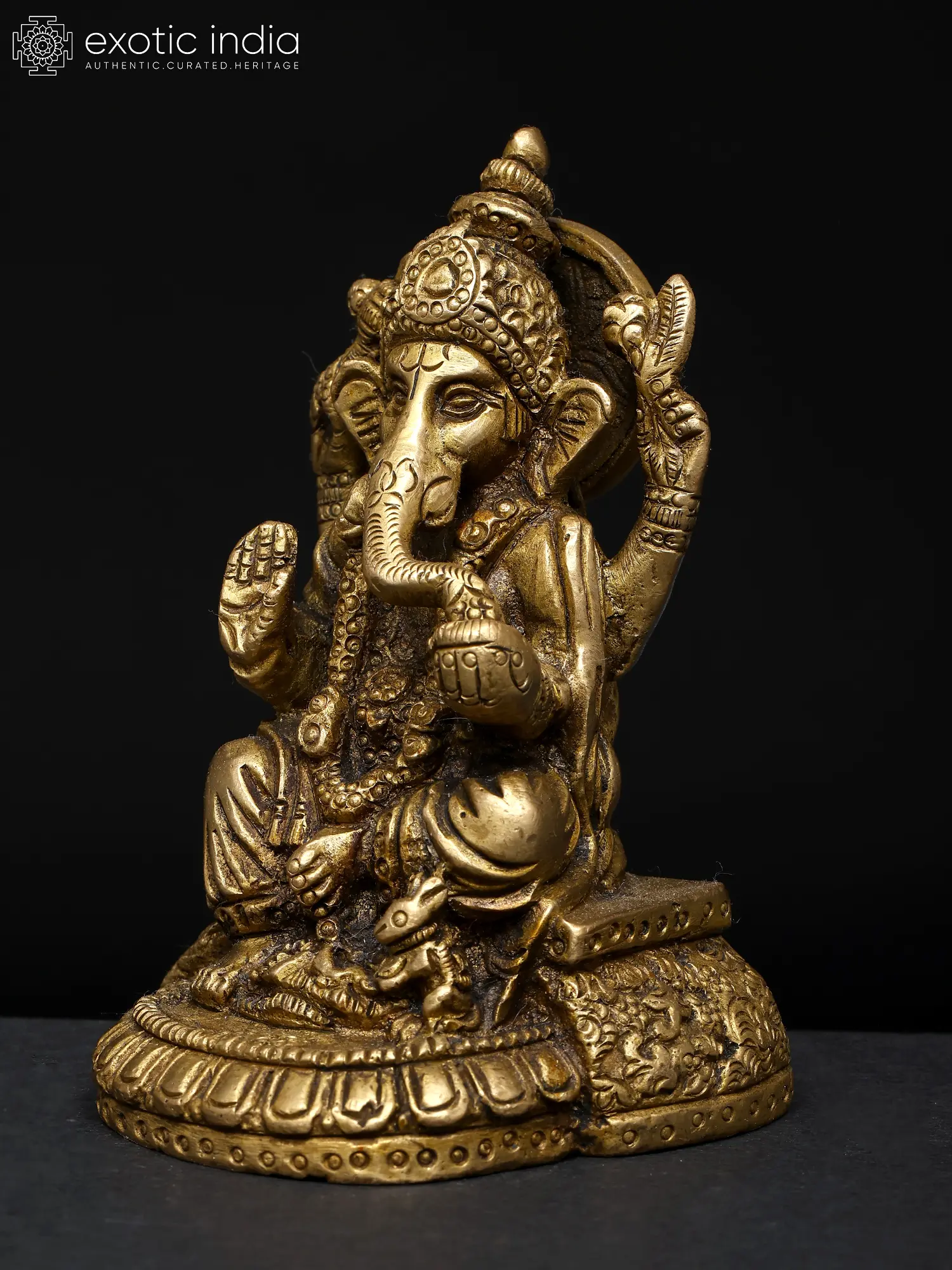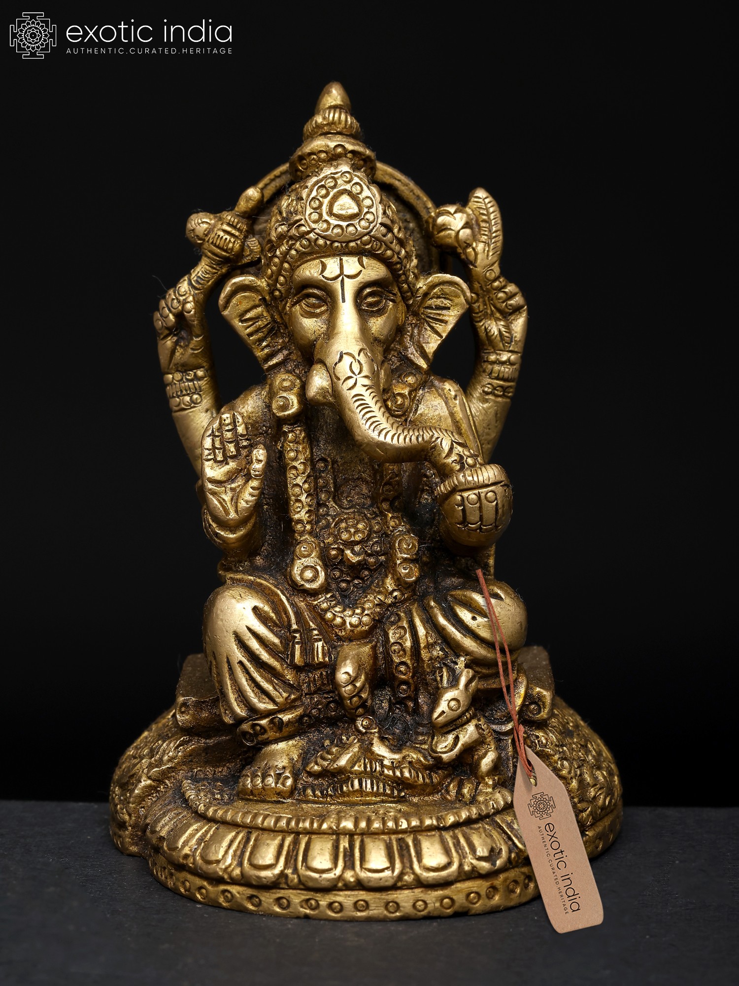 8" Relaxing Ganesha Idol with Cushion | Handmade Brass Statues | Made in India