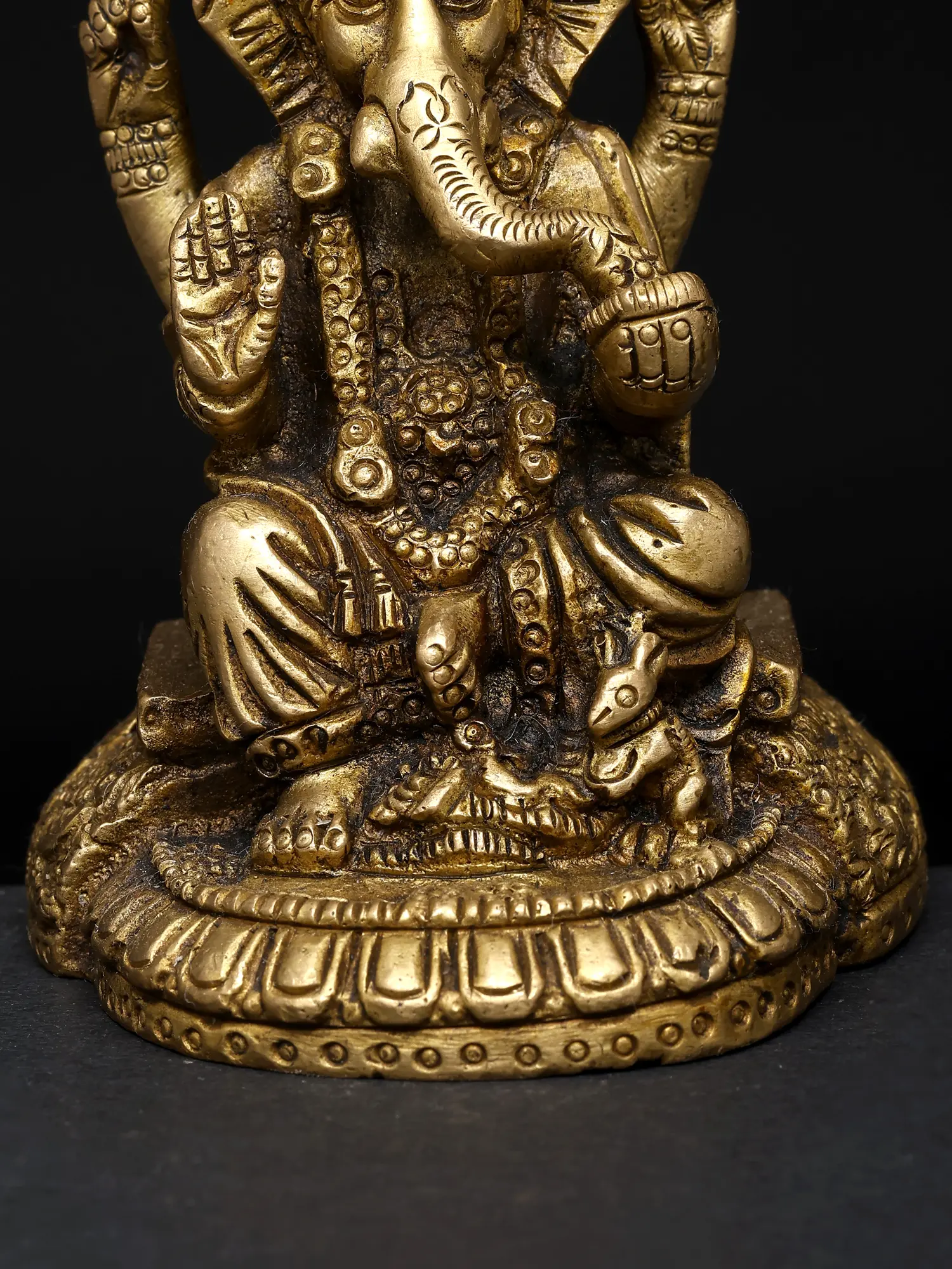 9" Brass Rat with Carving of Ganesha Ji on Back