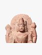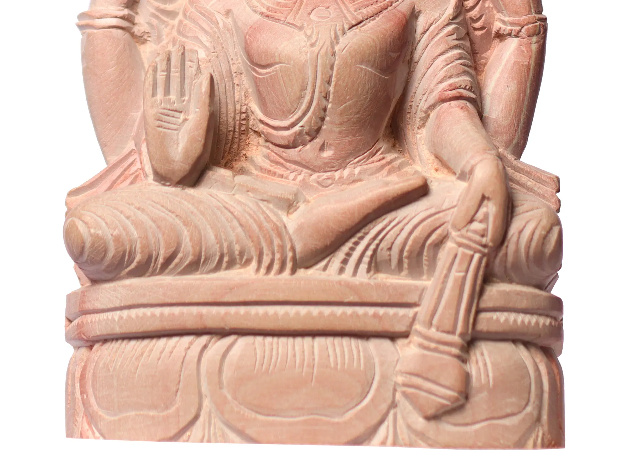 13" Lord Vishnu Seated Under the Hood of Sheshnag with Goddess Lakshmi | Red Stone Statue | Hand Carved