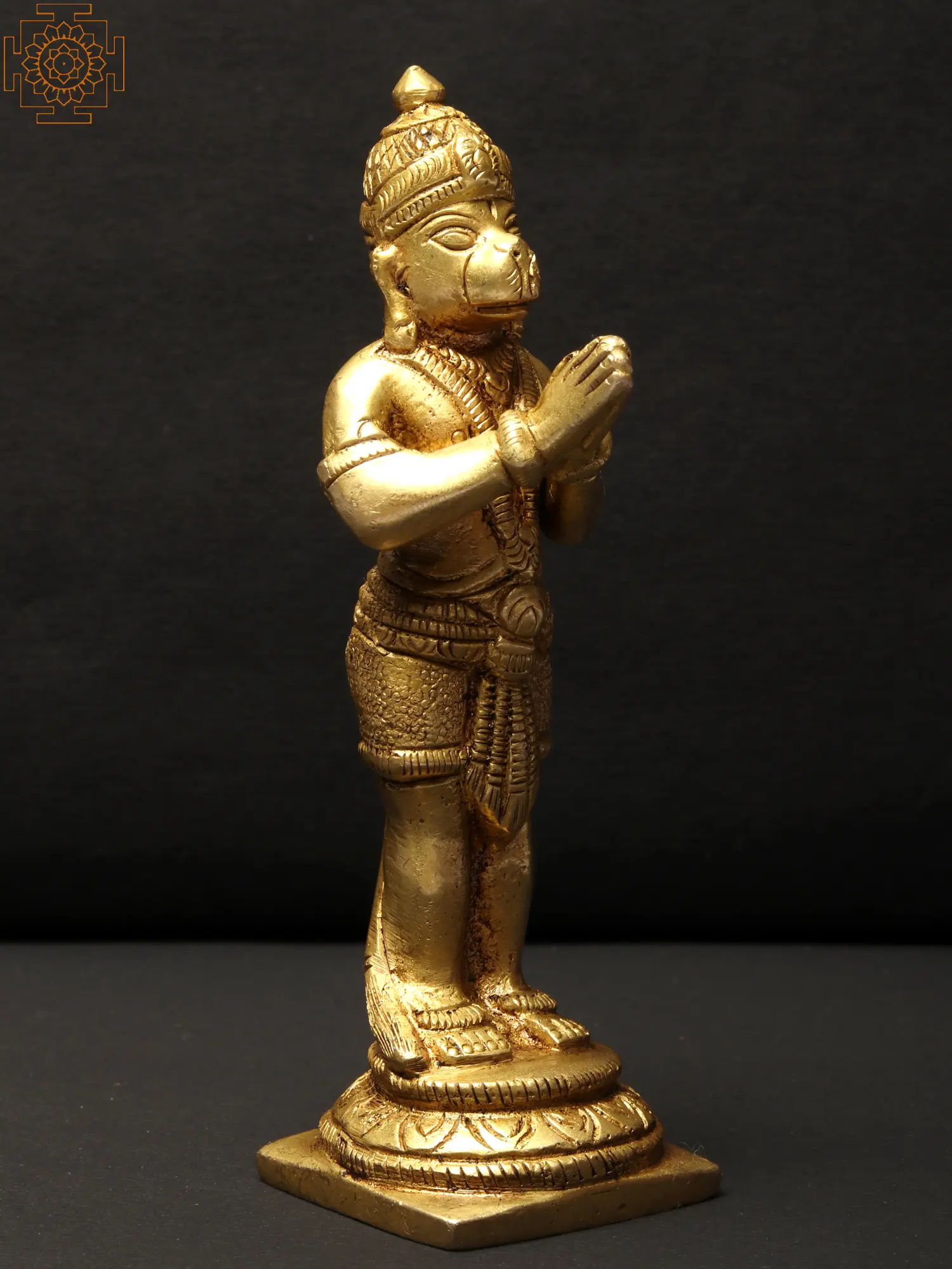 Elevate the energies of your space with the Small Standing Lord Hanuman Brass Statue in Namaskar Mudra, a symbol of profound humility and respect. Lord Hanuman's gesture of namaskar expresses a sense of unity and oneness with all beings. As you see this sculpture, it shall help you learn the power of acknowledging the divinity in others and within yourself. In the spirit of Hanuman's devotion to Lord Rama, embrace humility and open your heart to boundless compassion, for it is in recognizing the divine spark in every soul that we truly find enlightenment.