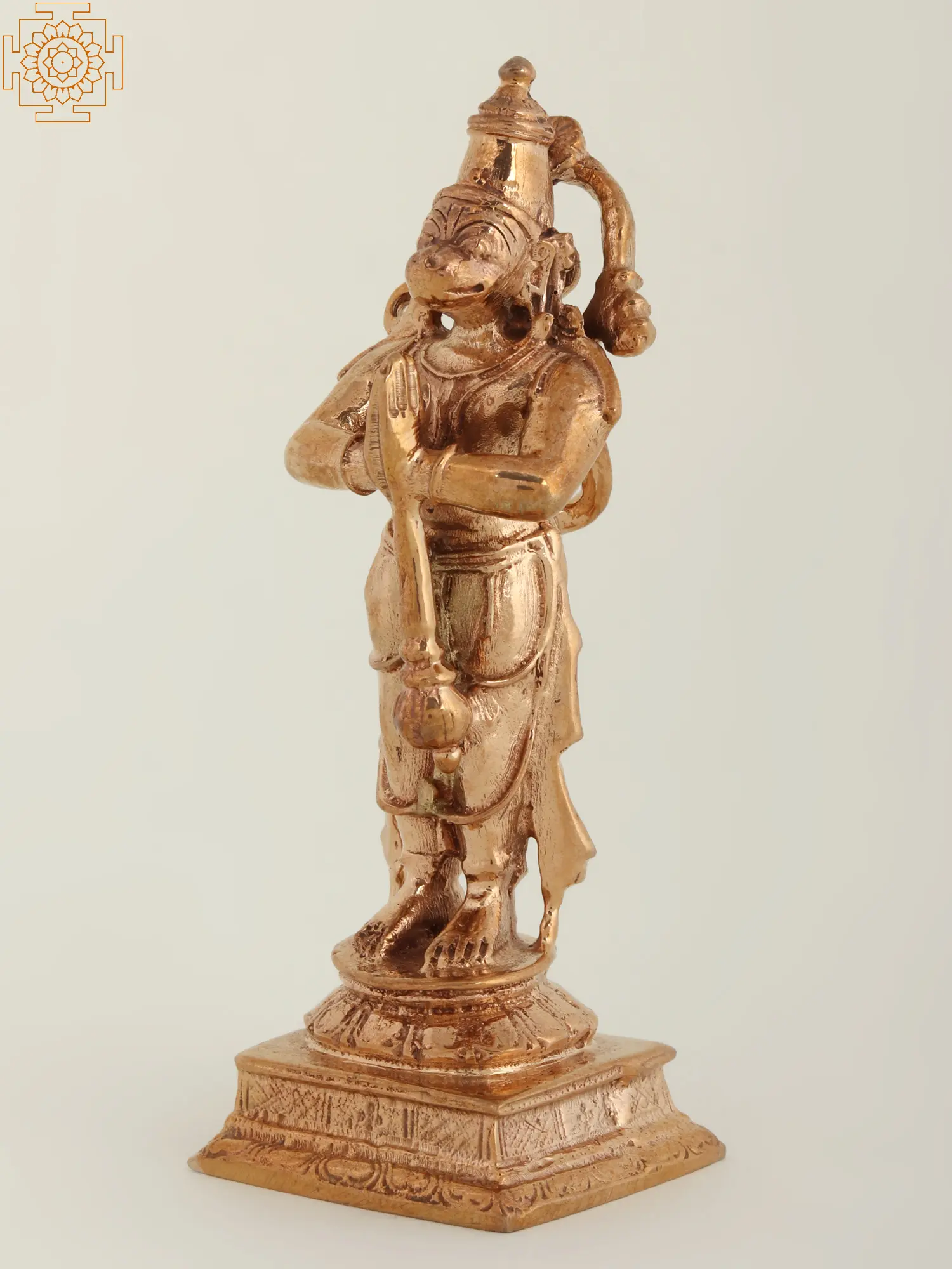 Through this Small Standing Lord Hanuman Bronze Statue in Namaskar Mudra, a divine gesture of reverence and humility graces the heavens. Hanuman, the epitome of devotion and strength, offers his salutations to the universe. As you contemplate this exquisite sculpture, let Hanuman's Namaskar help recognize the power of surrender and gratitude. Lord Hanuman found boundless courage through unwavering devotion and embraces the journey of self-discovery. Through the namaskar mudra, Hanuman's message echoes - that acknowledging the divine within gives us the strength to overcome life's obstacles with grace.