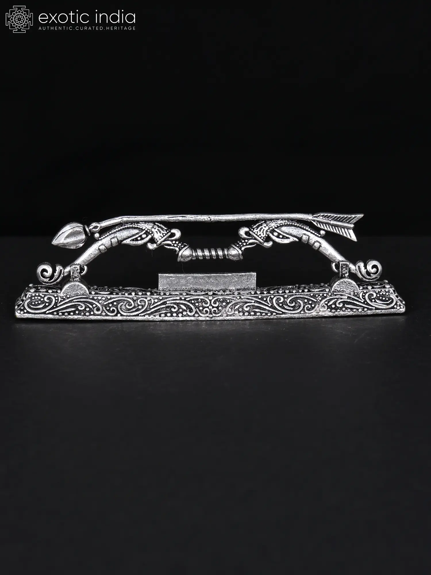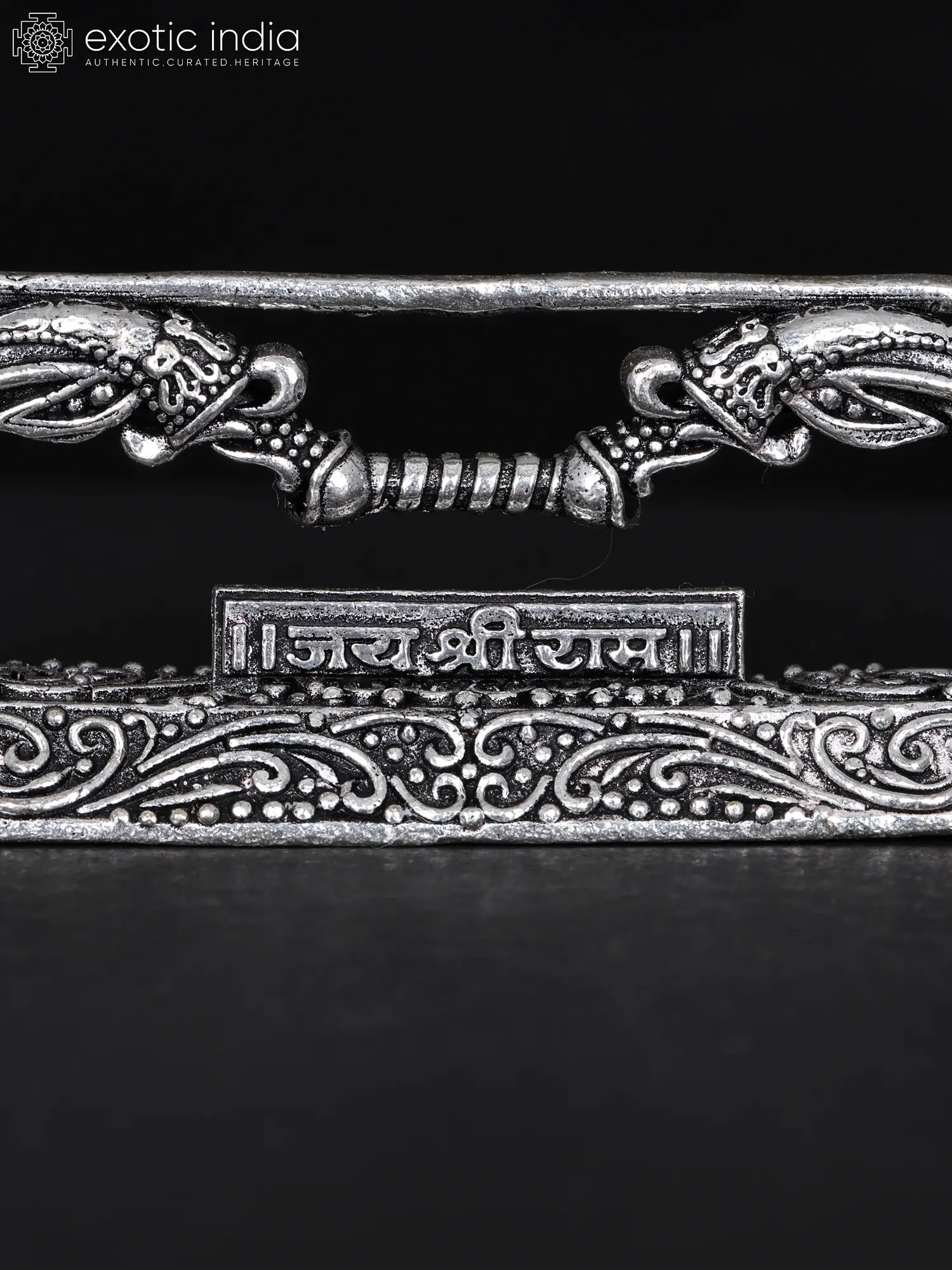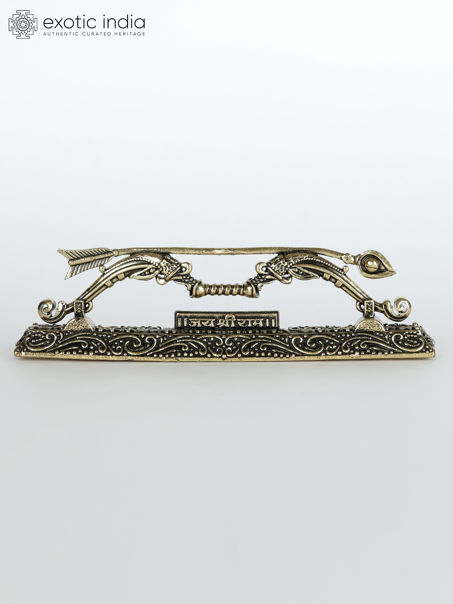 The Dhanush is beautifully balanced on a portable platform, with an arrow and inscription of “Jai Sri Rama”, a sacred addition to your home shrine of Bhagawan Rama.