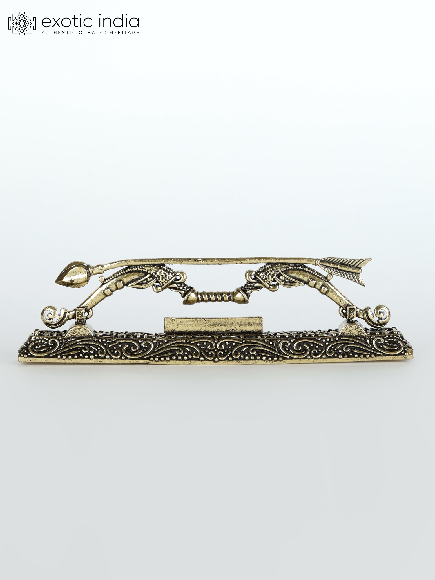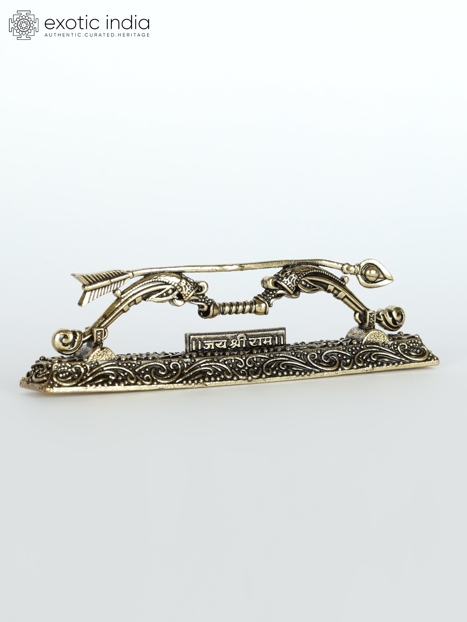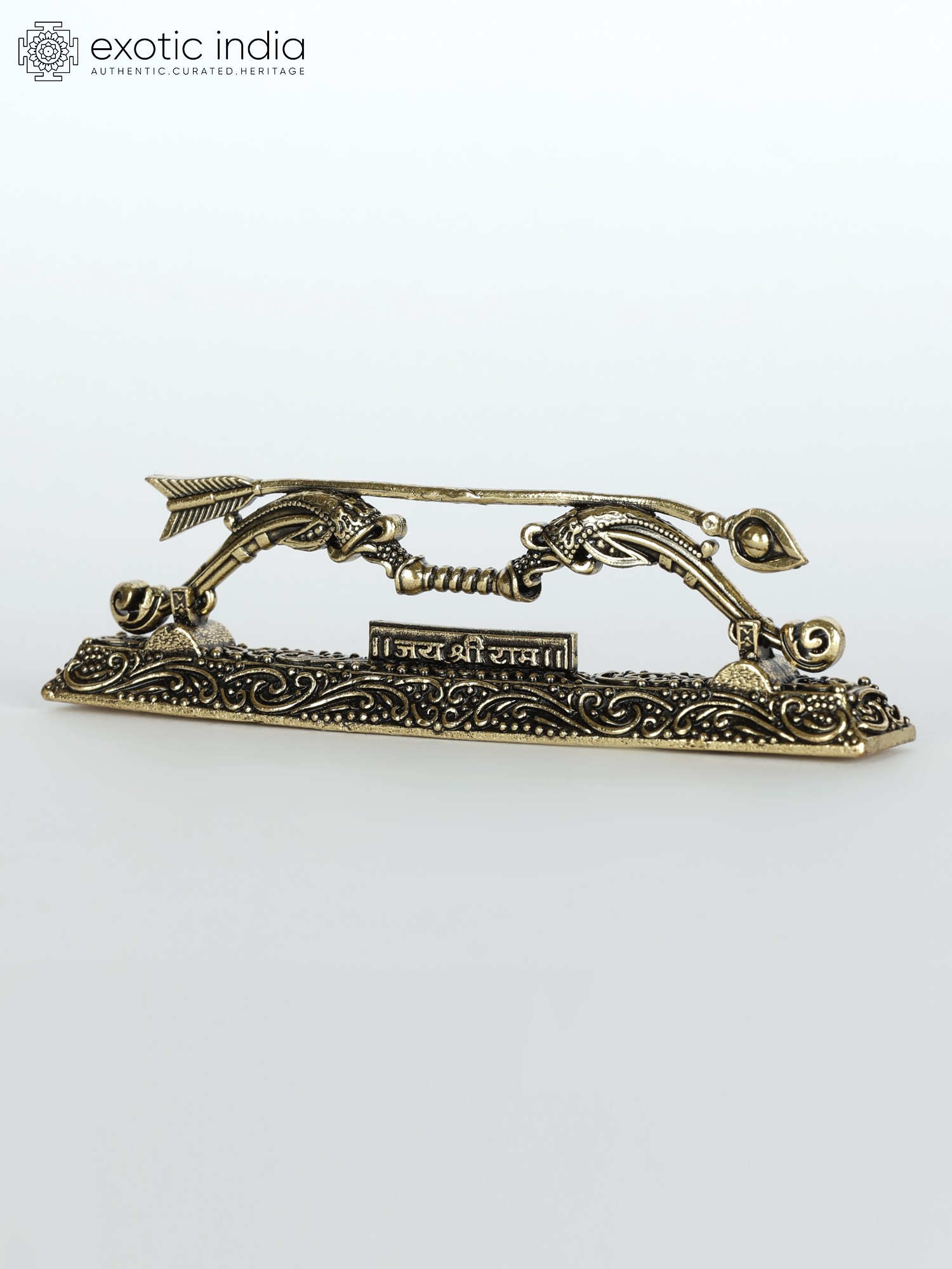 This brass composition presents the legendary Dhanush (bow) of Sri Rama, a symbol of his guarding energies in any space.