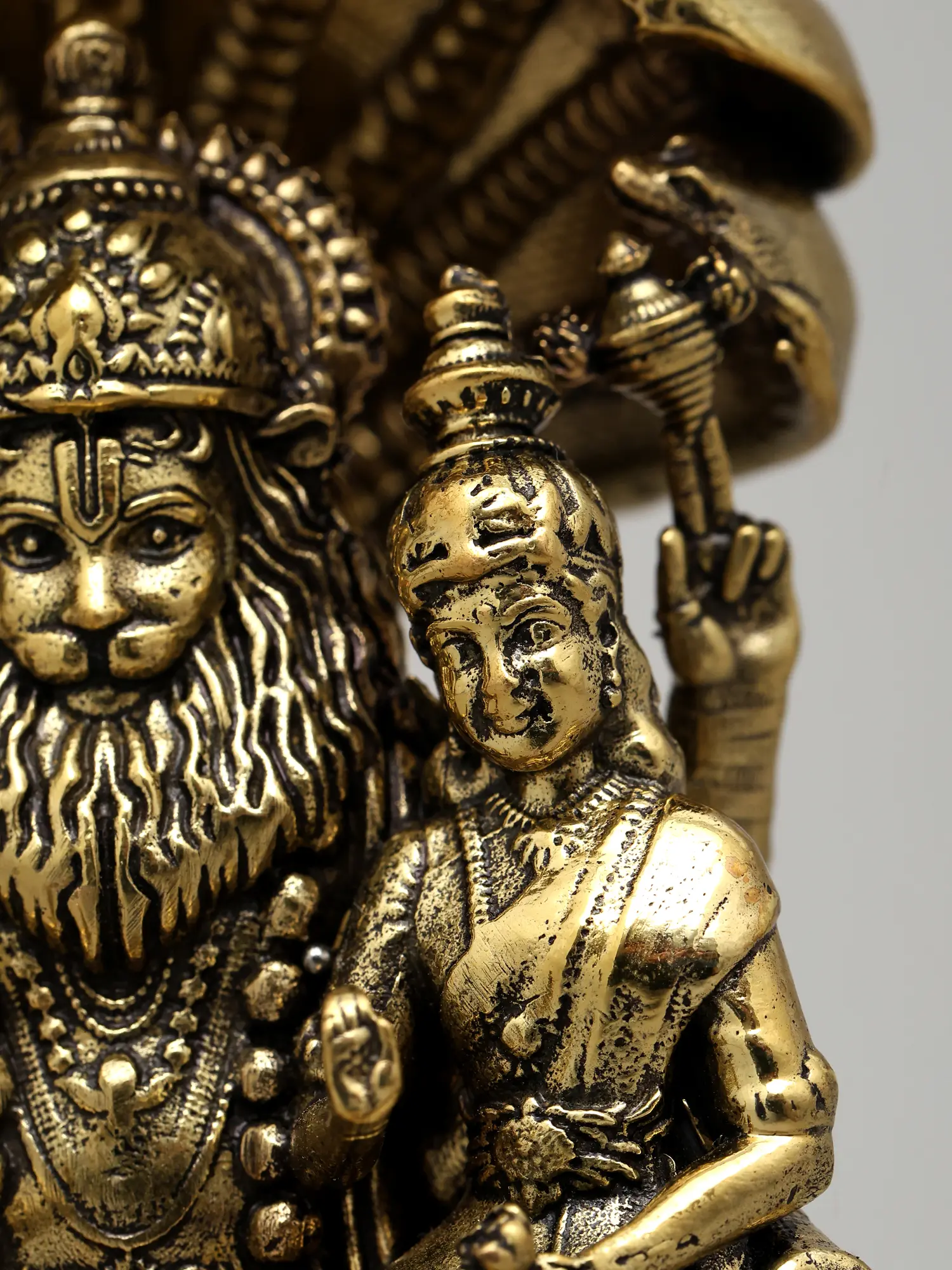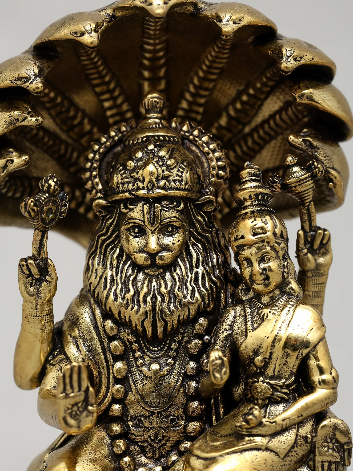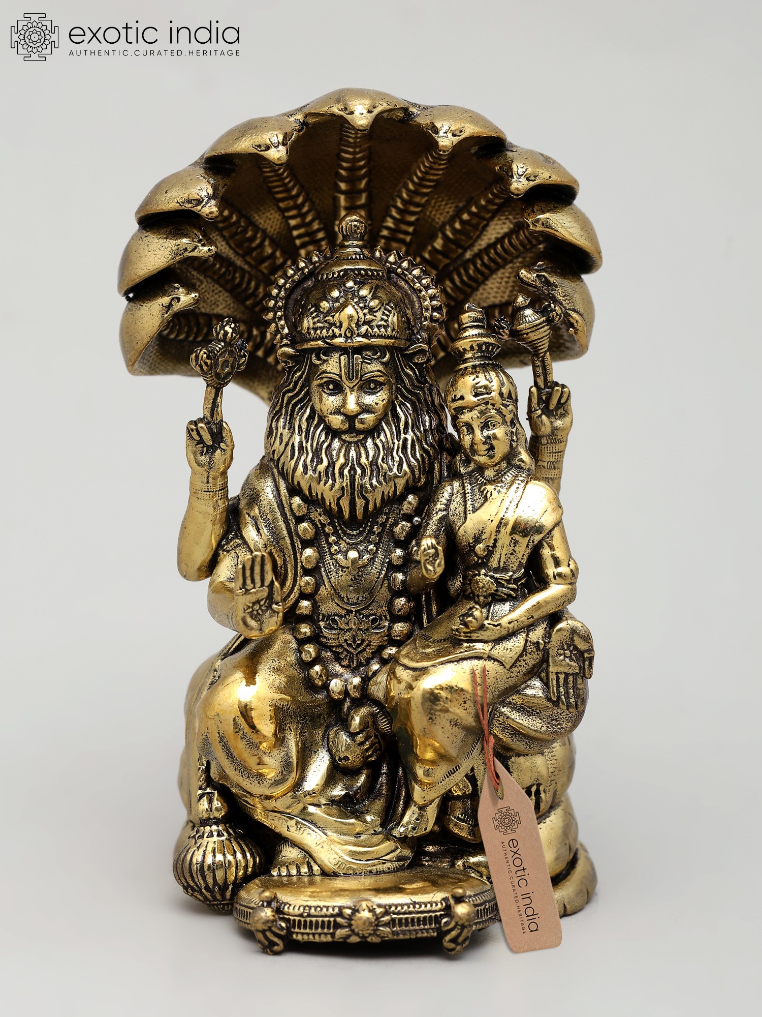 7" Lord Narasimha with Goddess Lakshmi Idol in Brass | Handmade Brass Statue | Made in India