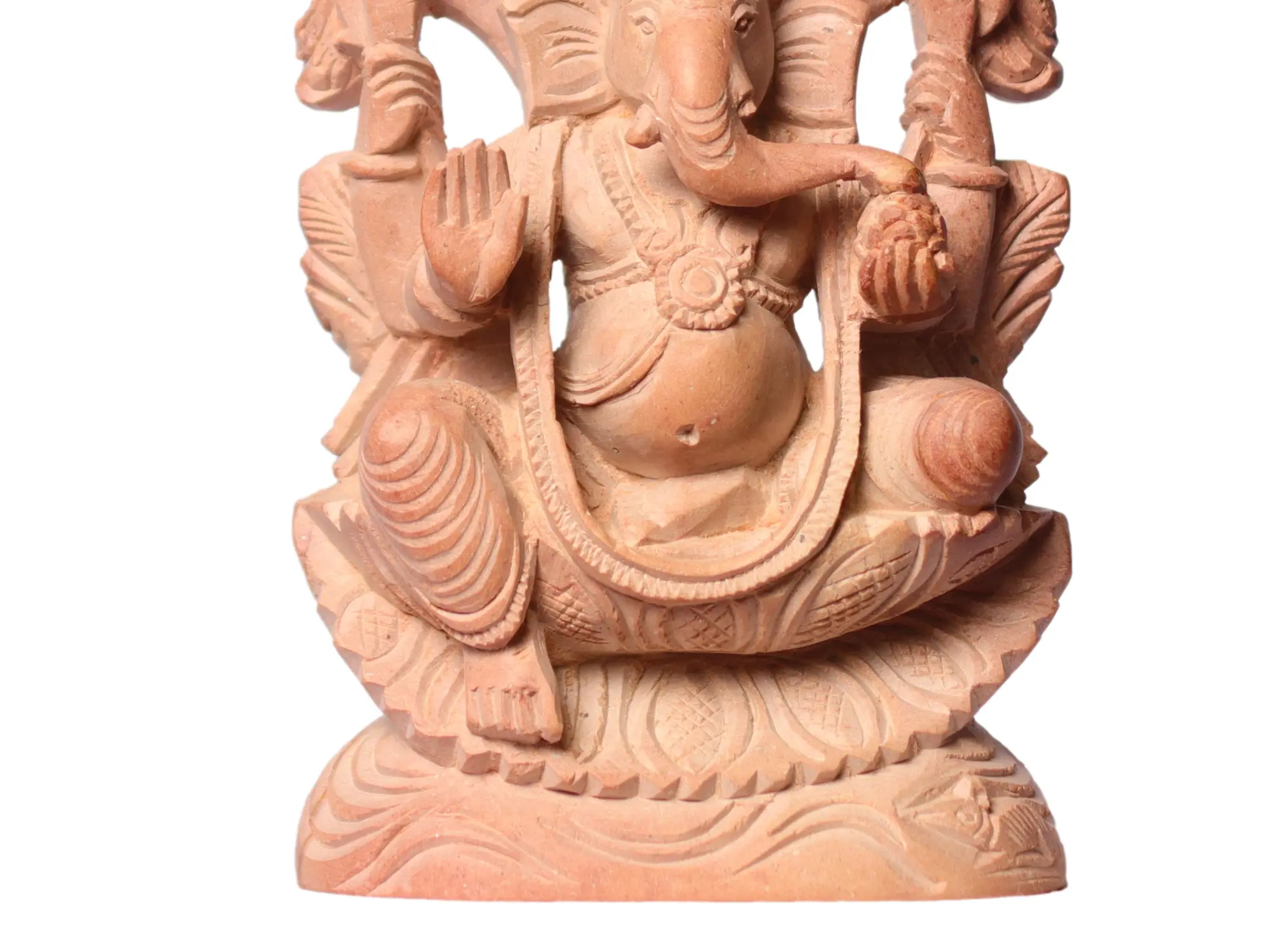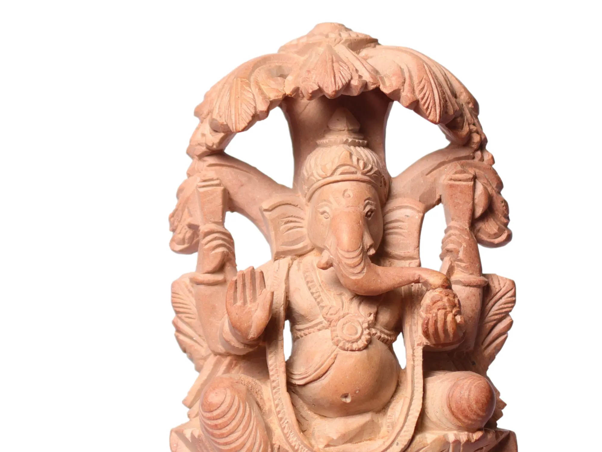 Enter the realm of divine grace with this Pink Stone Ganesha sculpture, a sculpture that embodies the essence of the Remover of Obstacles. In this portrayal, Lord Ganesha sits in assurance, adorned in resplendent pink stone that symbolizes his supreme authority over all impediments and challenges. His majestic form is embellished with intricate details, showcasing the finesse of the artisan's craftsmanship. The divine elephant head of Ganesha signifies unparalleled intellect and wisdom. His compassionate gaze reflects the boundless love and guidance he bestows upon his devotees, inspiring them to overcome obstacles with courage and perseverance.