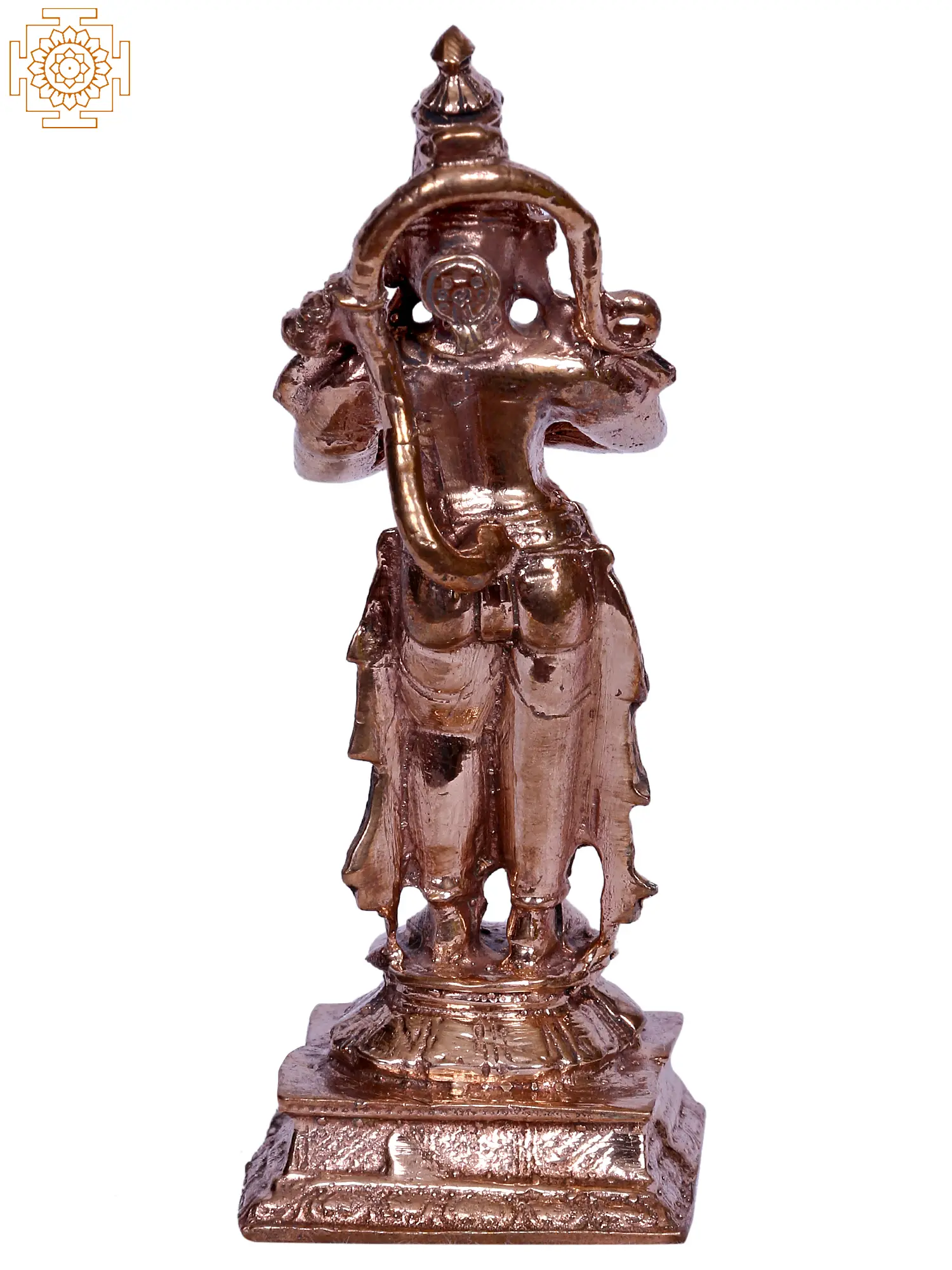 Hanuman’s standing posture reflects readiness to serve, embodying the virtues of devotion, loyalty, and courage.