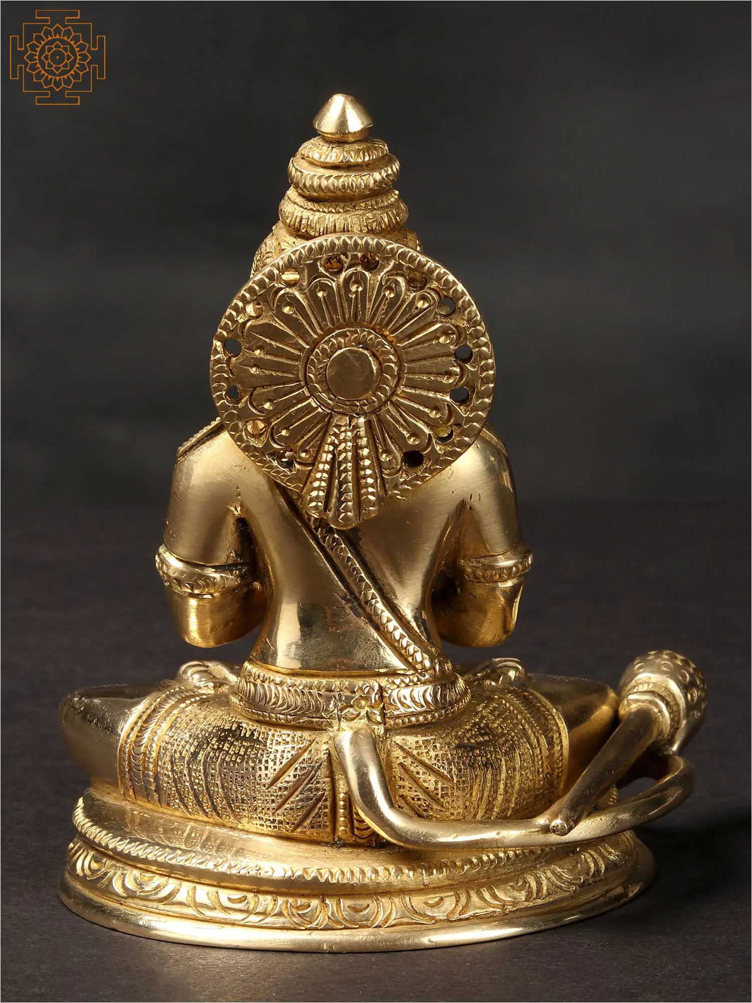 In this brass rendition, “Lord Hanuman”, in his divine grace, sits in the “Anjali Mudra” (Gesture of Greeting), symbolizing reverence and devotion. With folded hands, Hanuman embodies unwavering loyalty and humility. His steadfast devotion to Lord Rama is evident in the power and compassion that emanate from his eyes. This iconic pose represents the essence of bhakti, and selfless service, as Hanuman’s heart overflows with love for his beloved lord (Bhagwan Ram). An embodiment of devotion and strength, Hanuman in Anjali Mudra inspires devotees to seek solace in faith and surrender, reminding them that true power lies in unwavering loyalty to the Almighty.