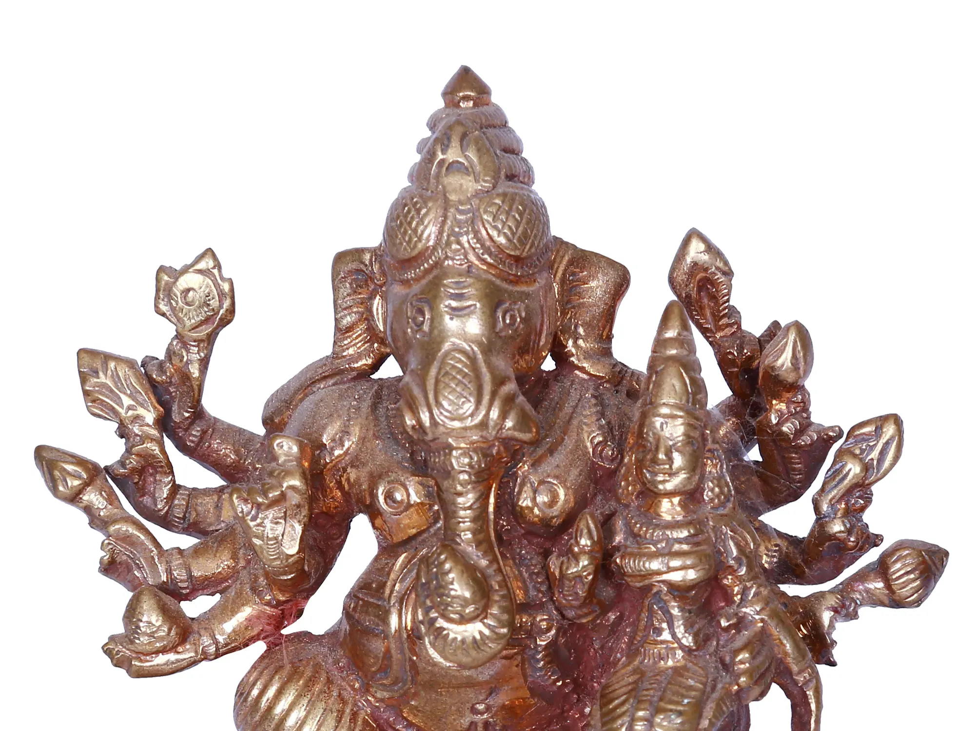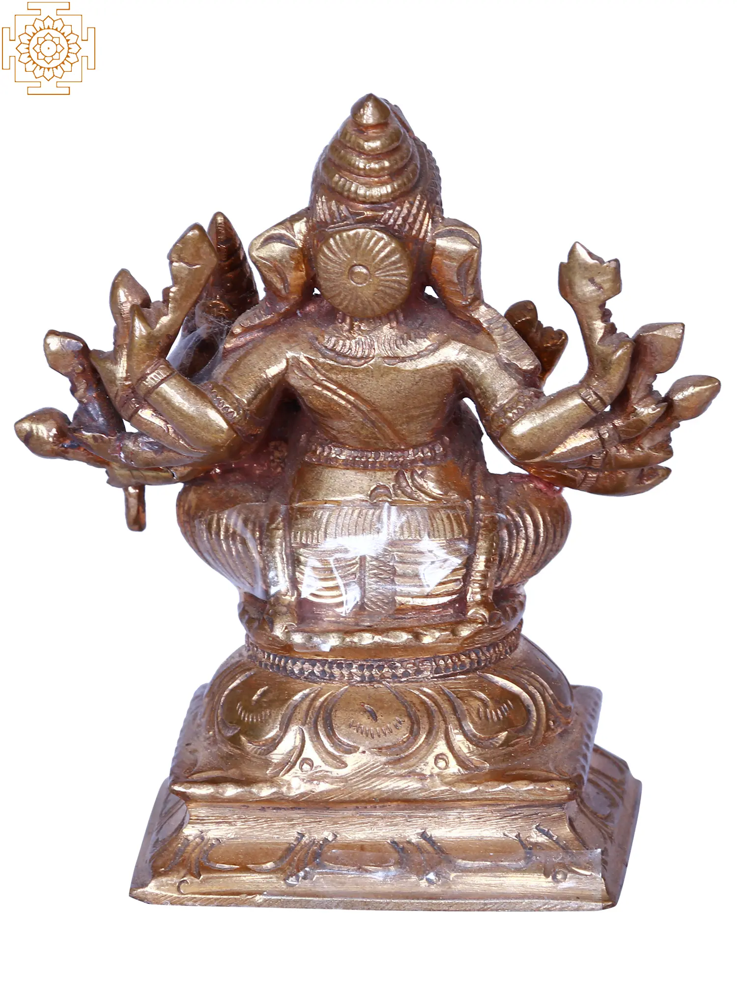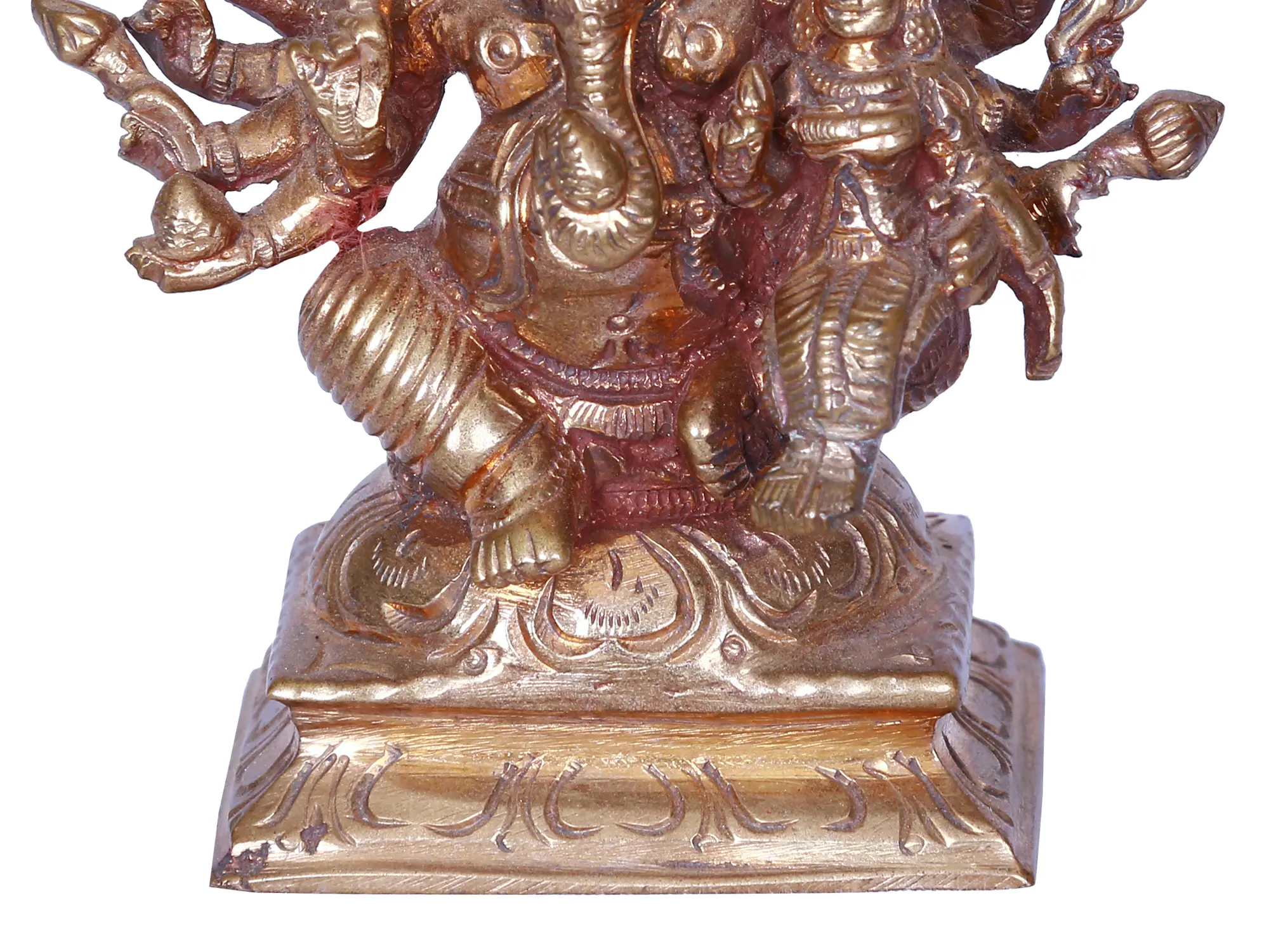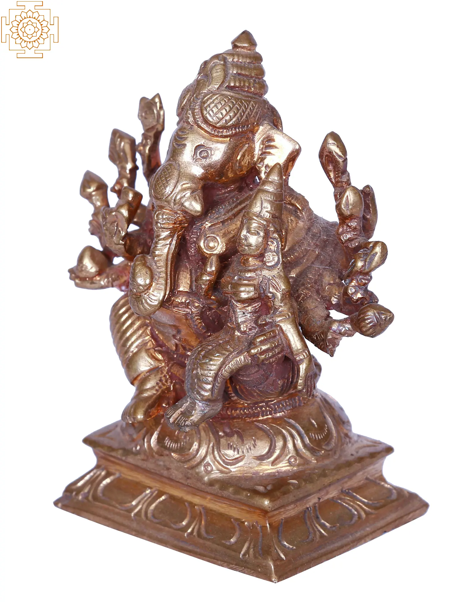 3" Small Chaturbhuja Lord Ganesha Seated on Kirtimukha Throne | Bronze Statue