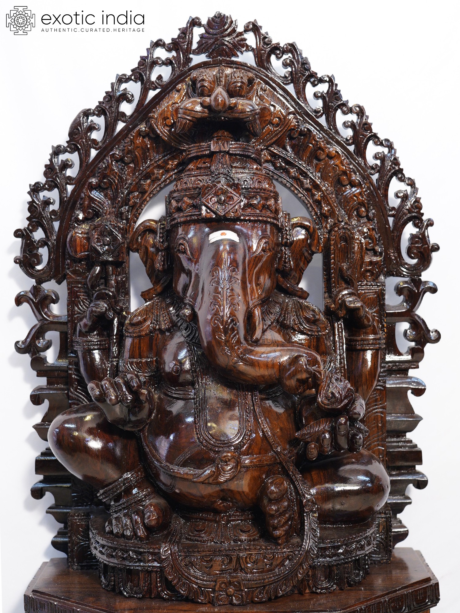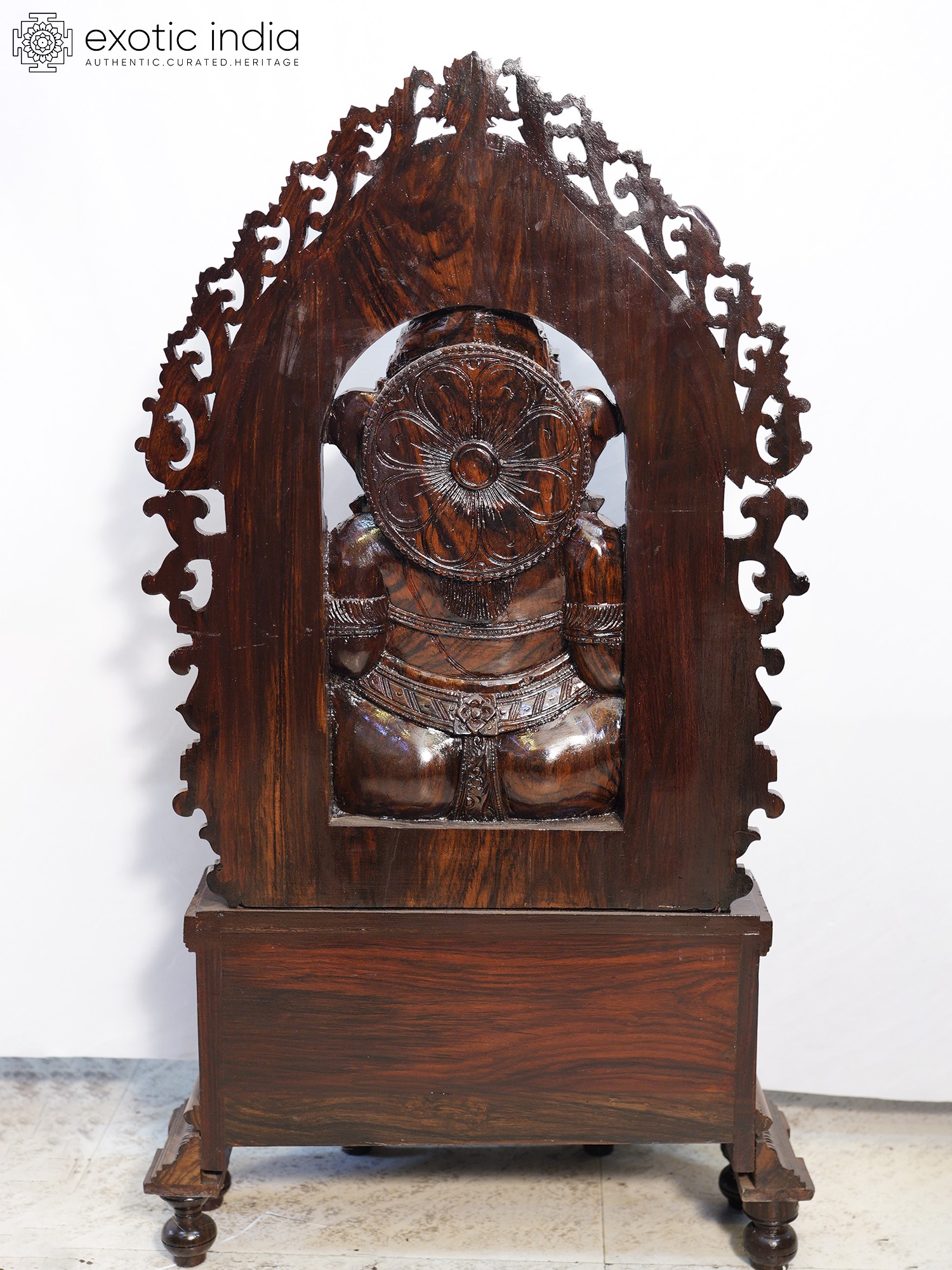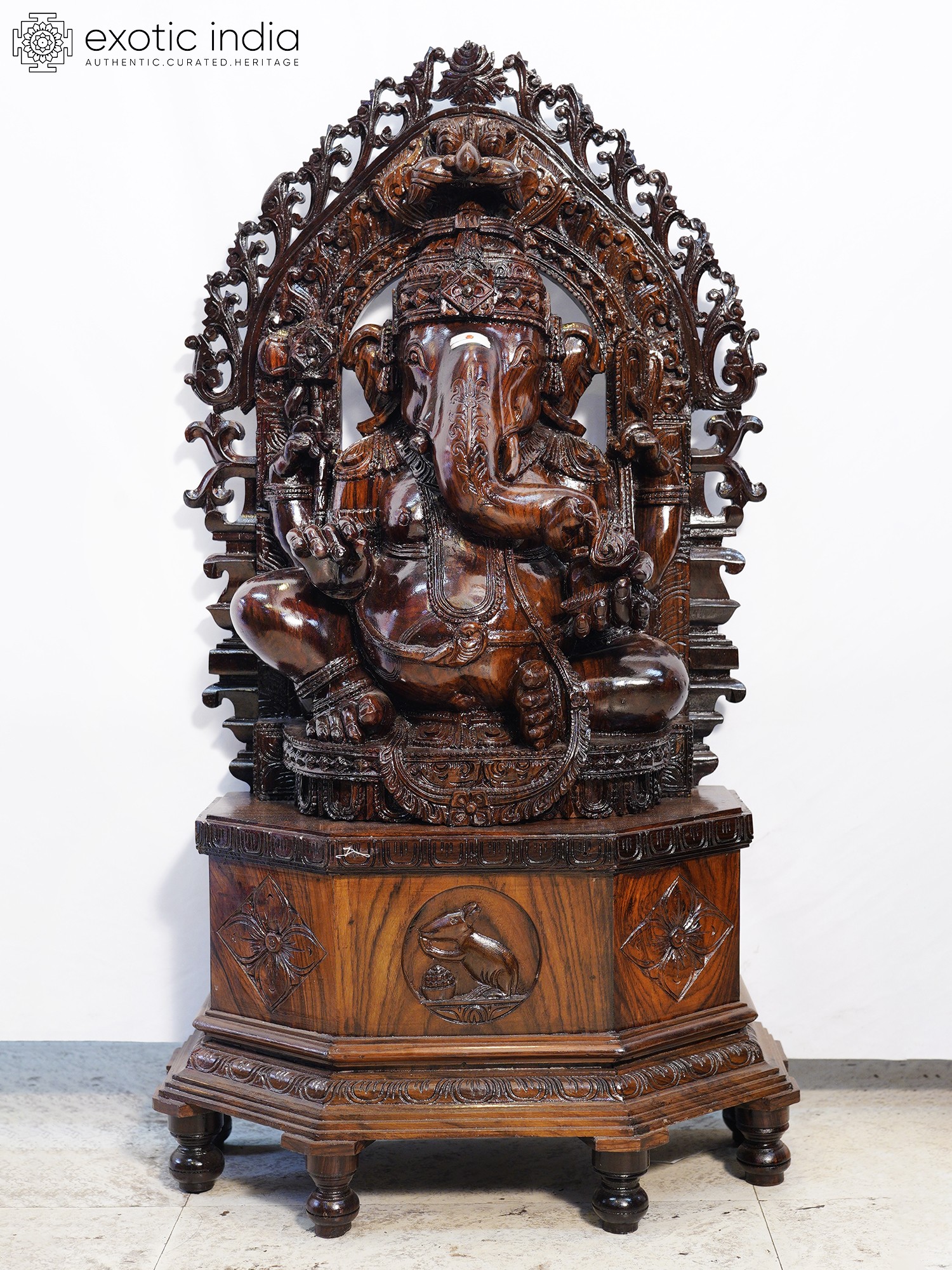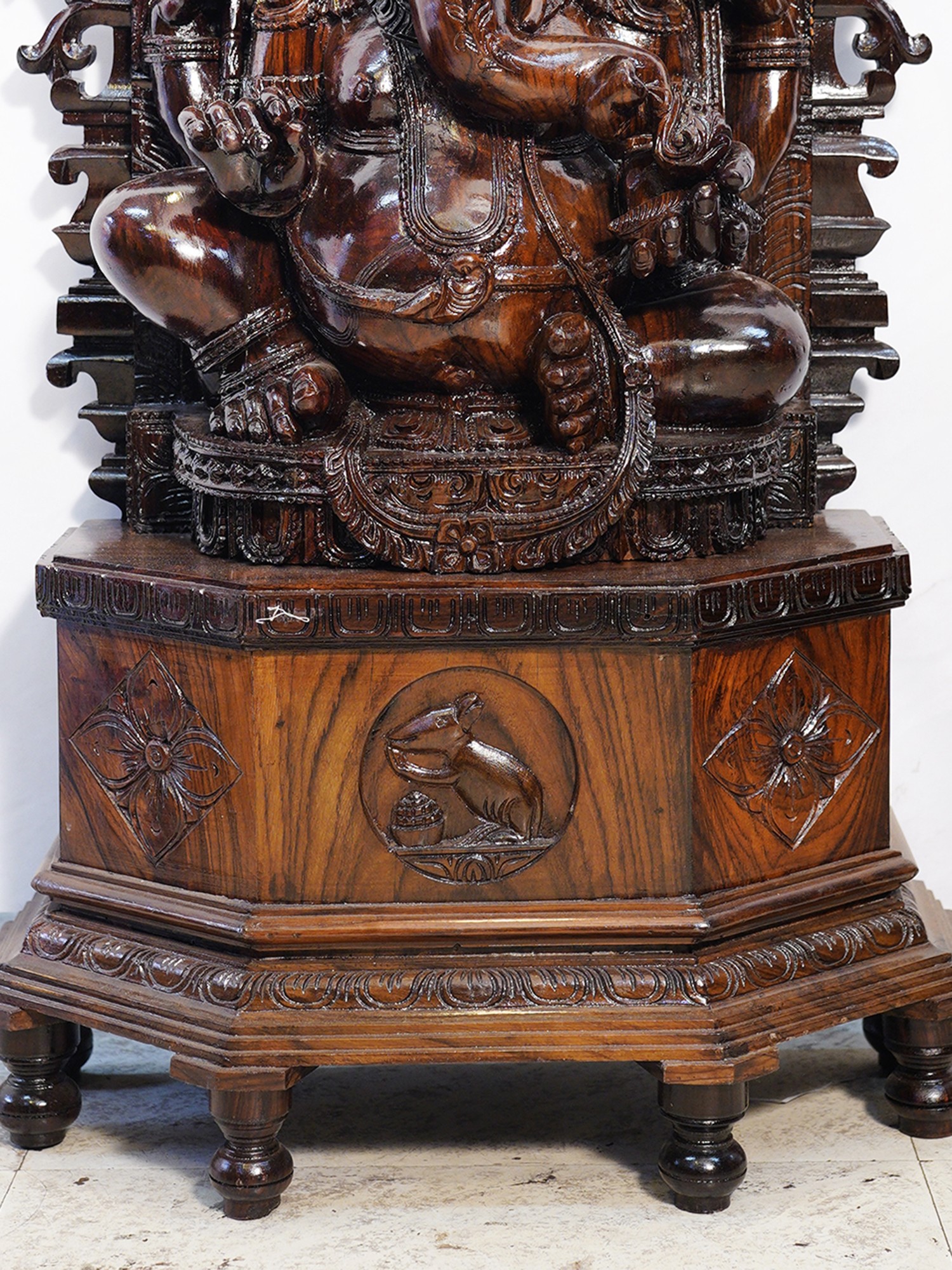 Large Size Lord Ganesha Wooden Statue Seated atop His Vahana
