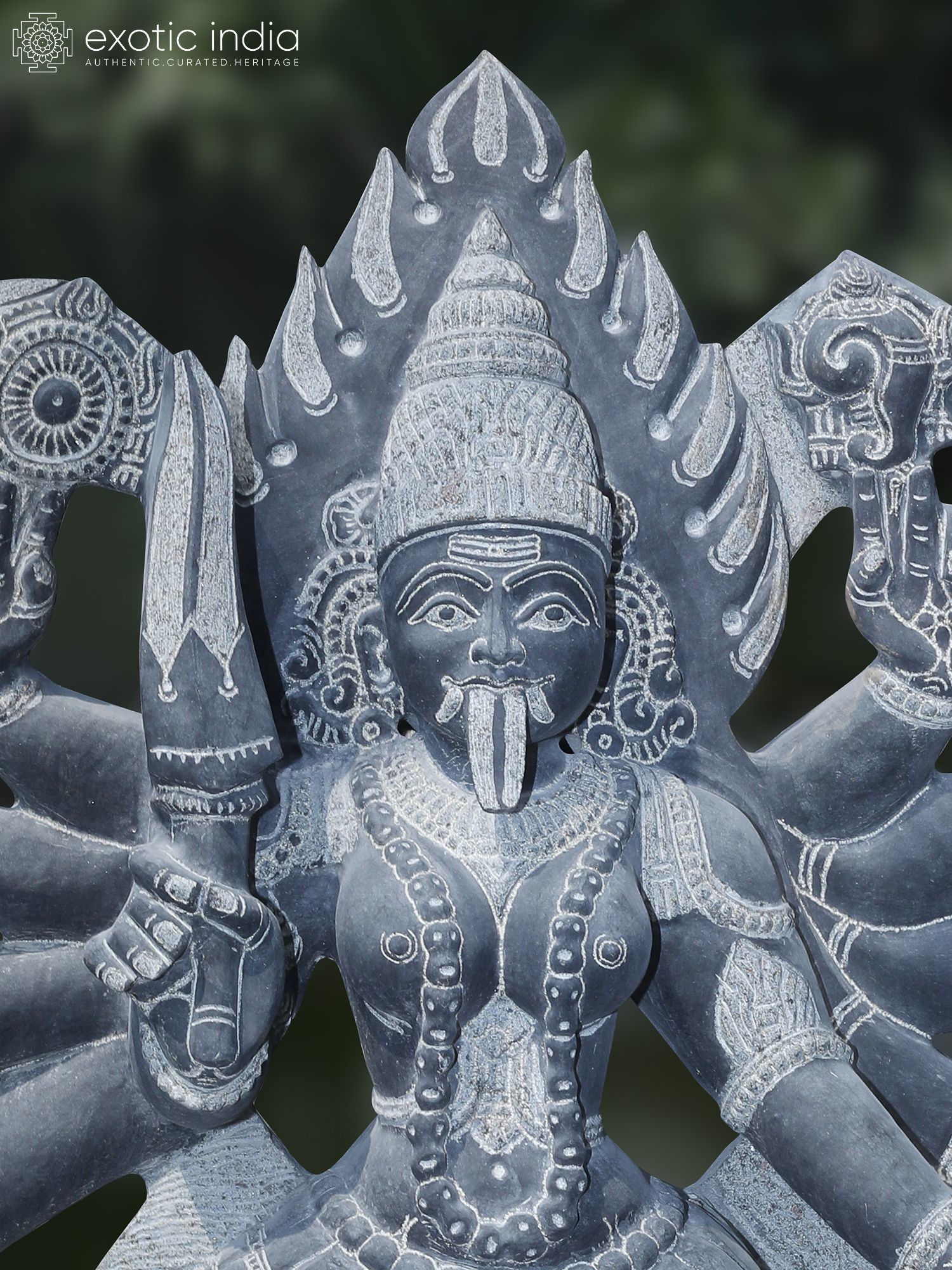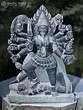 The multi-armed form of Kali is represented, holding symbolic weapons and attributes.