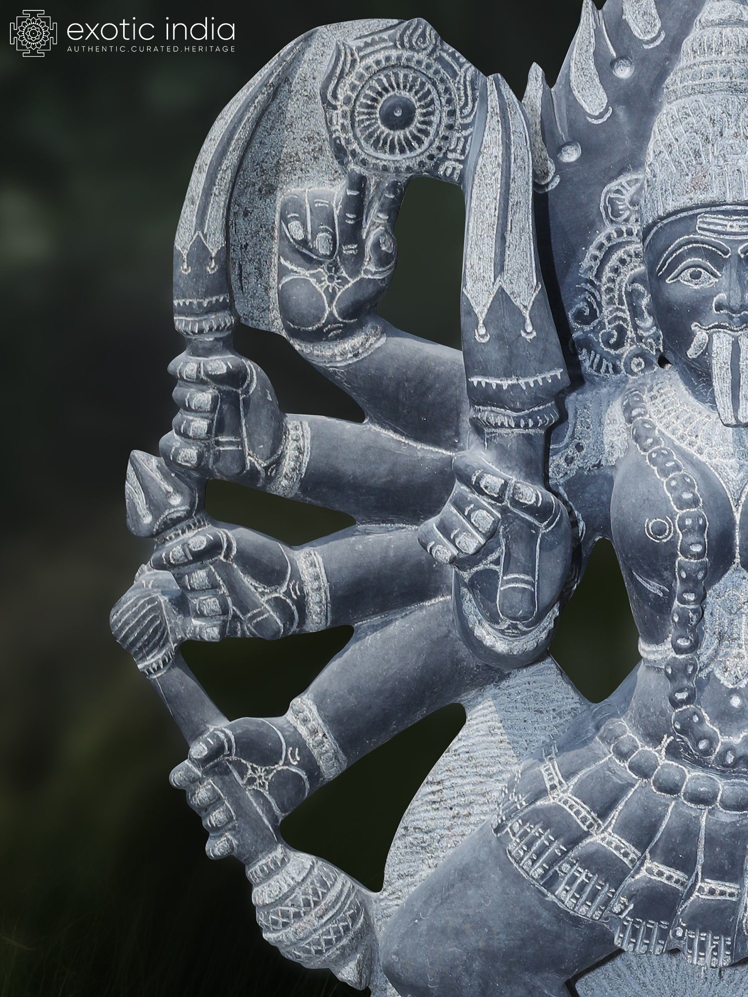 90" Goddess Kali - 36 Hands Granite Statue | Handmade Indian Art