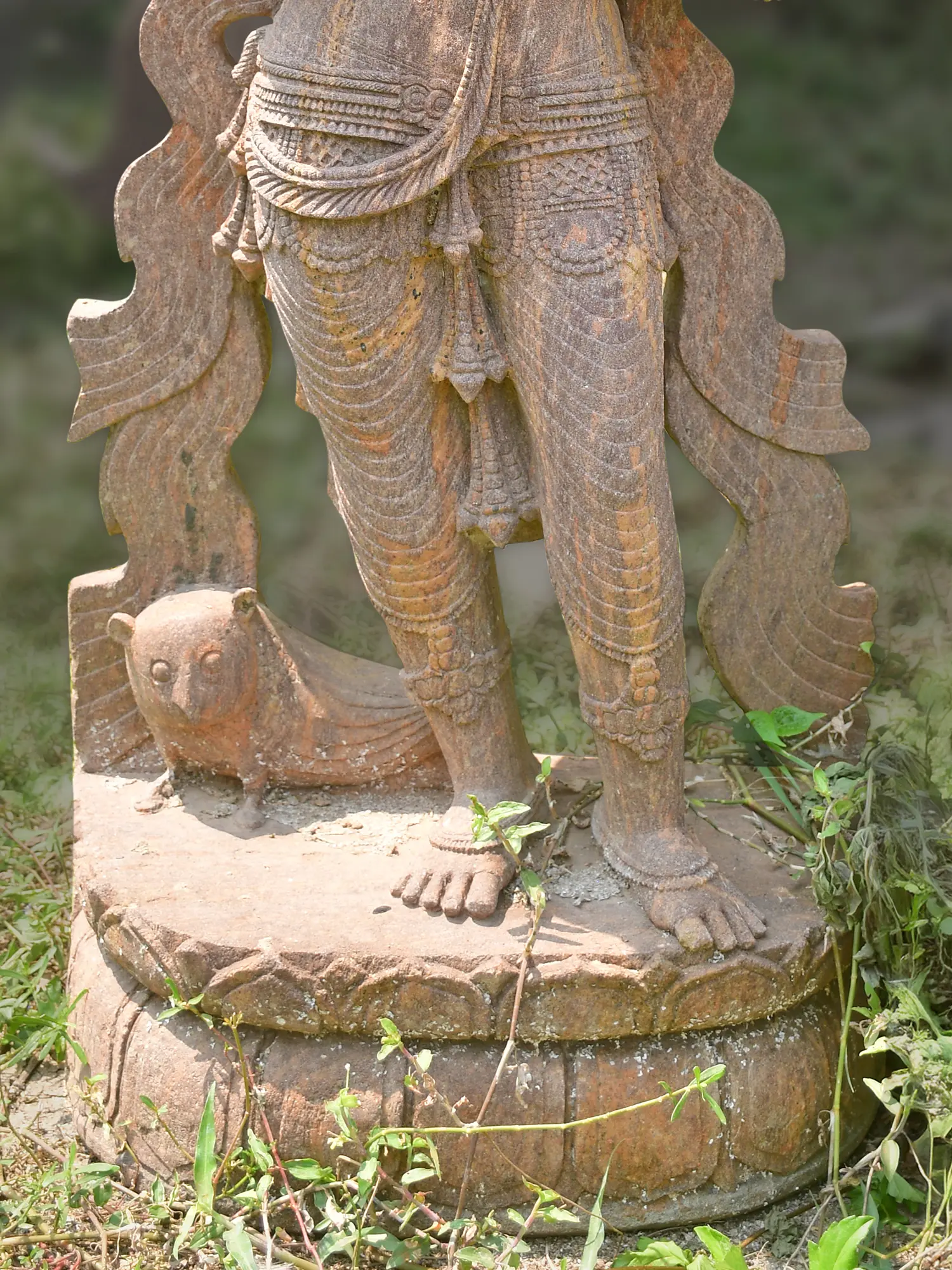 Crafted by skilled artisans using traditional techniques, this sculpture is hewn from exquisite Orissa sandstone. The natural variations in the stone, coupled with the meticulous hand-carving, imbue each detail with a unique soul. You'll feel the dedication and reverence poured into its creation, from the delicate folds of the drapery to the serene expression on the deity's face.