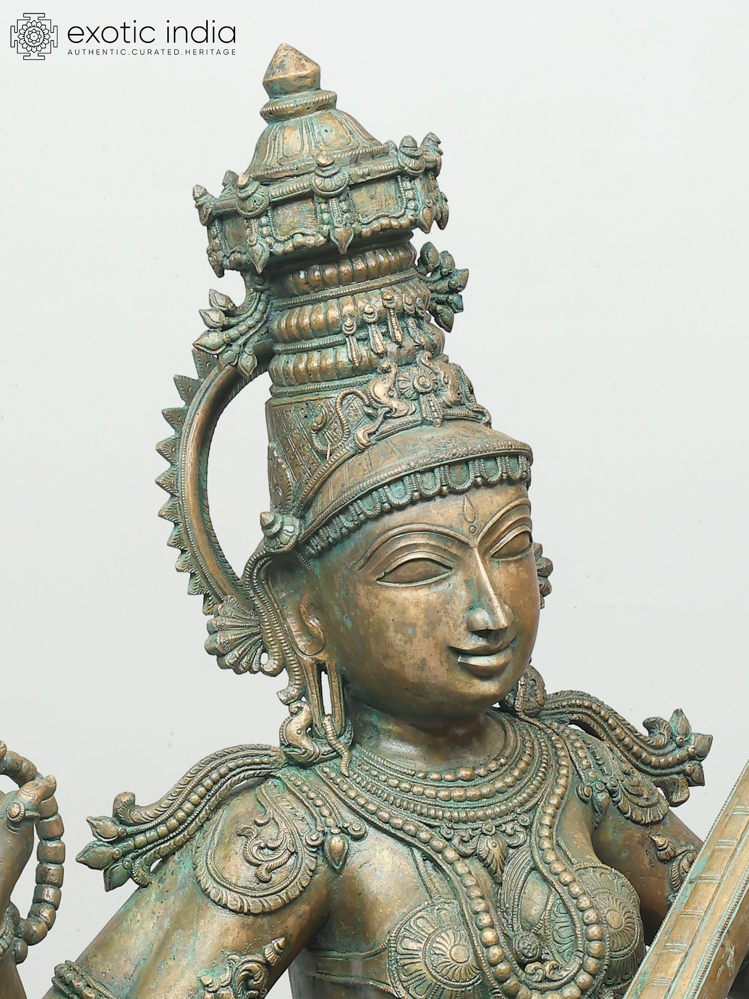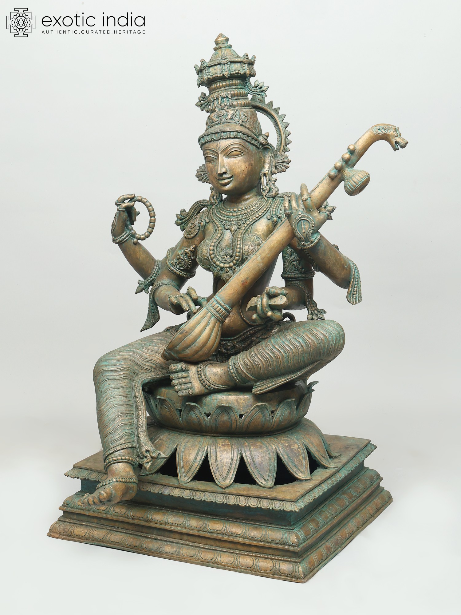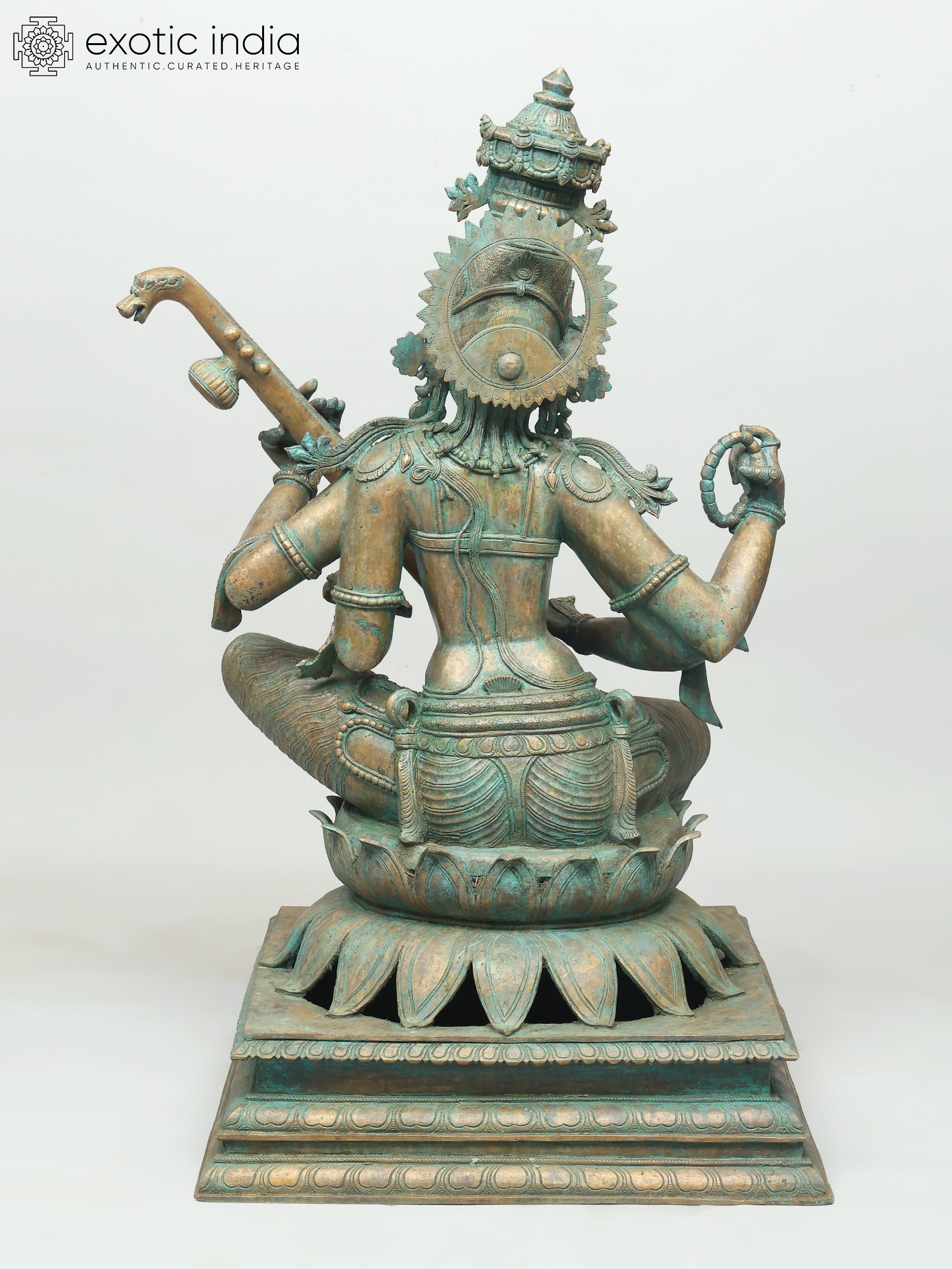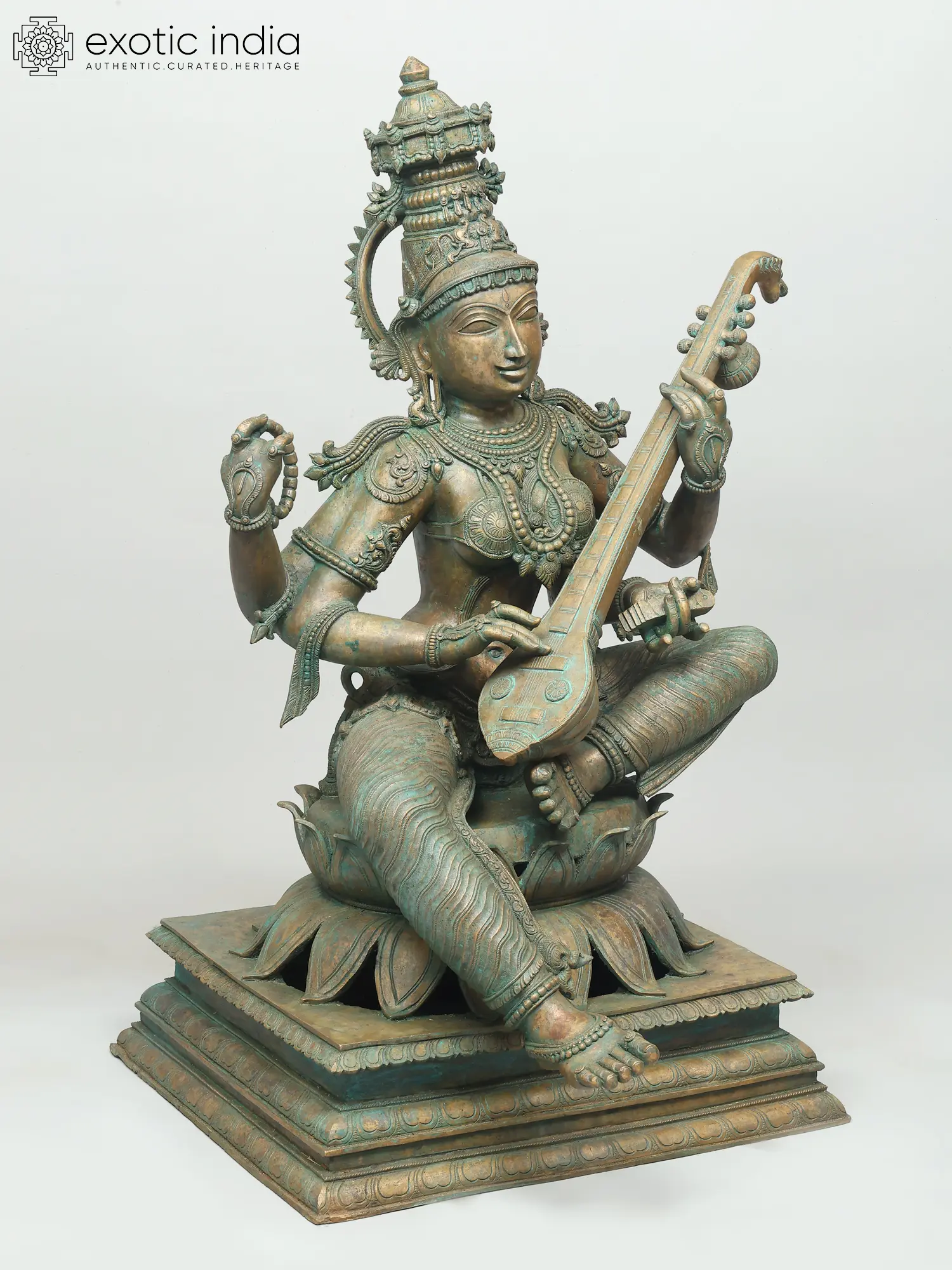 15" Goddess Saraswati - Goddess of Knowledge, Art and Wisdom | Bronze Statue
