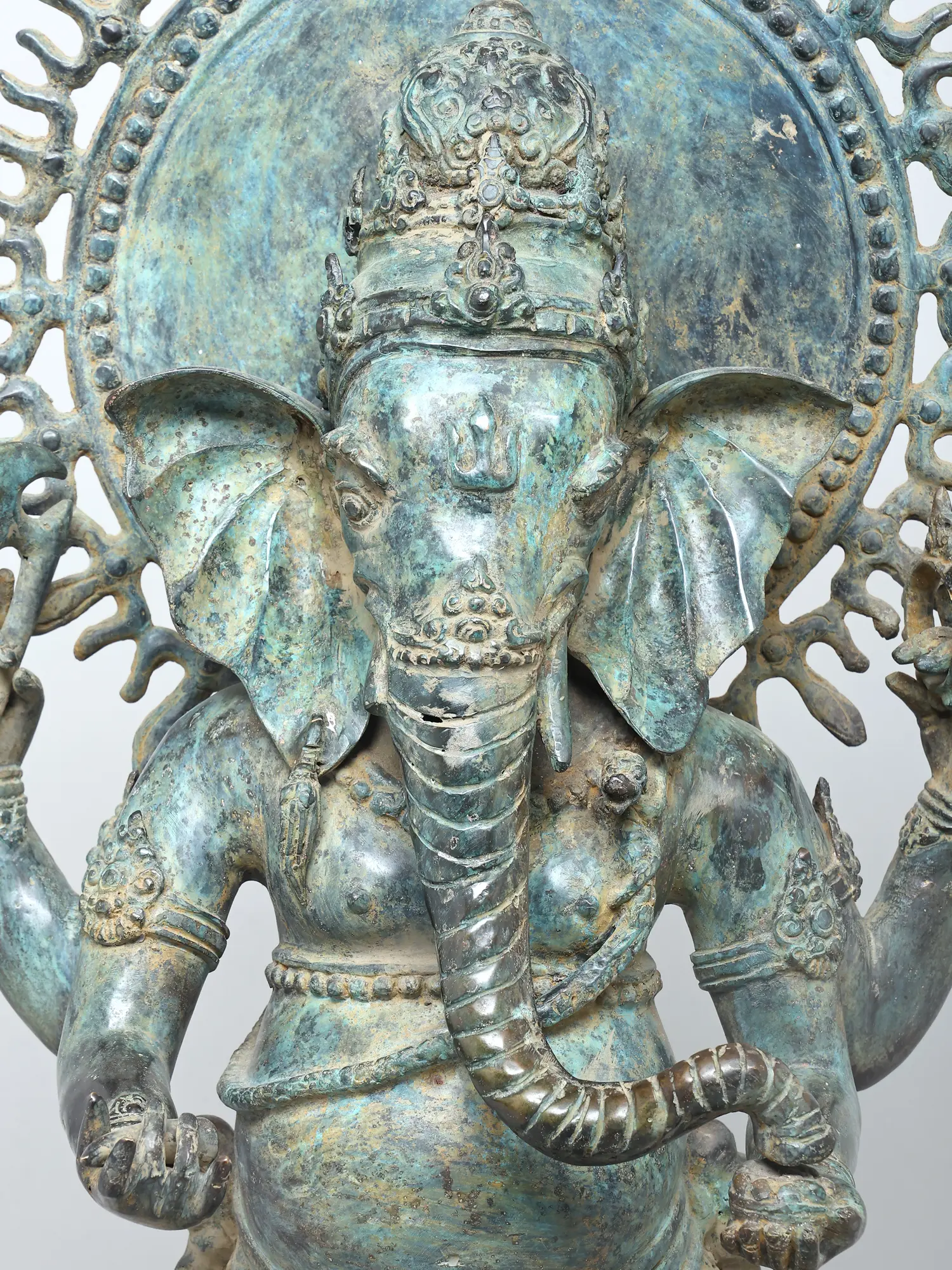 12" Chaturbhuj Lord Ganesha Holding Modak in Hand | Orissa Stone Statue | Exquisite Handmade Indian Art