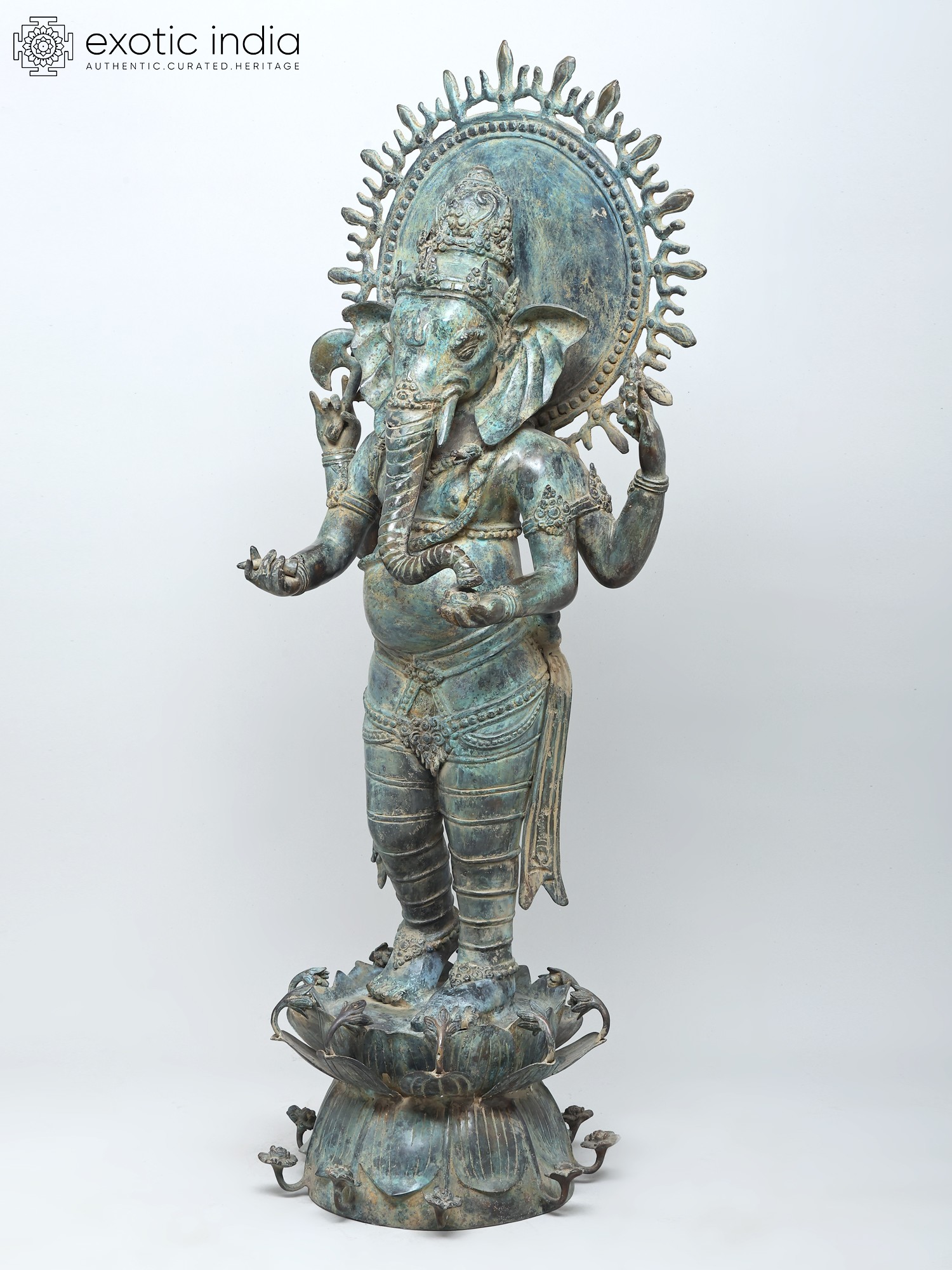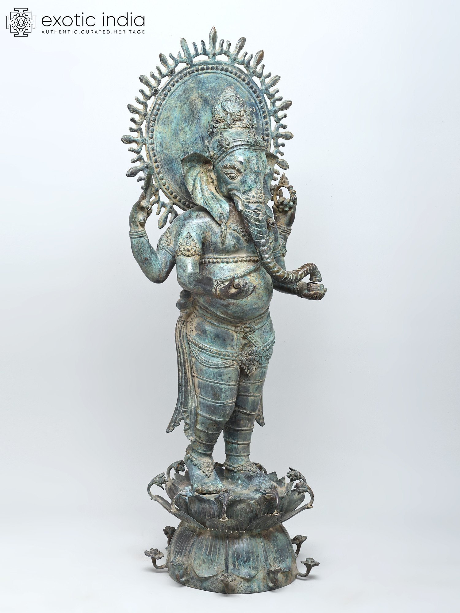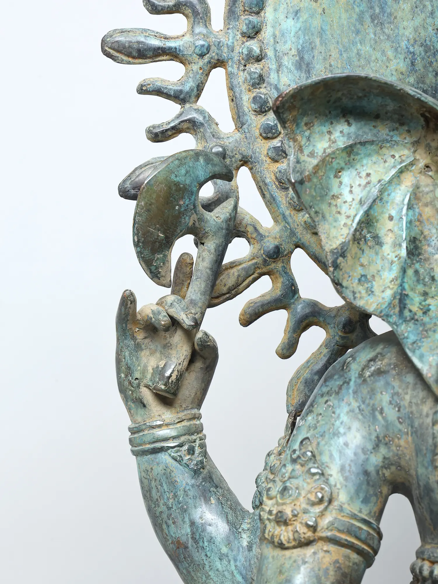 8" Standing Tribal Lord Ganesha Idol Playing Veena | Brass Statue