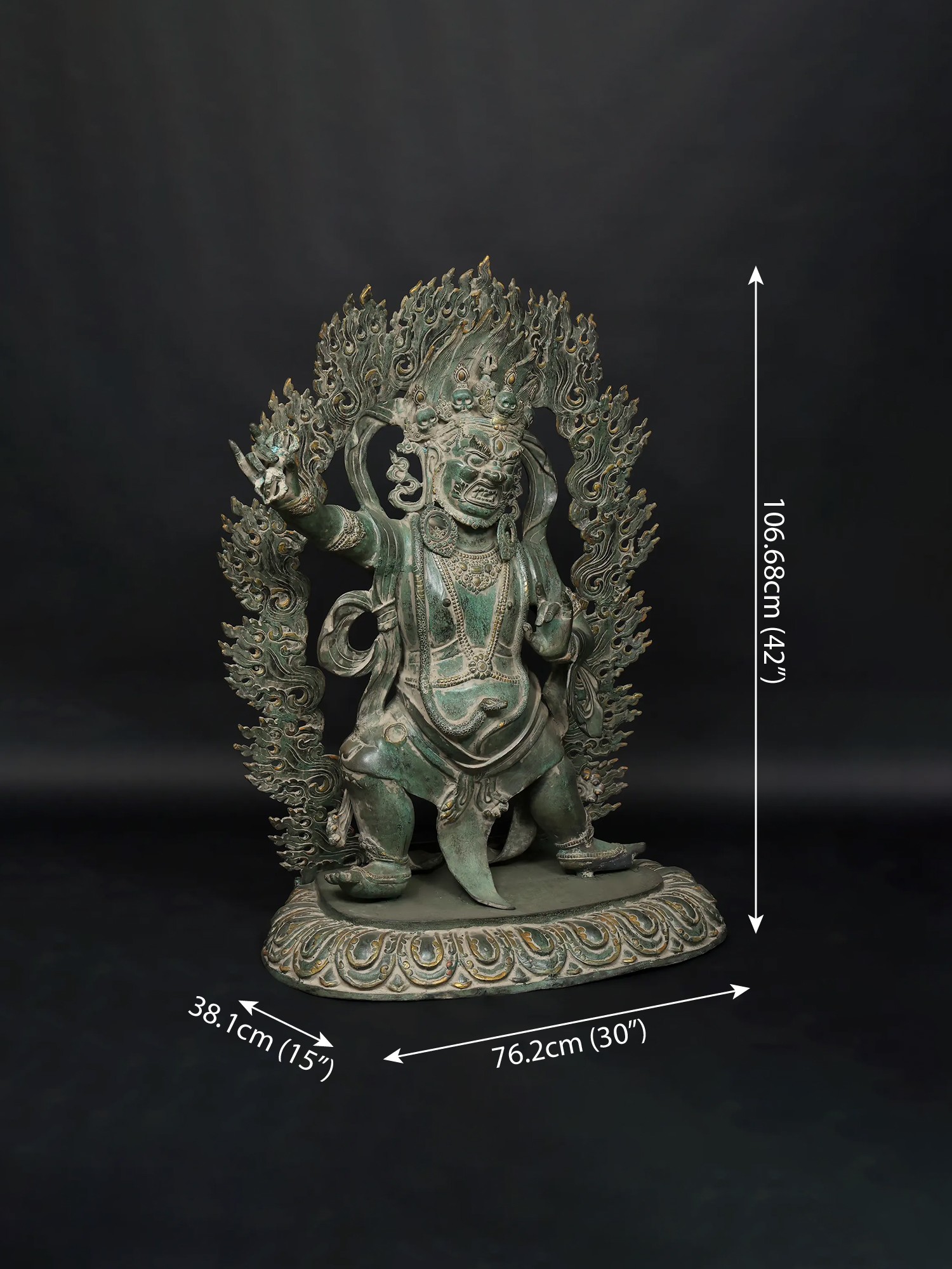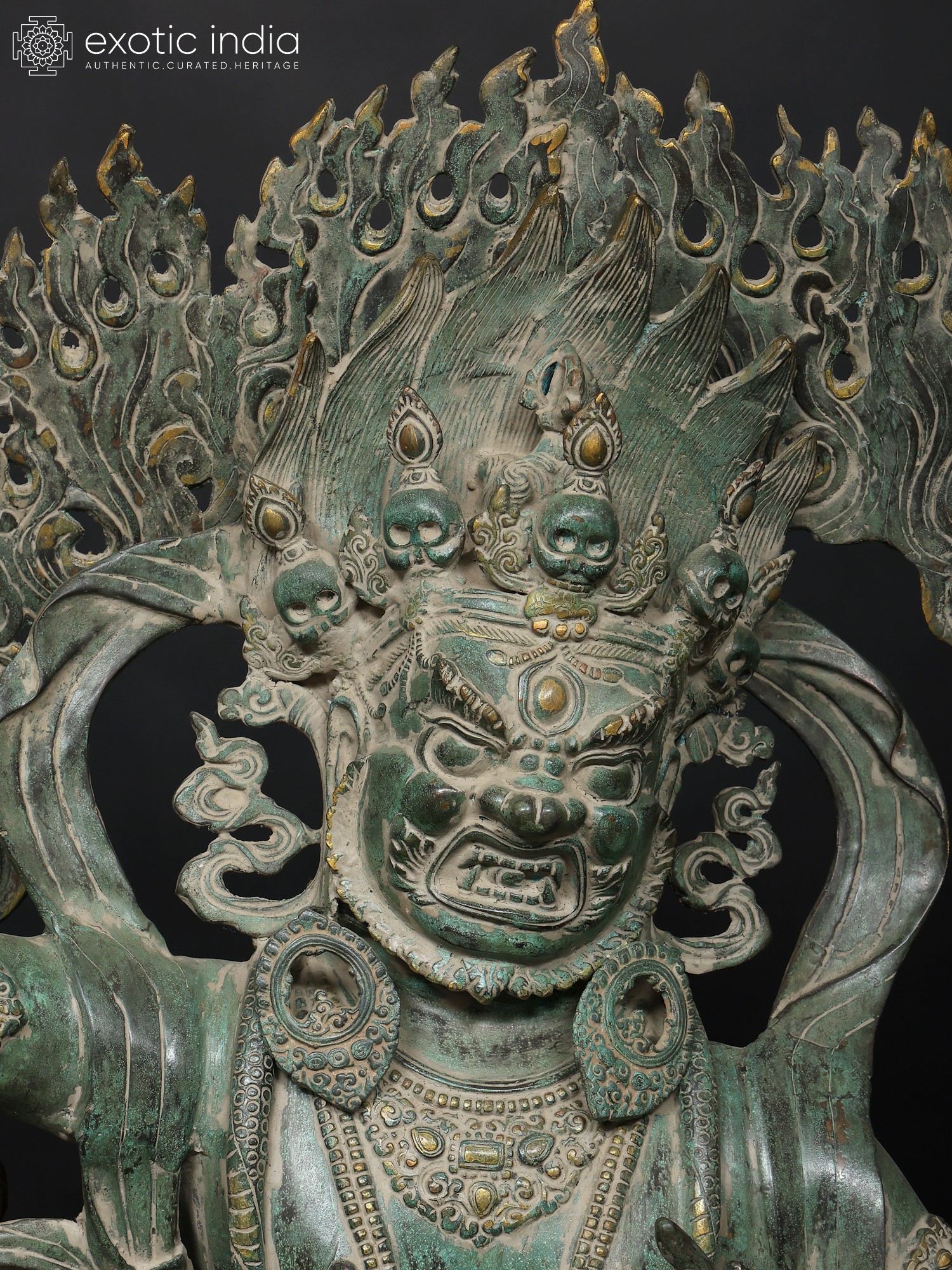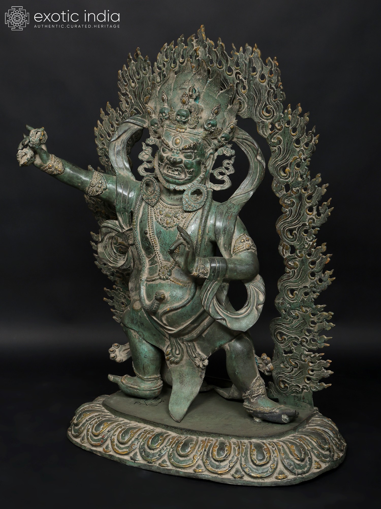 12" Vajrapani with Fire Aureole (Tibetan Buddhist Deity) In Brass | Handmade | Made In India