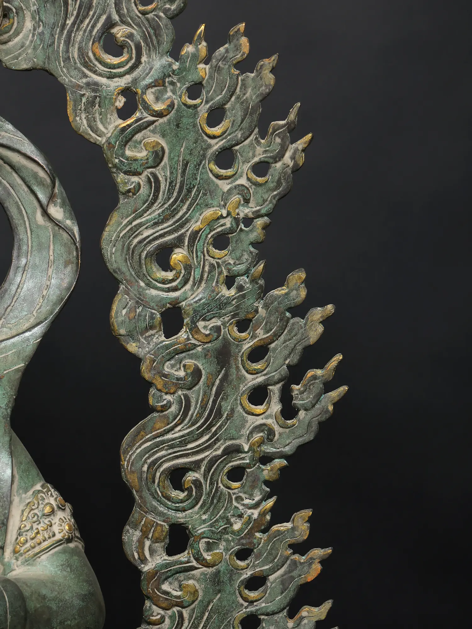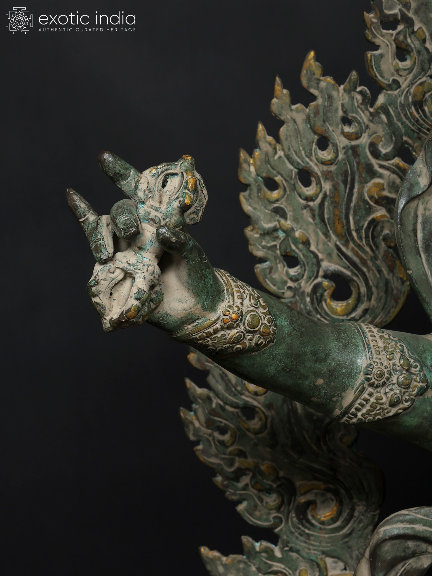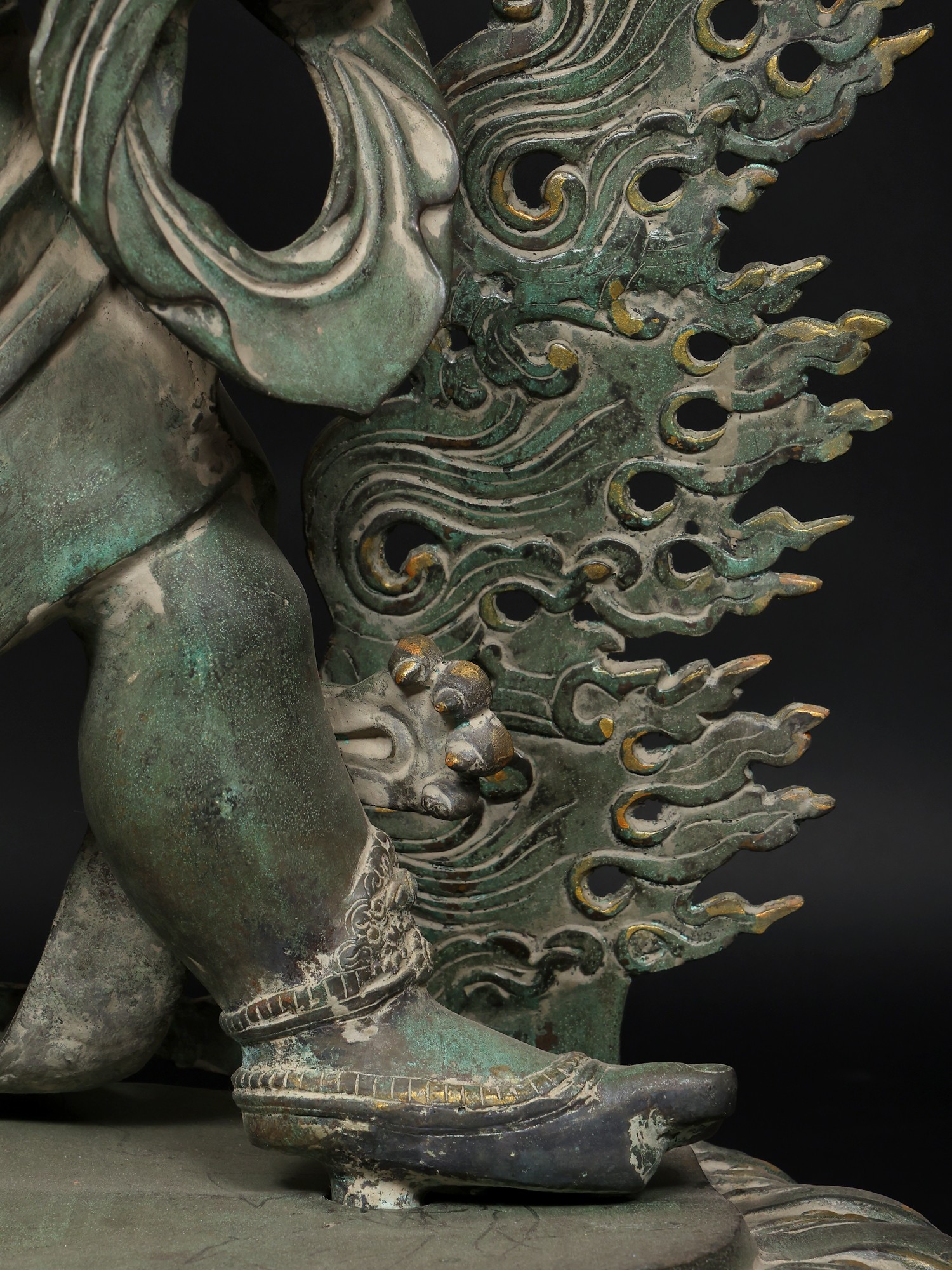 12" Buddhist Deity Vajrapani Idol with Fire Aureole | Handmade Brass Statue