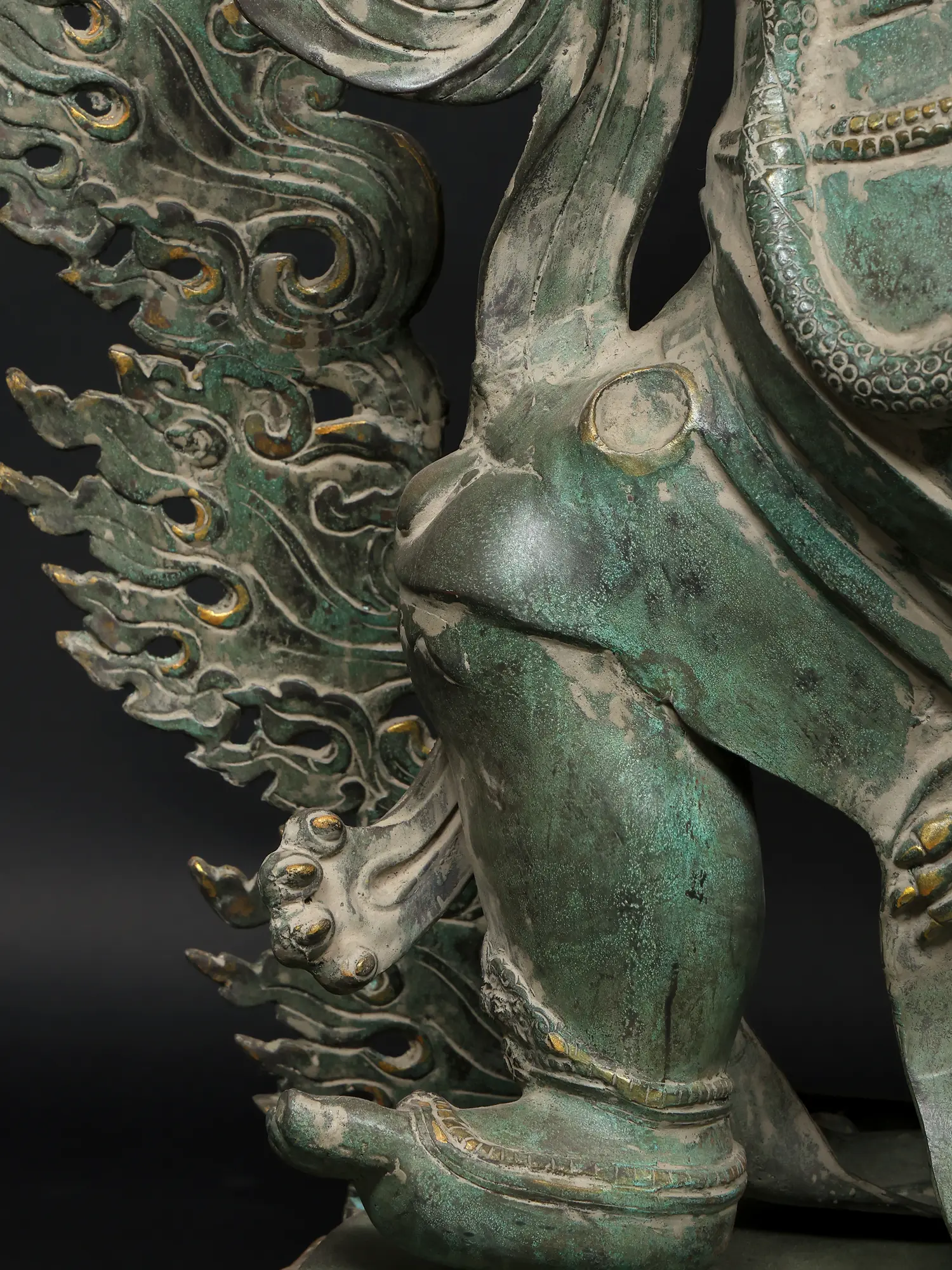 Behold a representation of formidable power and unwavering protection. This representation embodies the fierce determination and boundless compassion found within Vajrayana Buddhism. More than just a representation, it is a conduit for the potent energy of a guardian deity, a manifestation of enlightened activity that dispels ignorance and overcomes obstacles on the path to enlightenment. This imposing representation captures the essence of the bodhisattva Vajrapani. Note the posture, the fierce expression, and the flames that surround him, which are not symbols of aggression but rather metaphors for the burning away of negativity and the purification of mind. Each detail is crafted to evoke a sense of awe and inspire a deeper connection to the teachings.