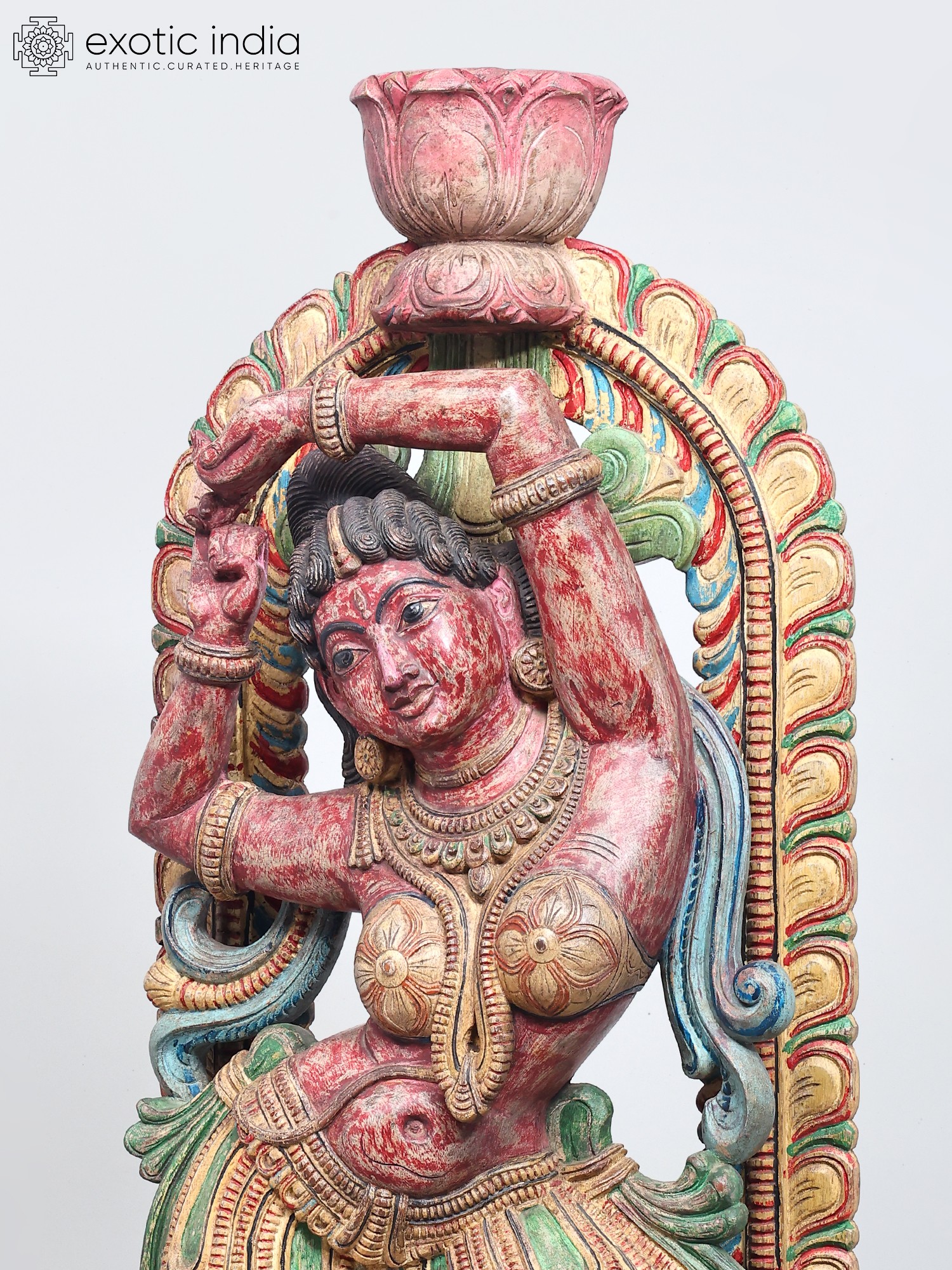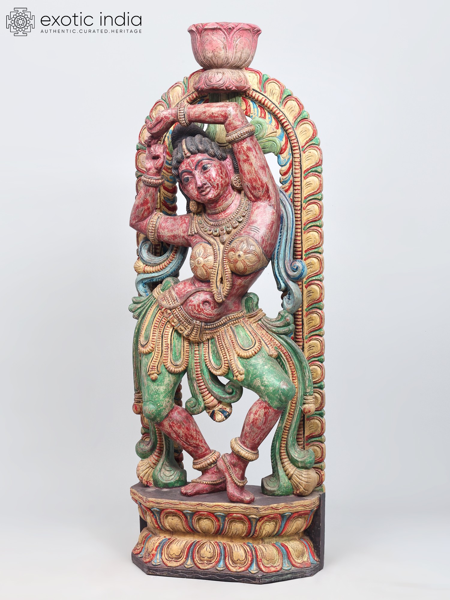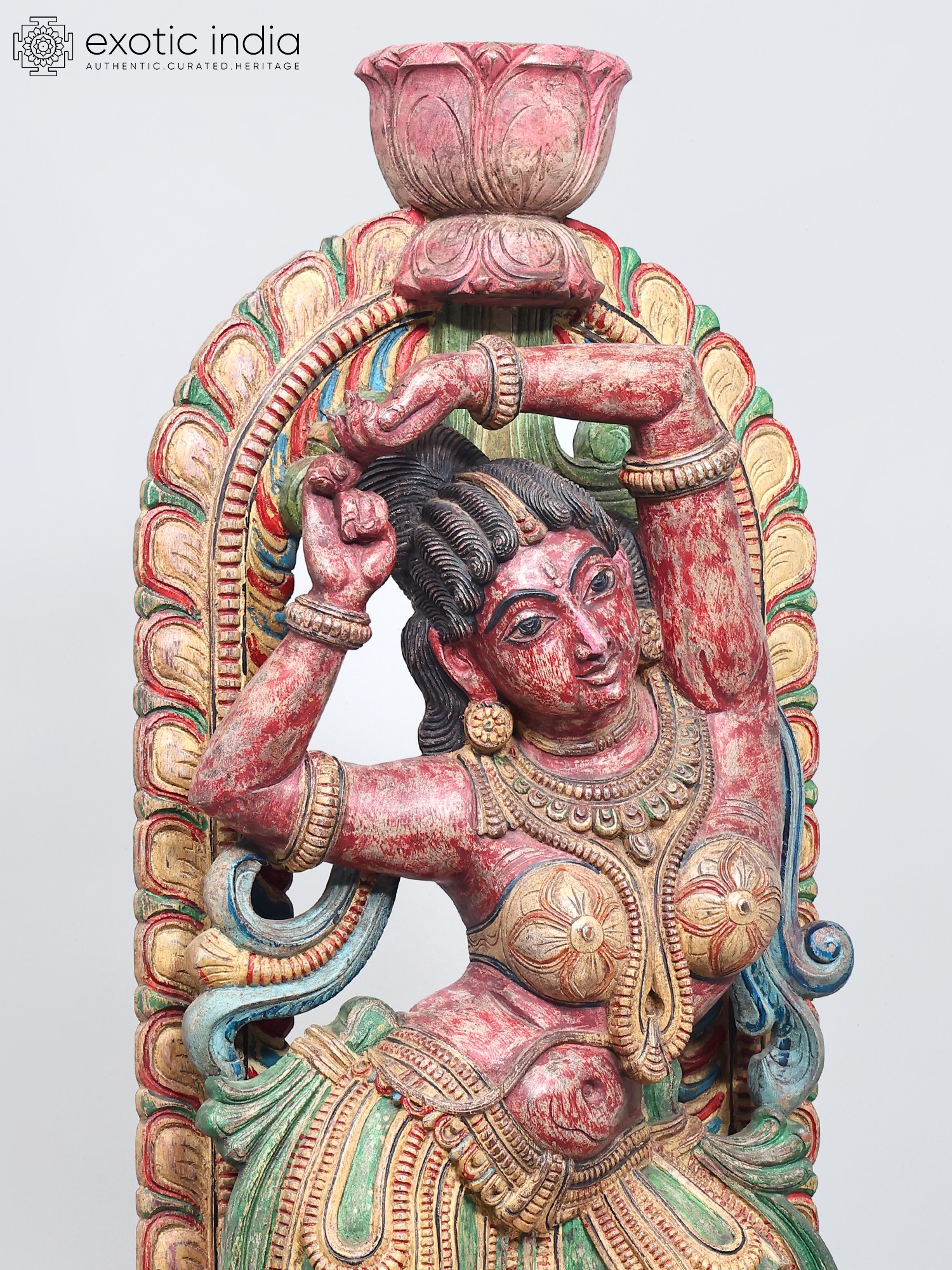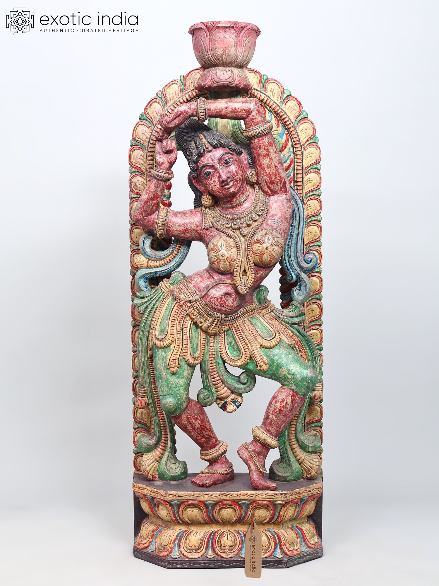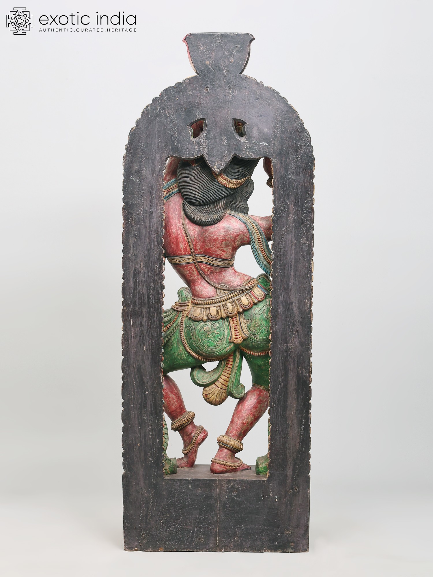 The vibrant colors adorning the sculpture—rich reds, verdant greens, and golden yellows—are not merely decorative but imbue the piece with energy and emotion. These hues often carry symbolic meanings in their cultural contexts, perhaps representing passion, prosperity, or divine radiance. The weathered patina suggests a history, a journey, and an authenticity that adds to its allure. Each curve of the dancer's body, each fold of her attire, has been painstakingly rendered, inviting the viewer to trace the story held within the wood. This is more than just a decorative object; it's a narrative captured in three dimensions, a testament to the enduring power of art to convey stories, emotions, and cultural heritage.