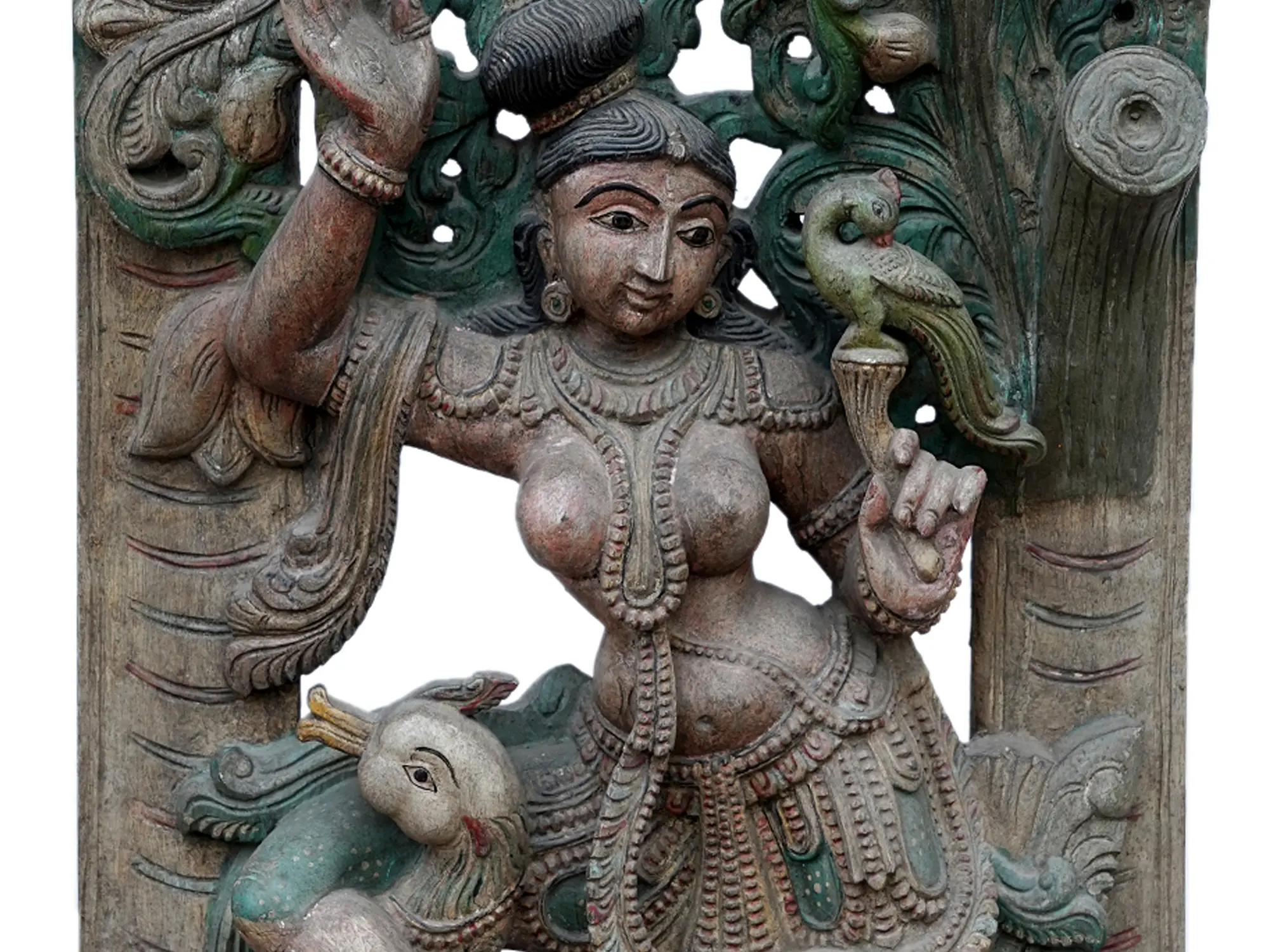 Kalamkari Pen Art Bangalore Silk Sarees with Multicolor Mor Motif on Body and Swans on Pallu
