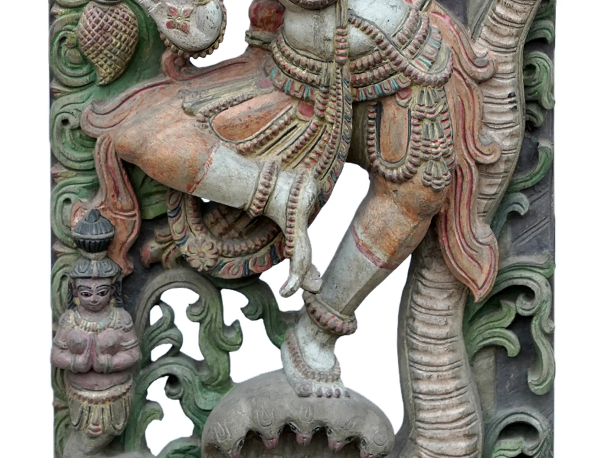 58" Large Venugopal Krishna | Wood Carved Colorful Wall Hanging Panel
