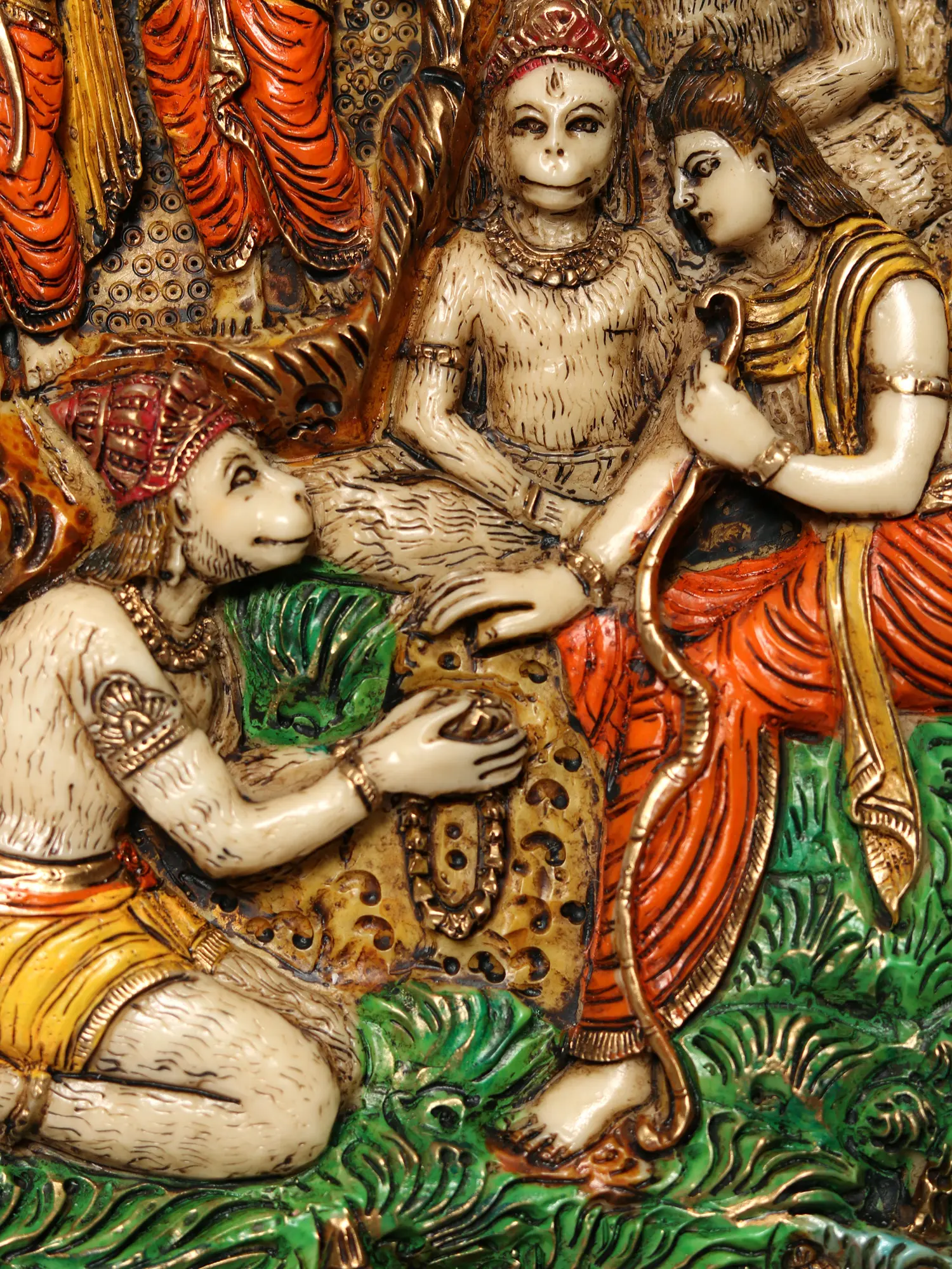 Tulsidas wrote these lines to describe the essence of Ram’s name. He believed that Ram through his life can educate generations about Satya and Karma. This Lord Rama’s life story wall hanging is the manifestation of Tulsidas’s dream. The circular tablet within the wall hanging encapsulates vivid and colorful scenes from the Ramayana, bringing the story to life. Enclosed within a plain wooden frame, this wall hanging exudes a rustic and timeless charm. The intricate detailing and vibrant colors add depth and visual appeal to the narrative. It serves as a symbolic and artistic representation of Lord Rama's valor and righteousness, inspiring devotion and admiration.