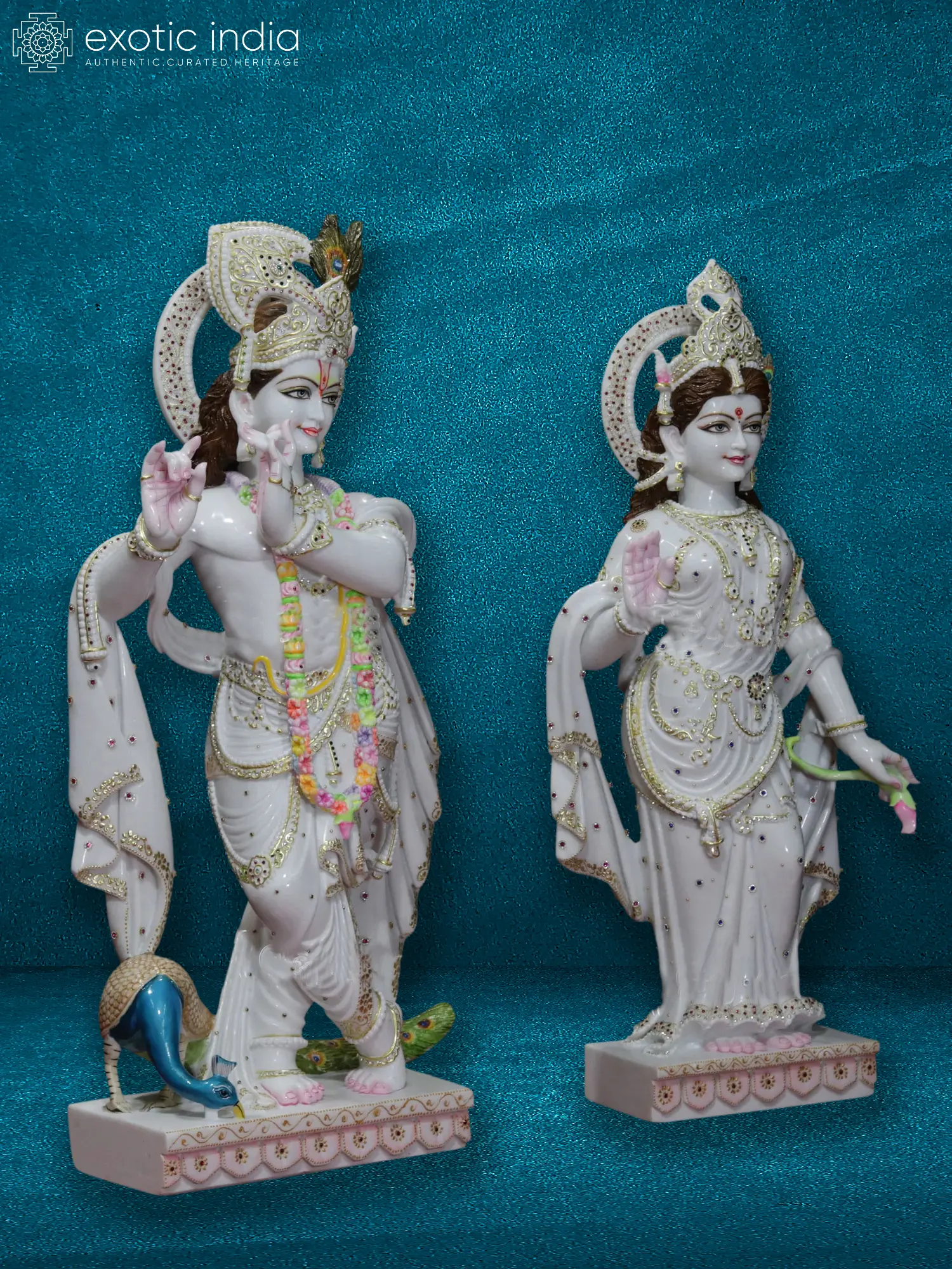 24" Pair Of Radha Krishna White Marble Idol | Hand Carved Statue