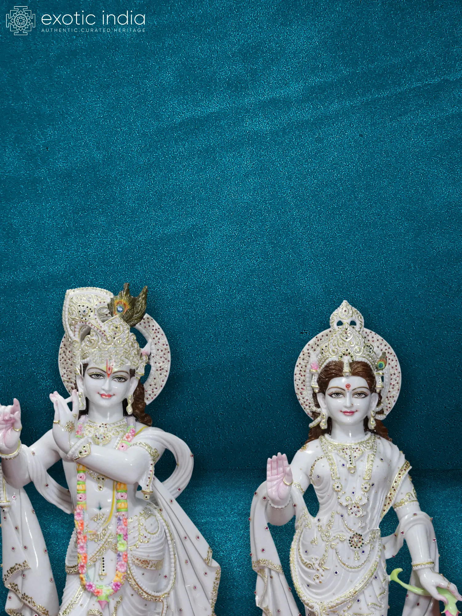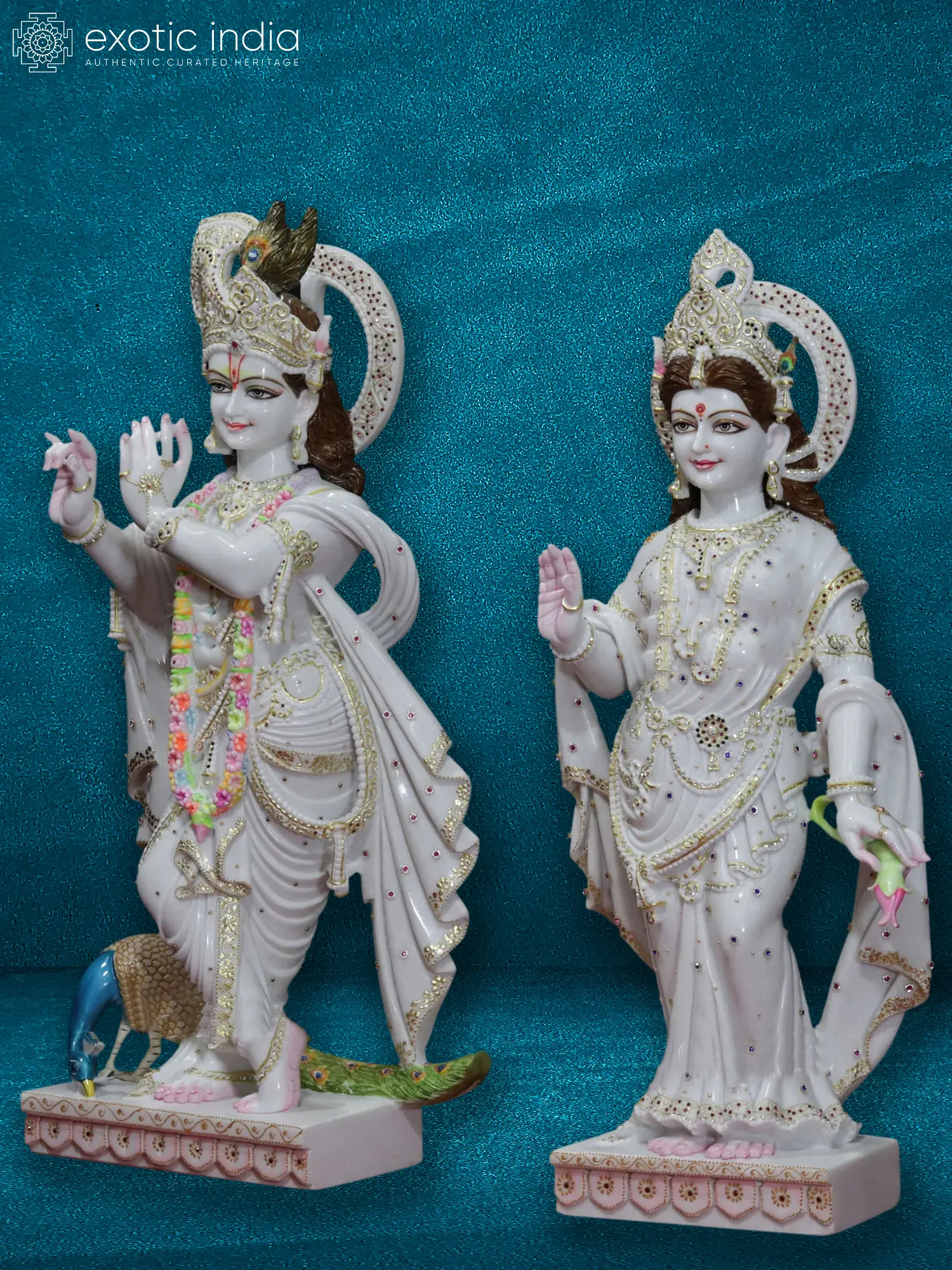 27" Beautiful Jodi Radha And Krishna | Super White Vietnam Marble Statue
