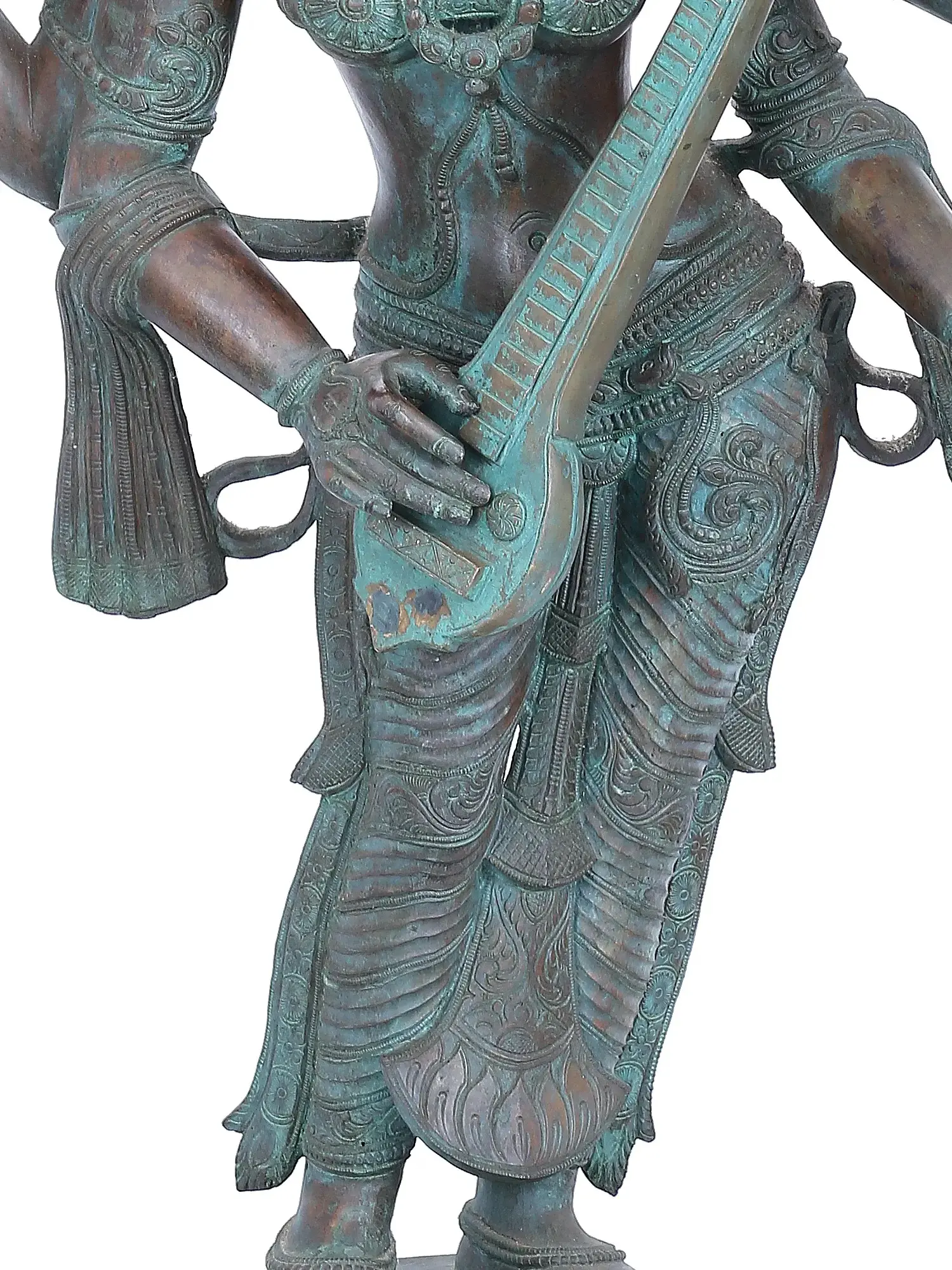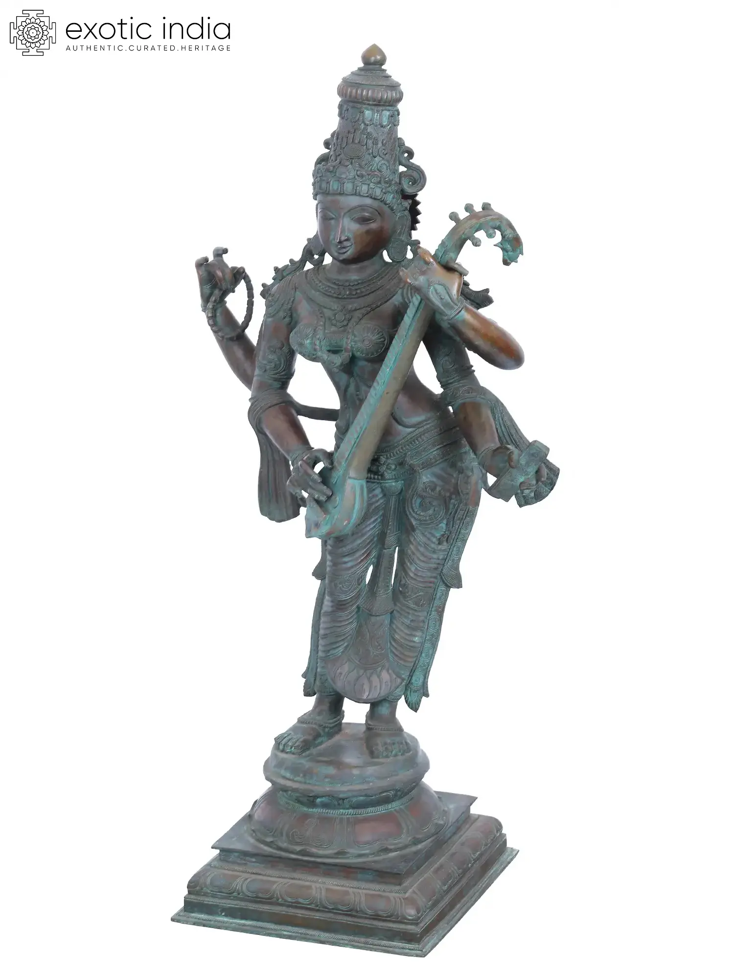 42" Large Standing Devi Saraswati | Madhuchista Vidhana (Lost-Wax) | Panchaloha Bronze from Swamimalai