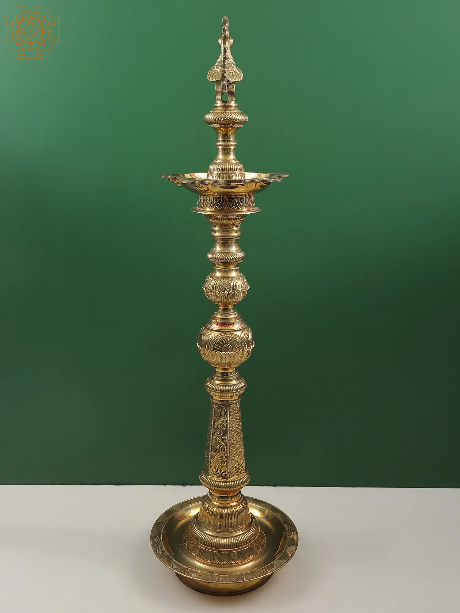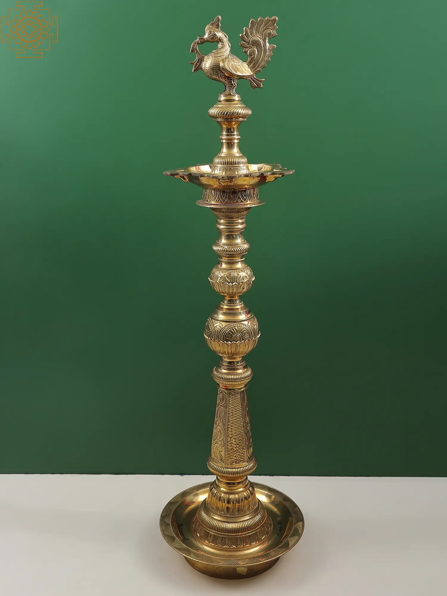 Elevate your spiritual rituals with this Peacock Lamp in Brass - handmade in India, combines intricate engraving with divine symbolism. The peacock, a symbol of beauty and spirituality, takes center stage in this masterpiece. As you light the lamp, the mesmerizing patterns come to life, casting a warm, inviting glow on your sacred space. Embrace the synergy of art and spirituality as you incorporate this lamp into your rituals. Let the dance of light and shadow guide you towards a deeper connection with the divine, reminding you of the beauty that exists in every moment.