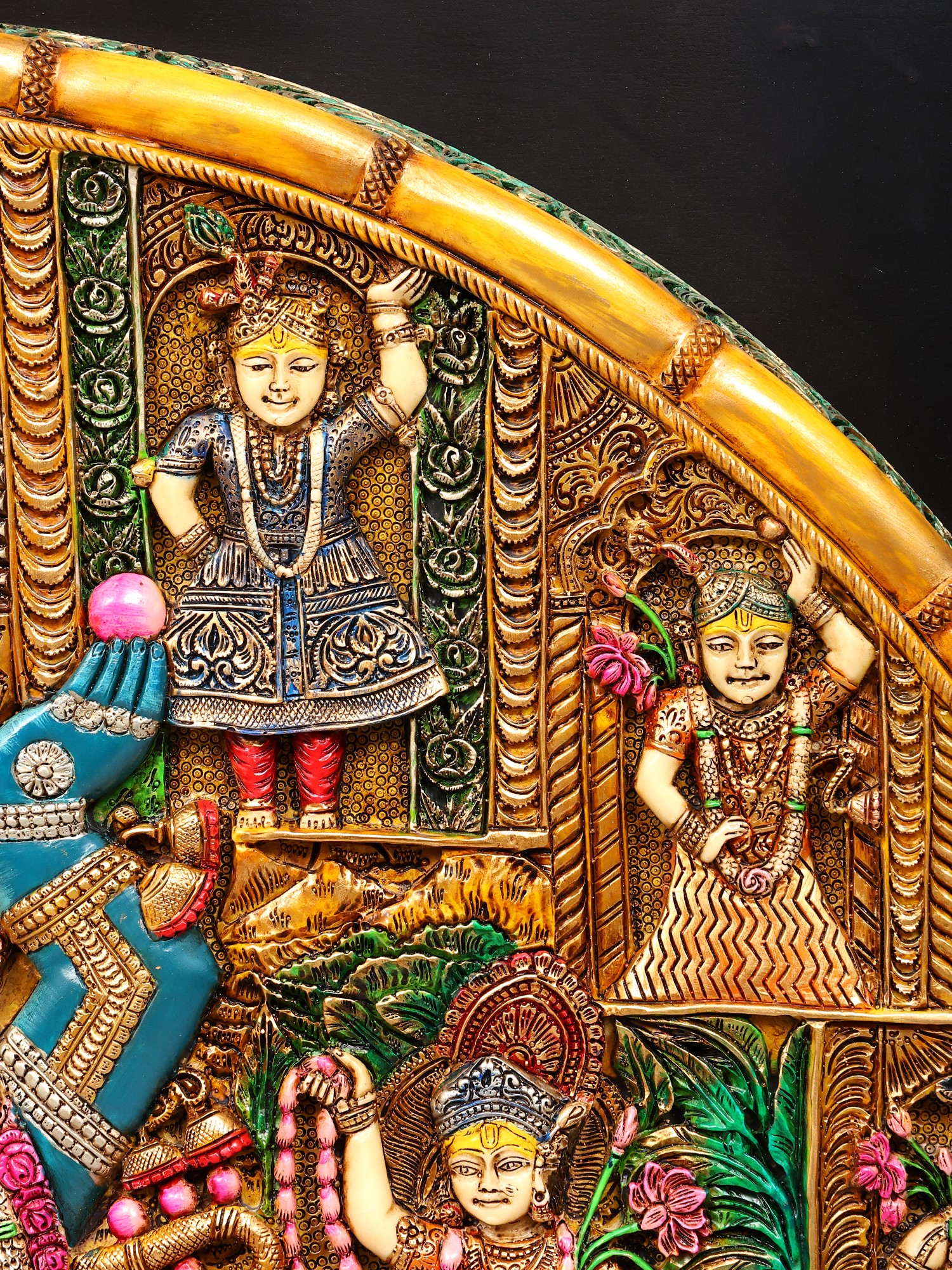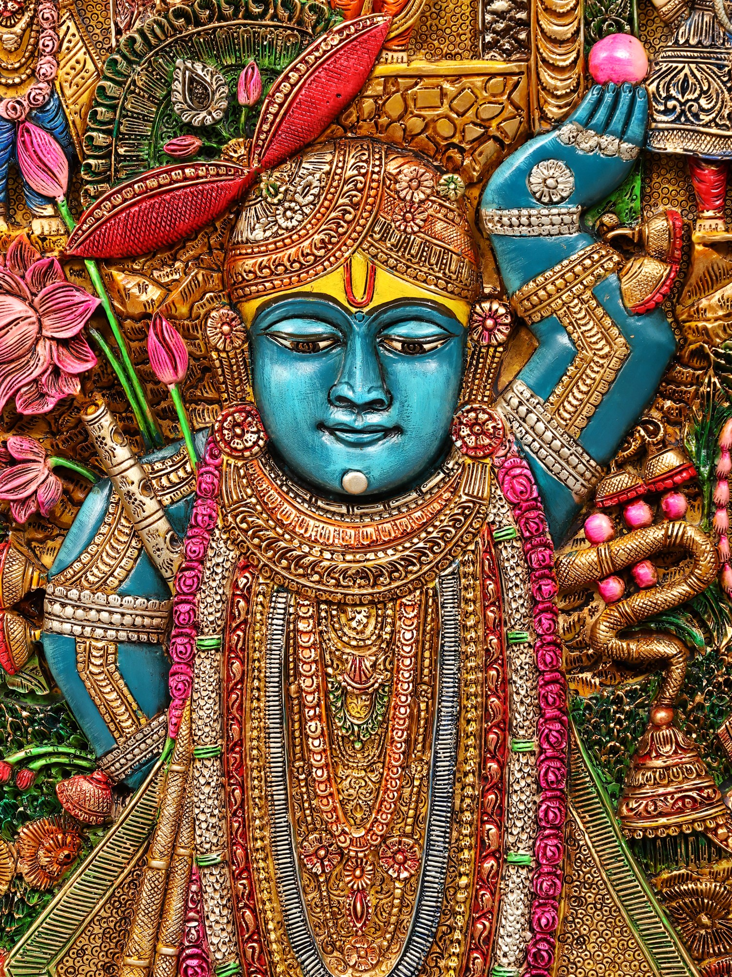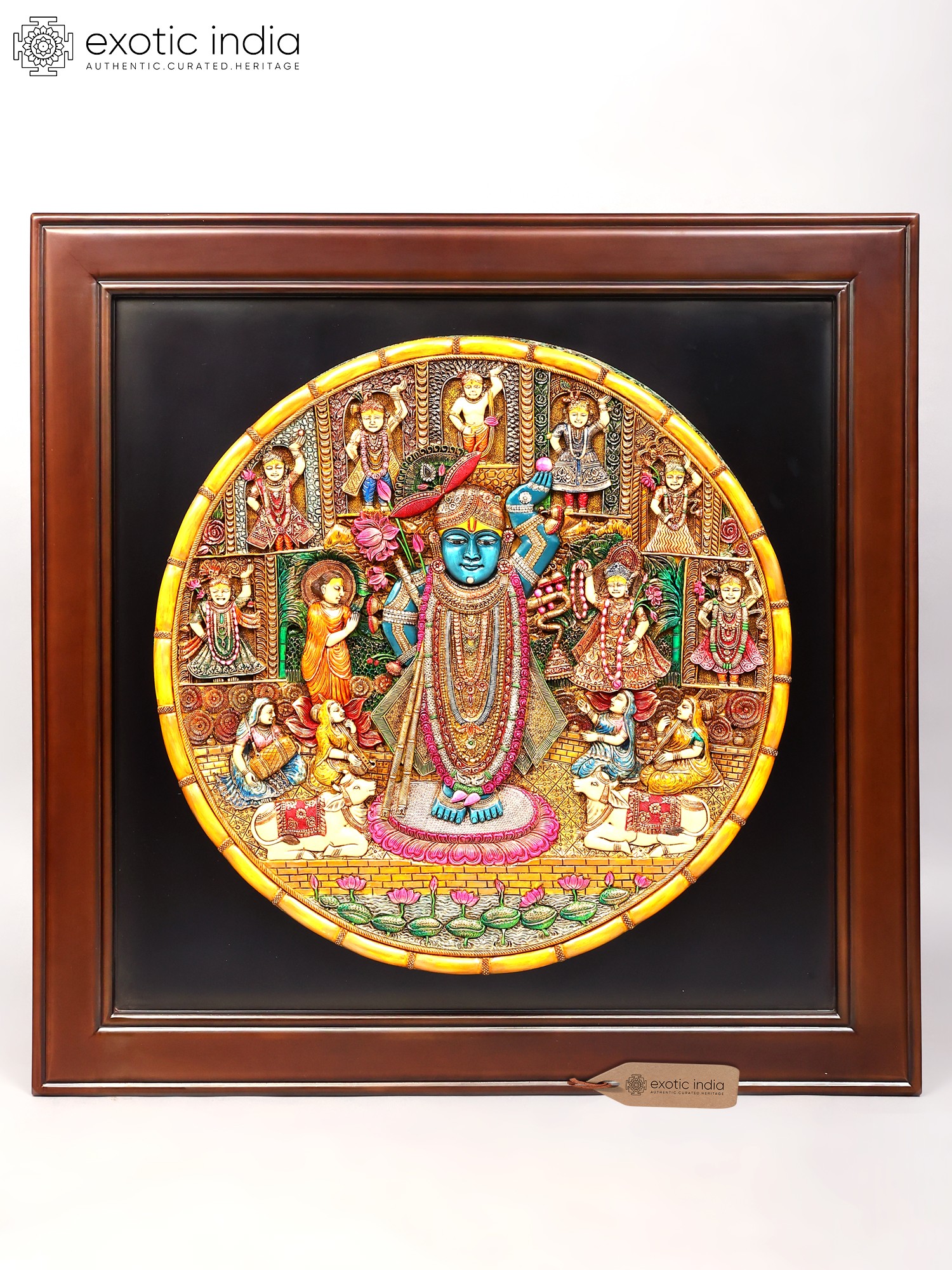24" Wooden Embossed Shrinath Ji Wall Hanging Frame