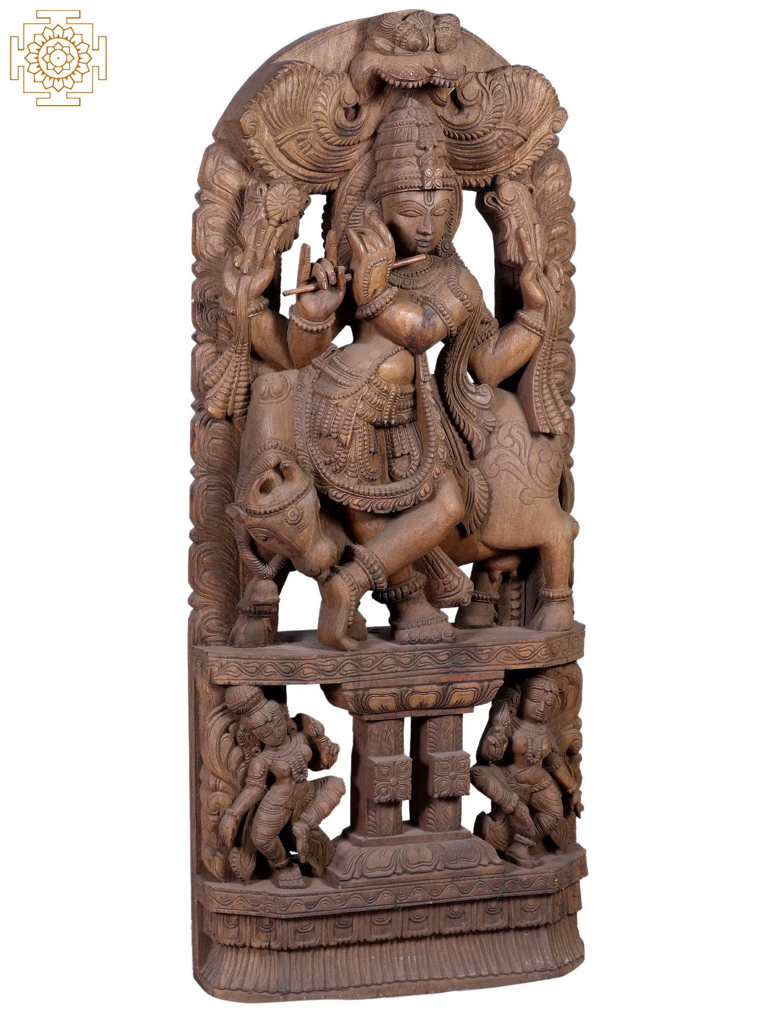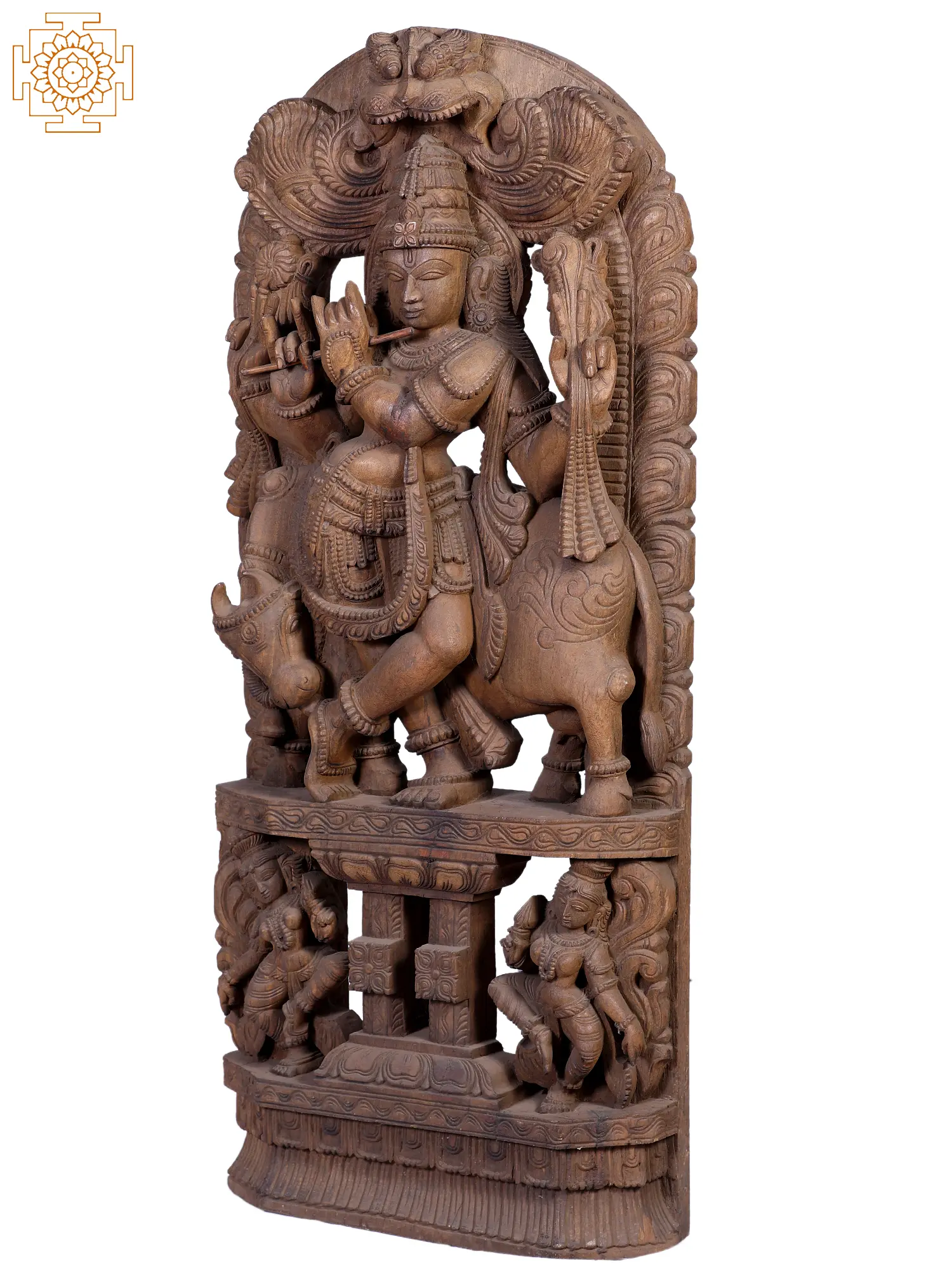 45" Large Superfine Standing Lord Krishna Playing Flute | Brass Statue with Inlay Work