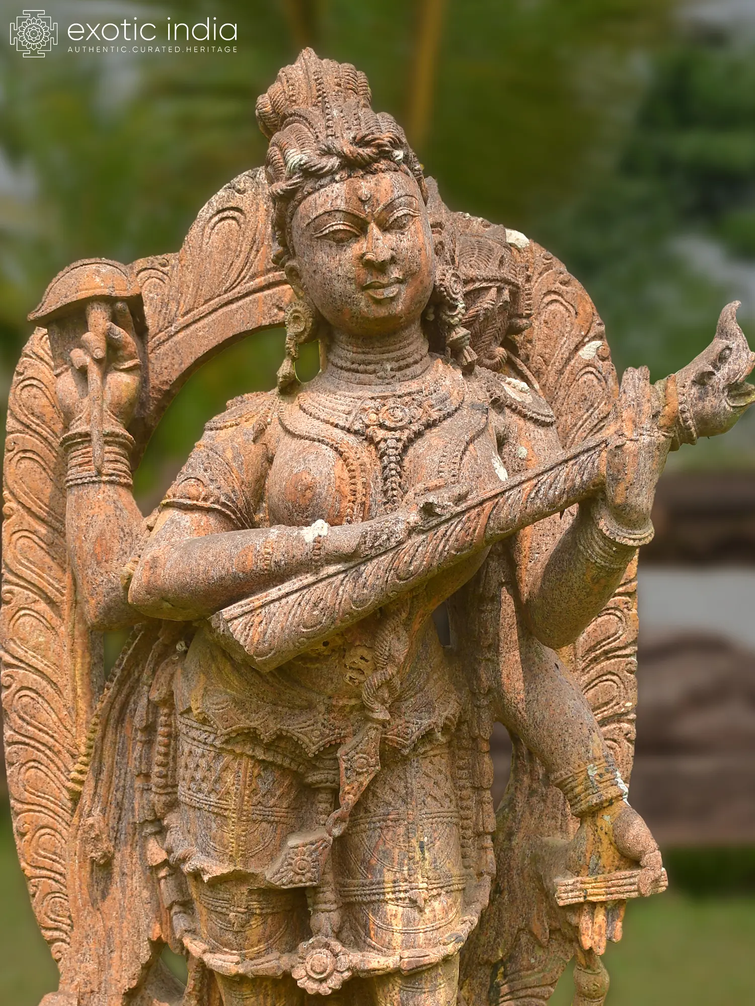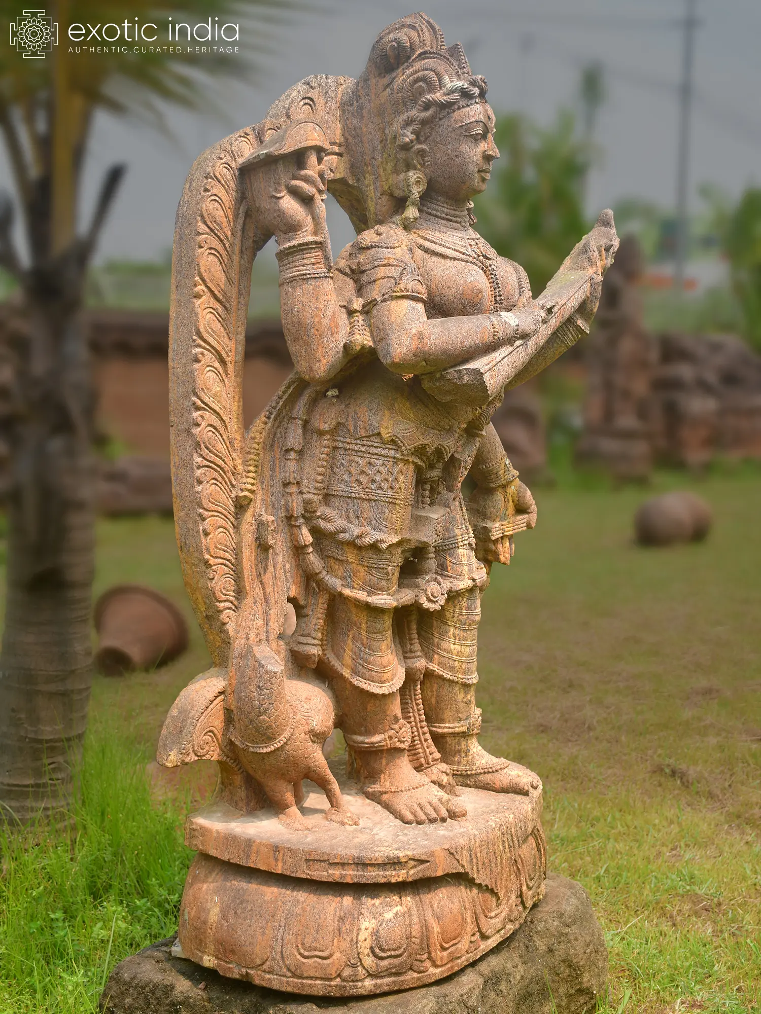 48" Goddess Saraswati | Sandstone Statue | Exquisite Handmade Indian Art