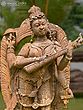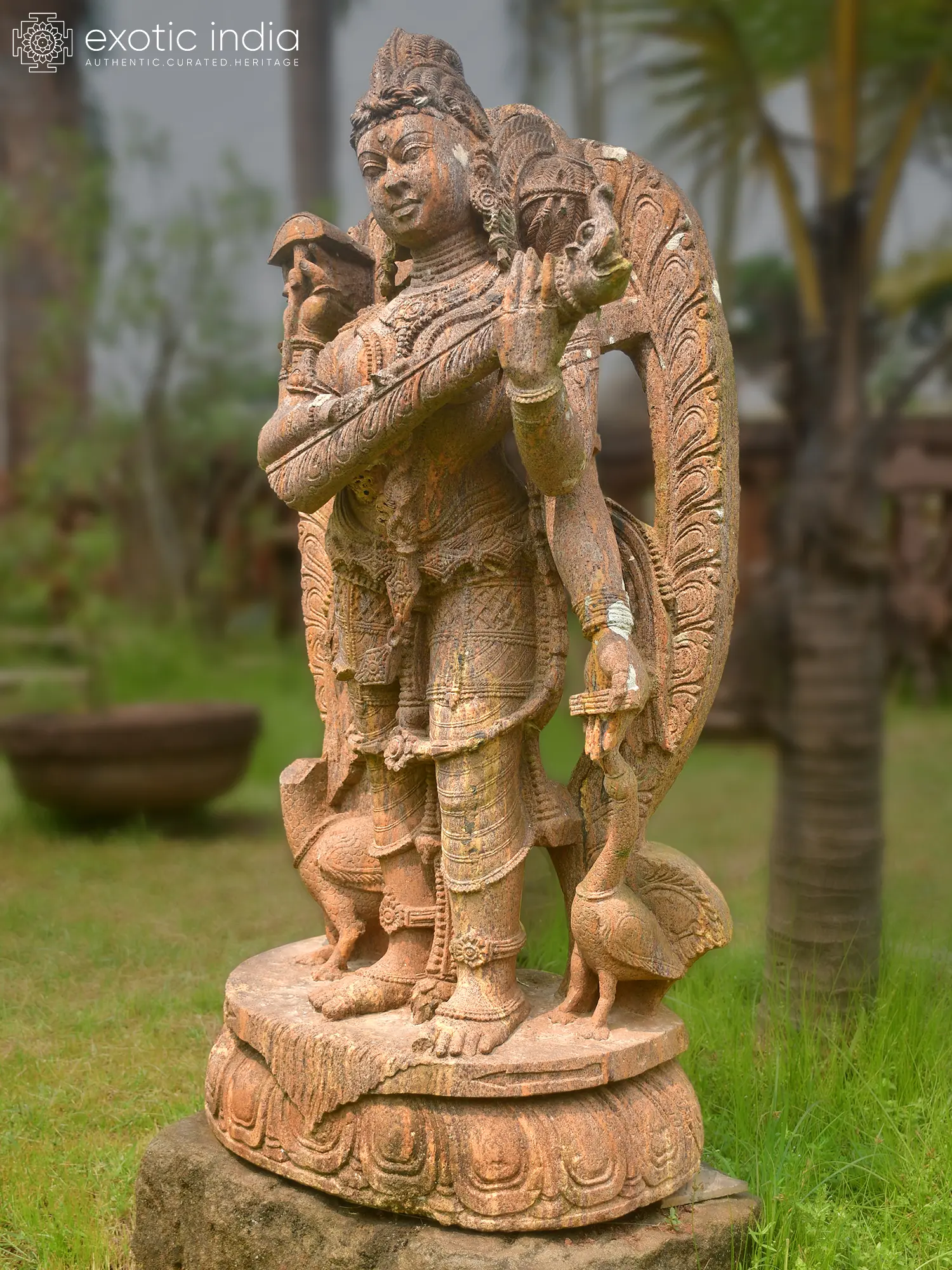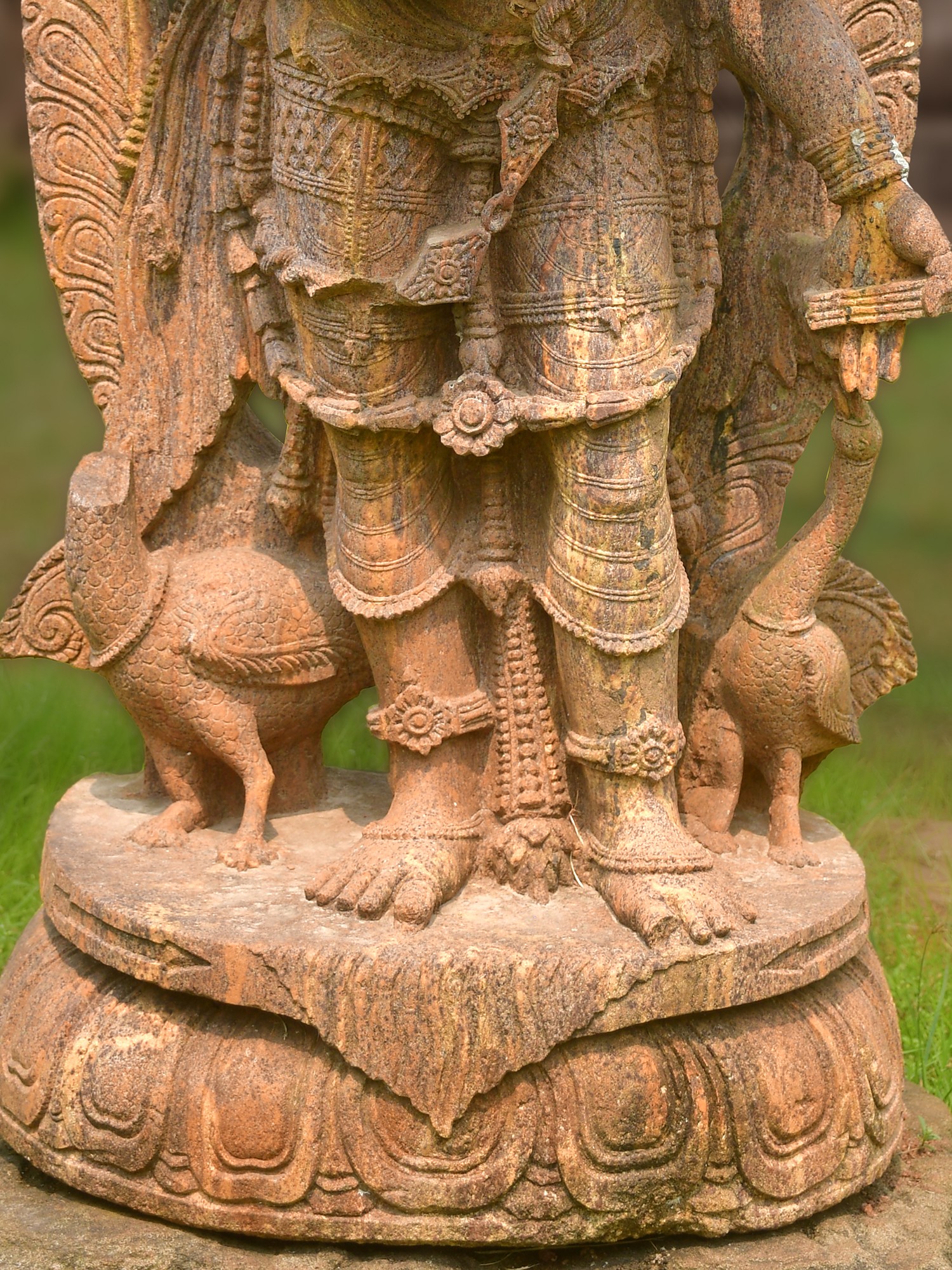 Each contour and curve of this magnificent form is a testament to the enduring legacy of Indian artisanal mastery. Carved meticulously from the finest Orissa sandstone, renowned for its rich texture and warm, earthy hues, this creation speaks of patient dedication and an intimate understanding of the medium. The stone itself, carefully selected for its durability and aesthetic qualities, undergoes a transformative journey under the sculptor's skilled hands, revealing a breathtaking tableau imbued with spiritual significance and artistic finesse. You'll appreciate the deep carving and the nuanced play of light and shadow that brings this deity to life.