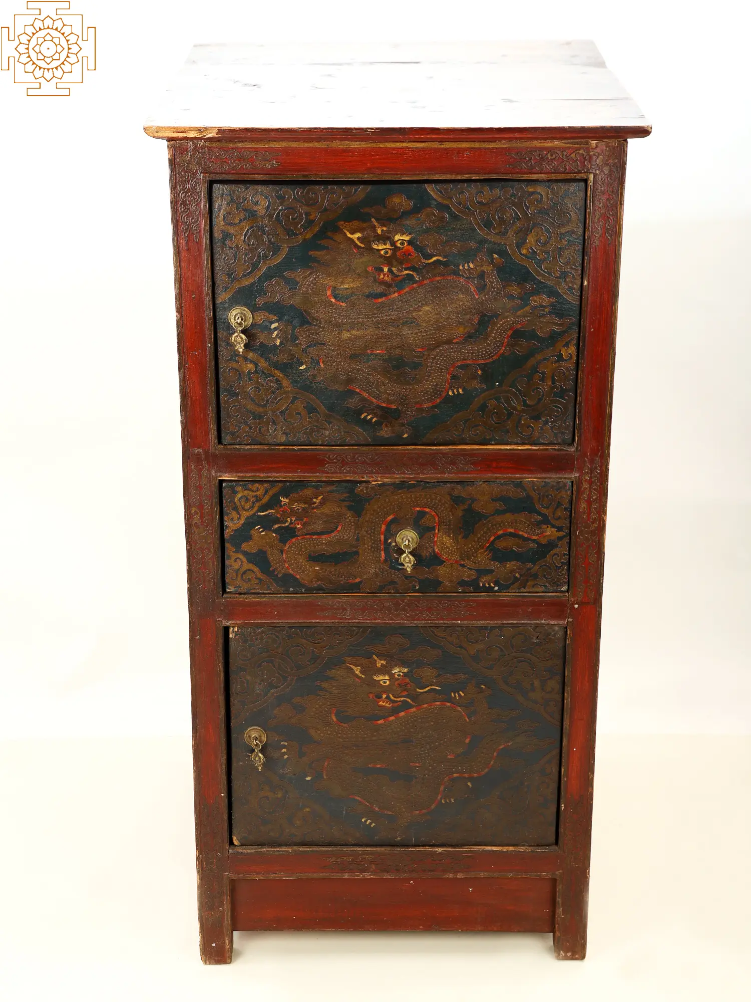 30" Vintage Hand Carved Old Wooden Decorative Single Door And Drawer Cabinet