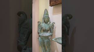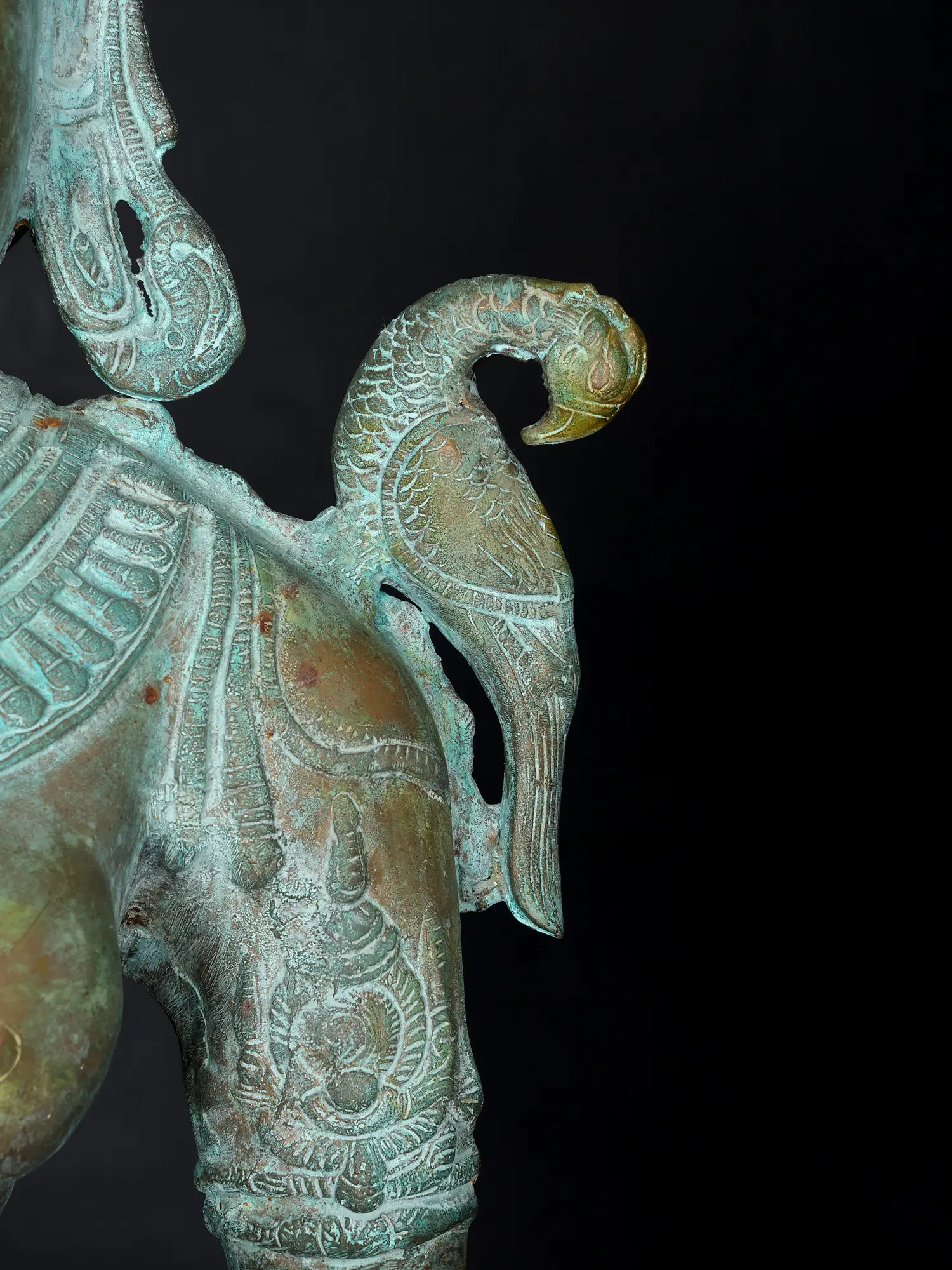 The statues are a testament to the skill and dedication of the artisans who created them. The level of detail in the intricate carvings and the graceful posture of the goddesses is remarkable. From the meticulously sculpted crown adorned with delicate floral motifs and geometric patterns, to the graceful drape of her clothing, and the subtle expression on her face—each element is crafted with precision. The fine detailing in her jewelry, the flowing lines of her garments, and the lifelike rendering of the peacocks demonstrate a mastery of traditional bronze-casting techniques passed down through generations. These statues are more than just decorative pieces; they are works of art that will captivate and inspire for generations to come.