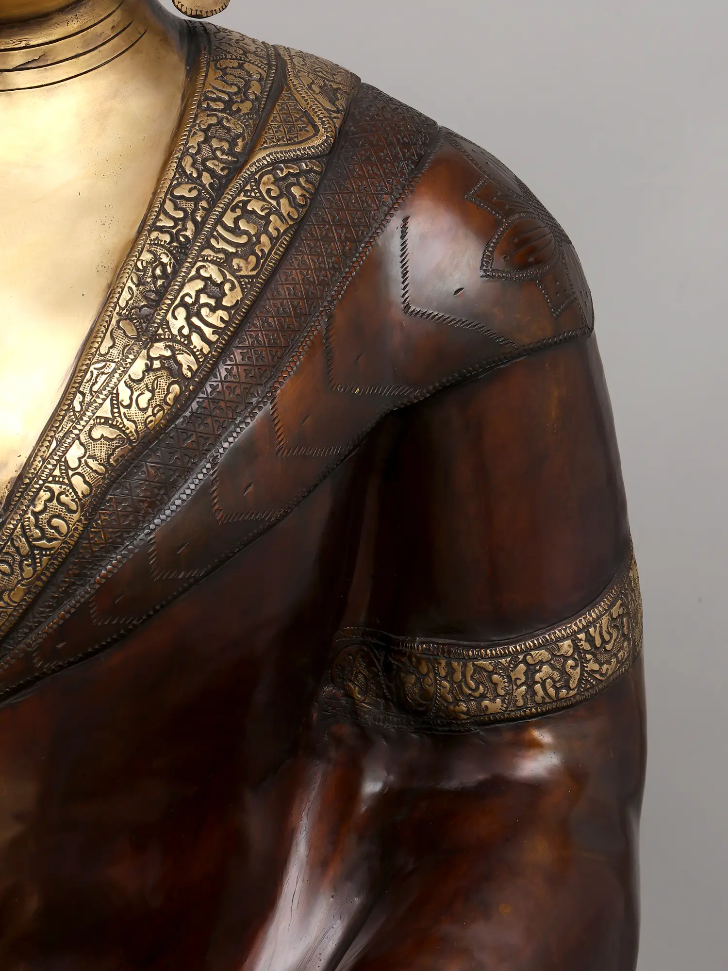 36" Gracious Buddha, Clad in a Luxuriant Robe in Brass | Indian Handcrafted Idol