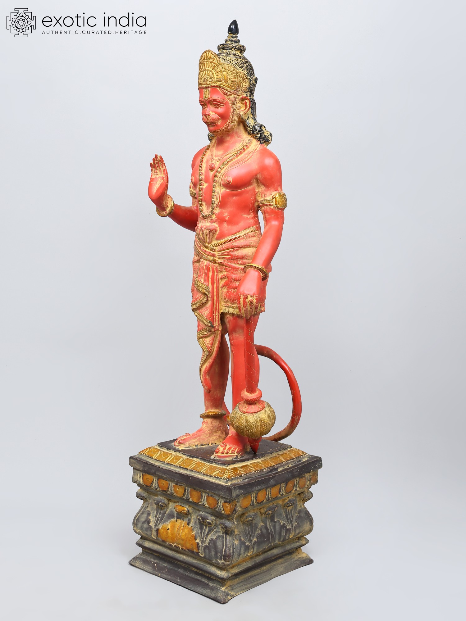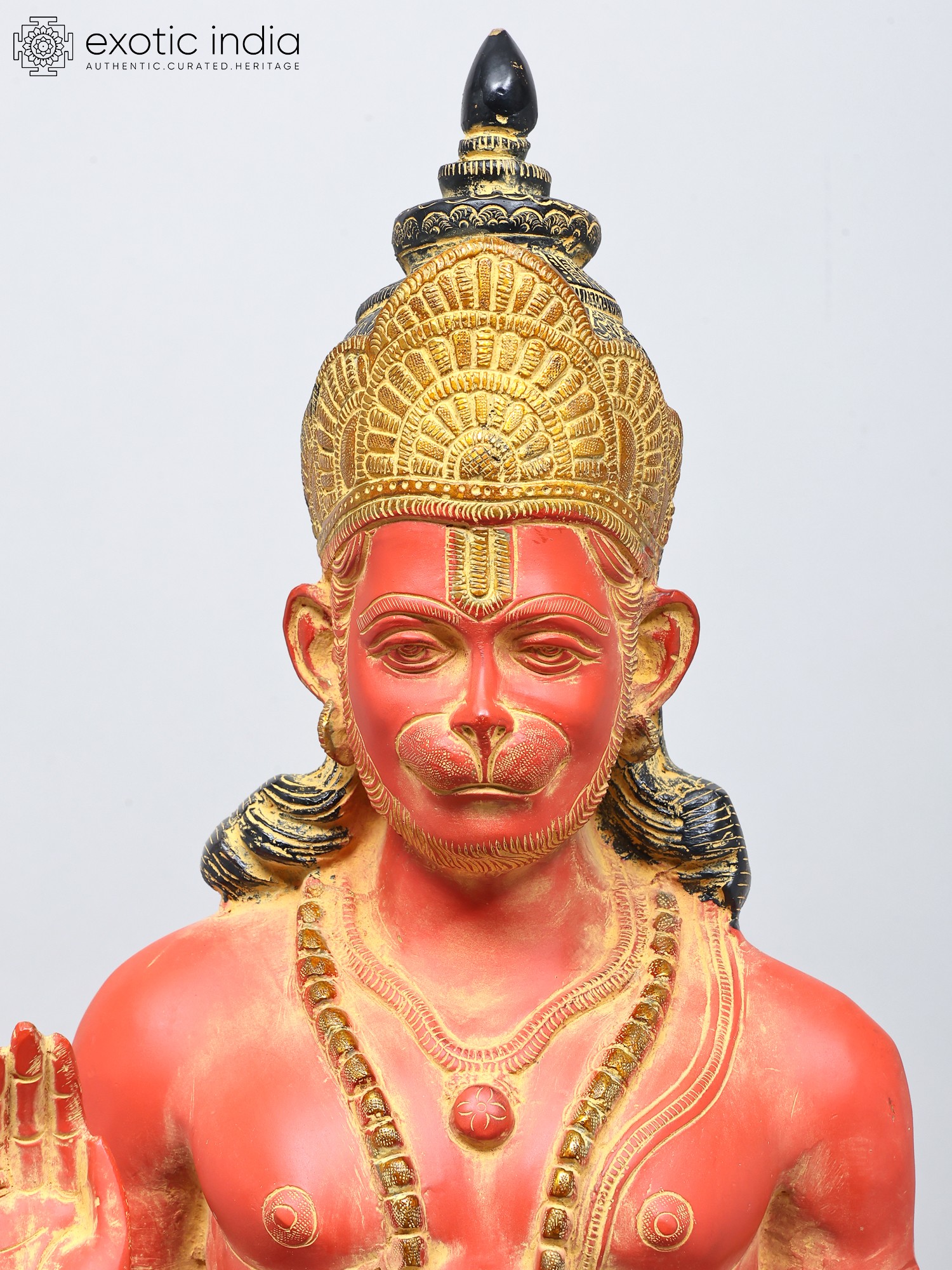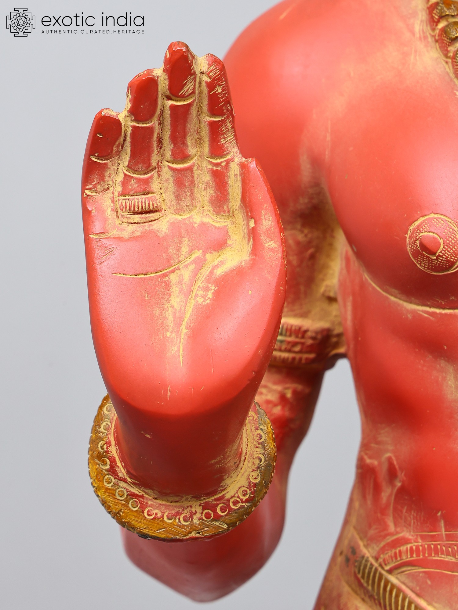 12" Superfine Standing Lord Hanuman in Blessing Gesture | Brass Statue with Inlay Work