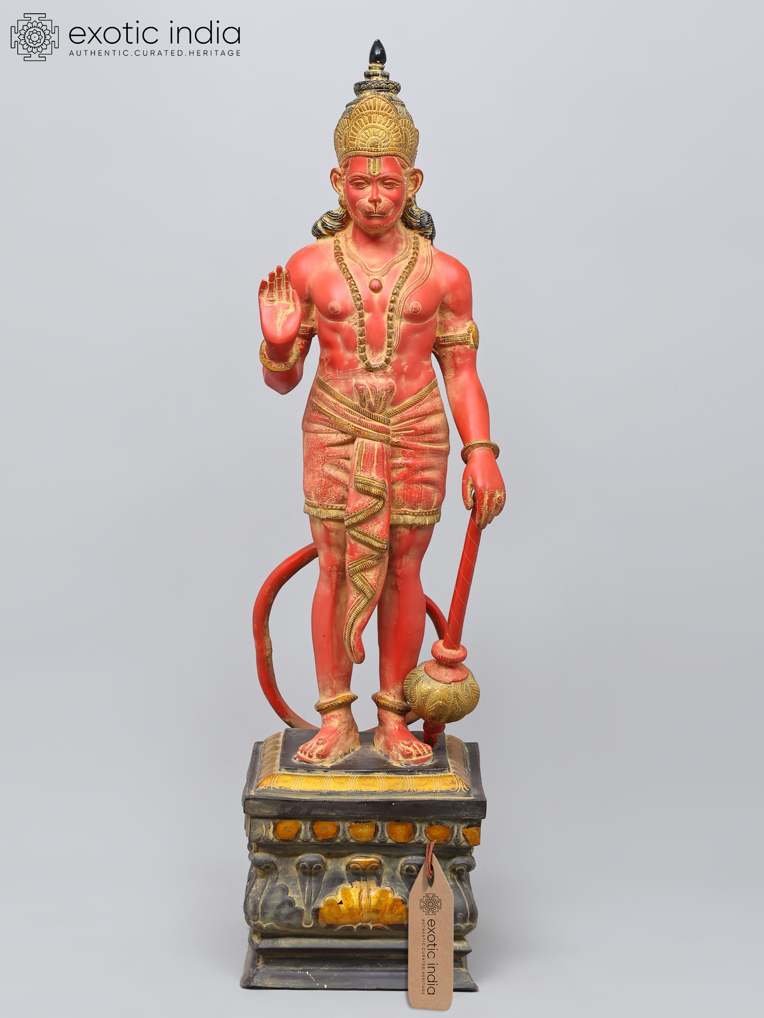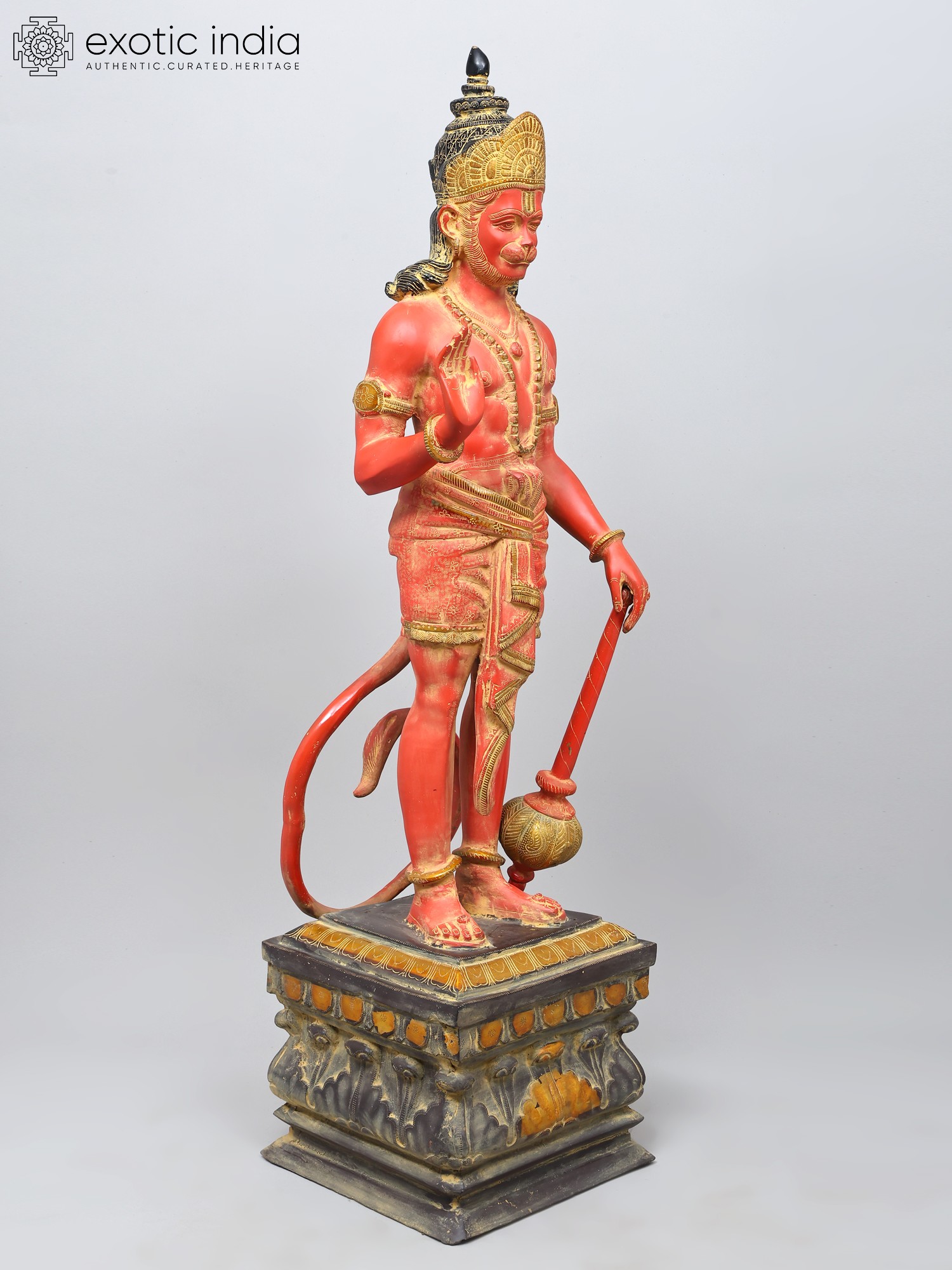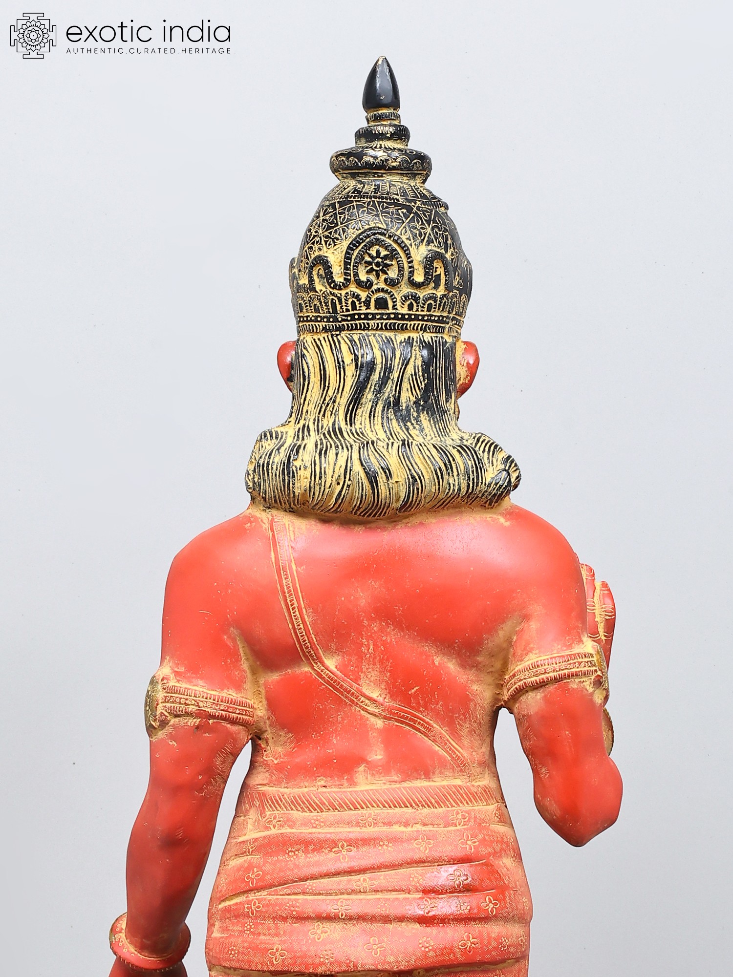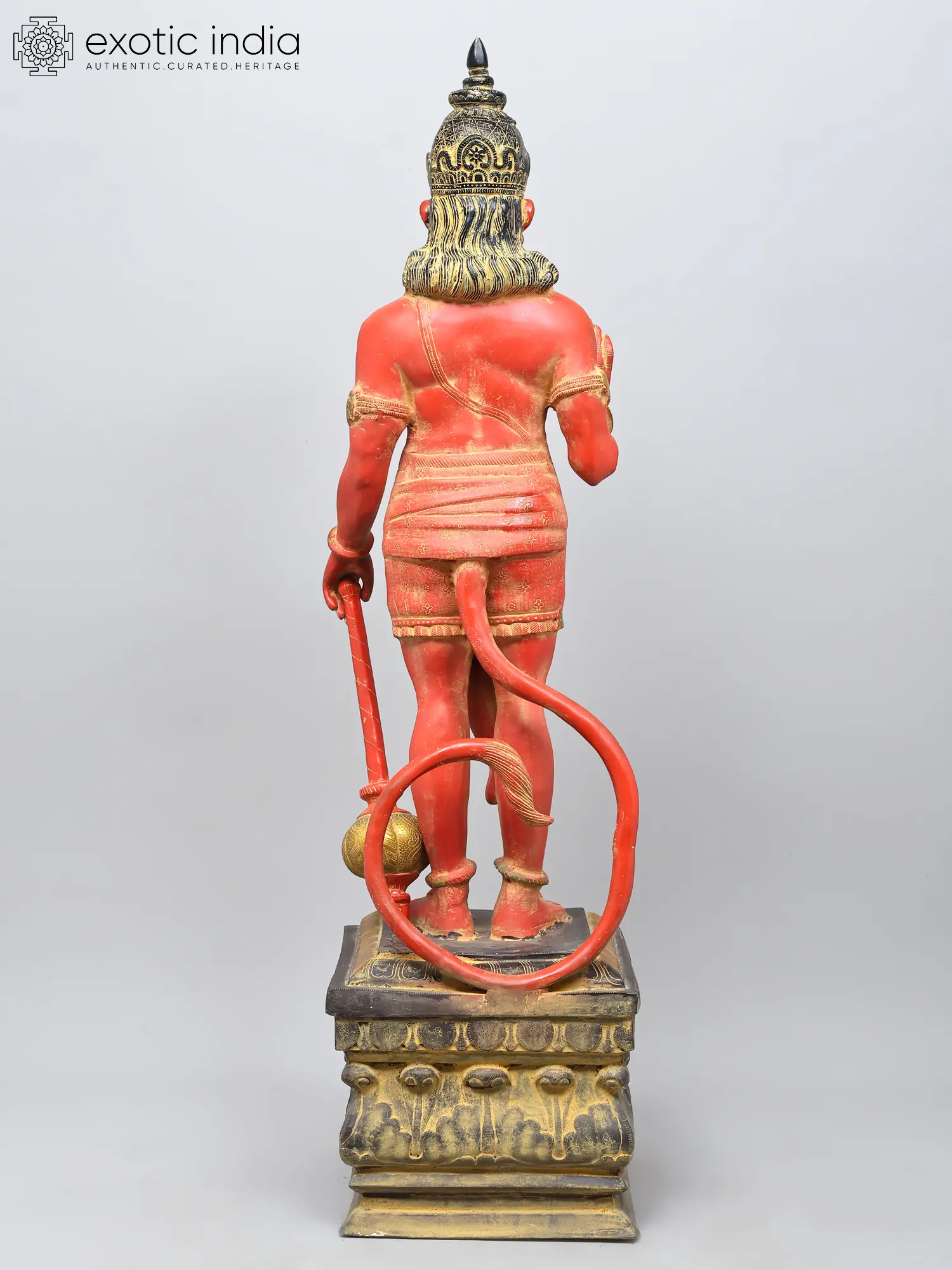 12" Superfine Standing Lord Hanuman in Blessing Gesture | Brass Statue with Inlay Work
