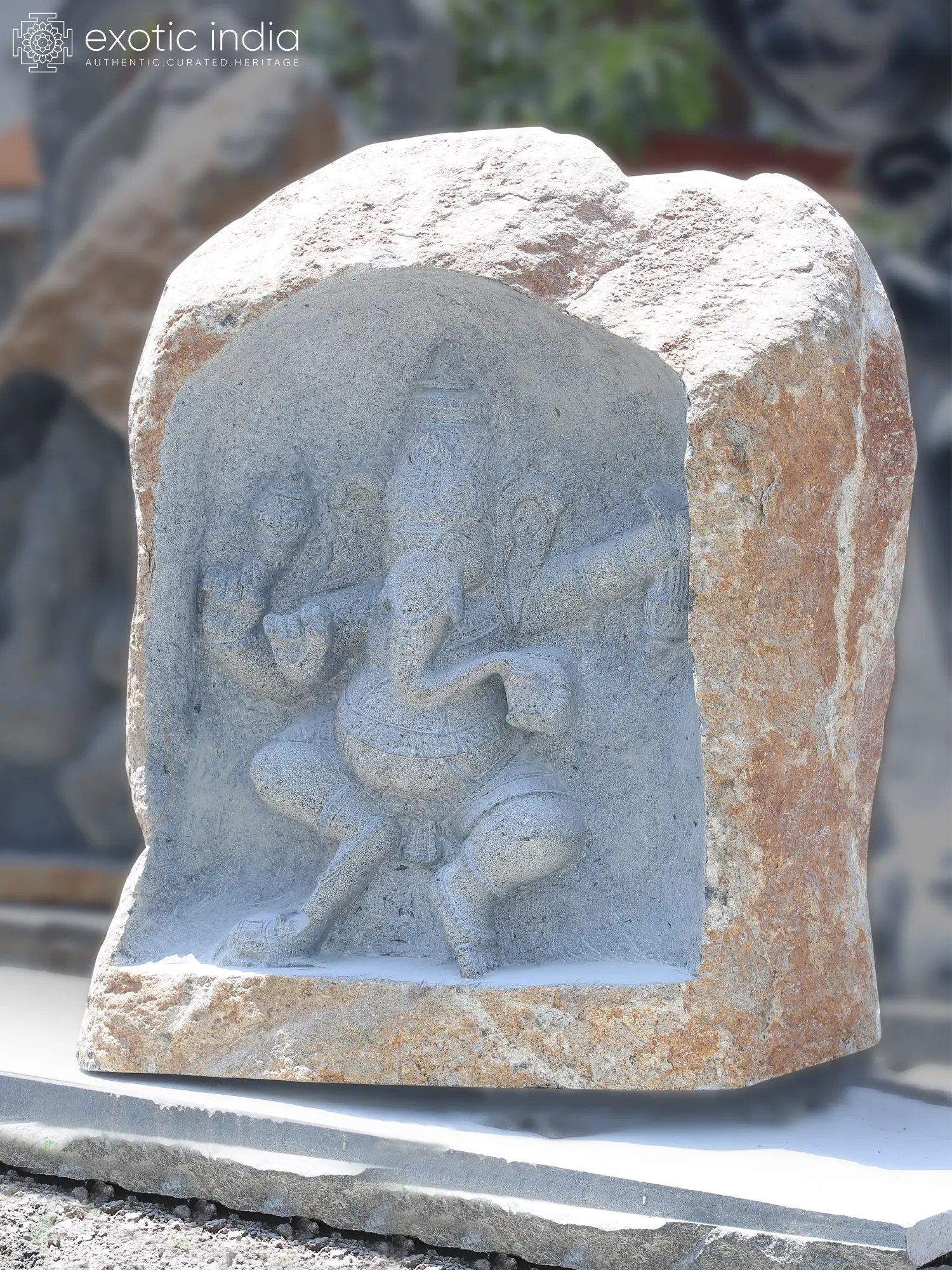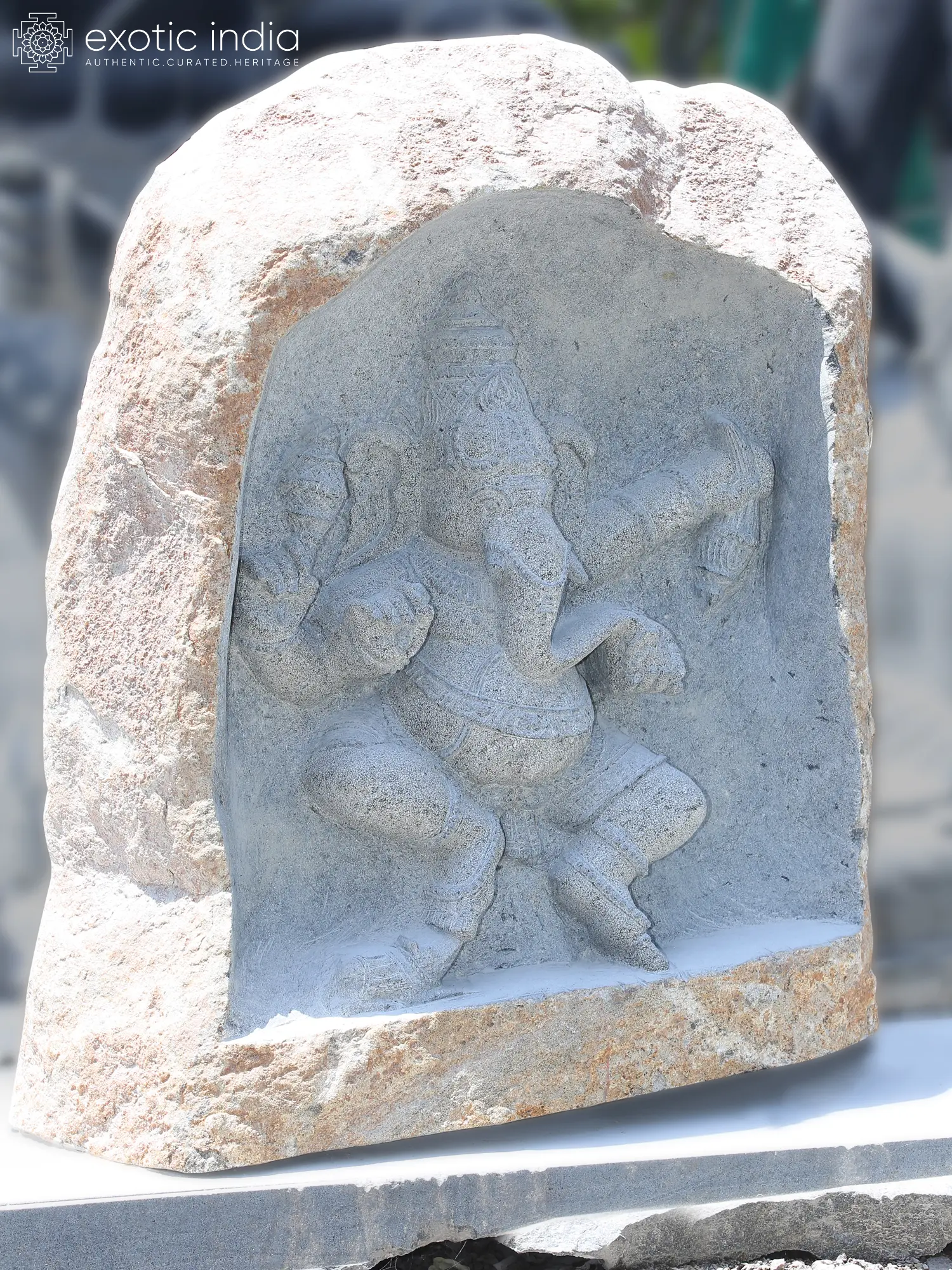 This Large embossing stone statue is a breathtaking portrayal of the joyful and dynamic Lord Ganesha.