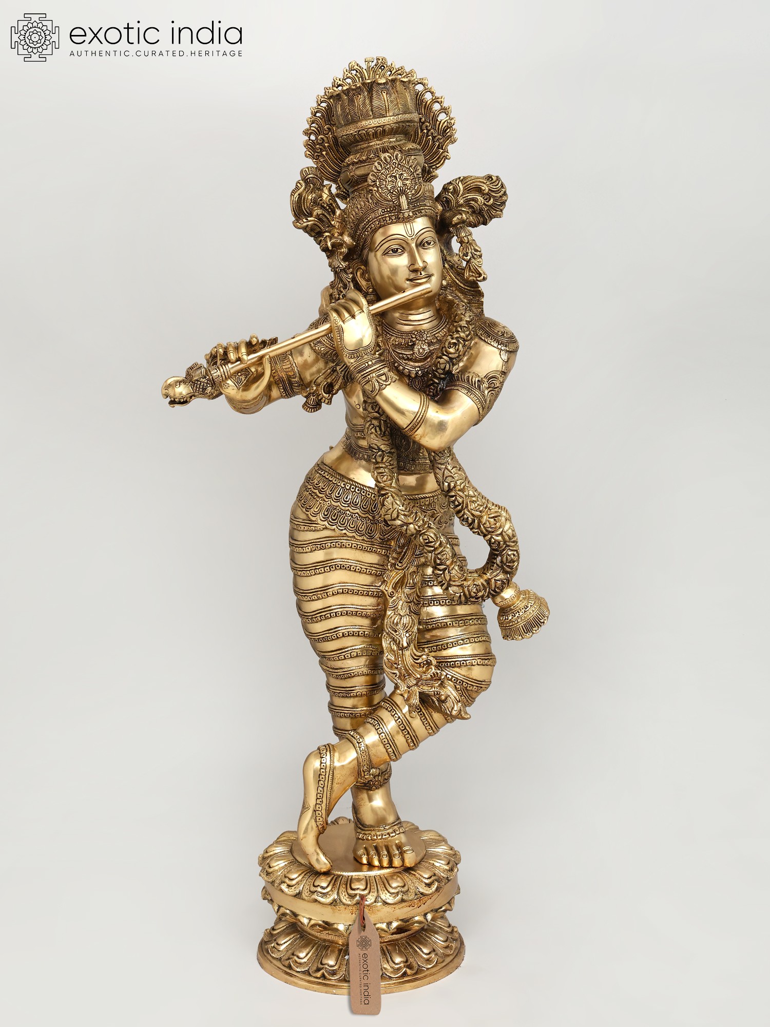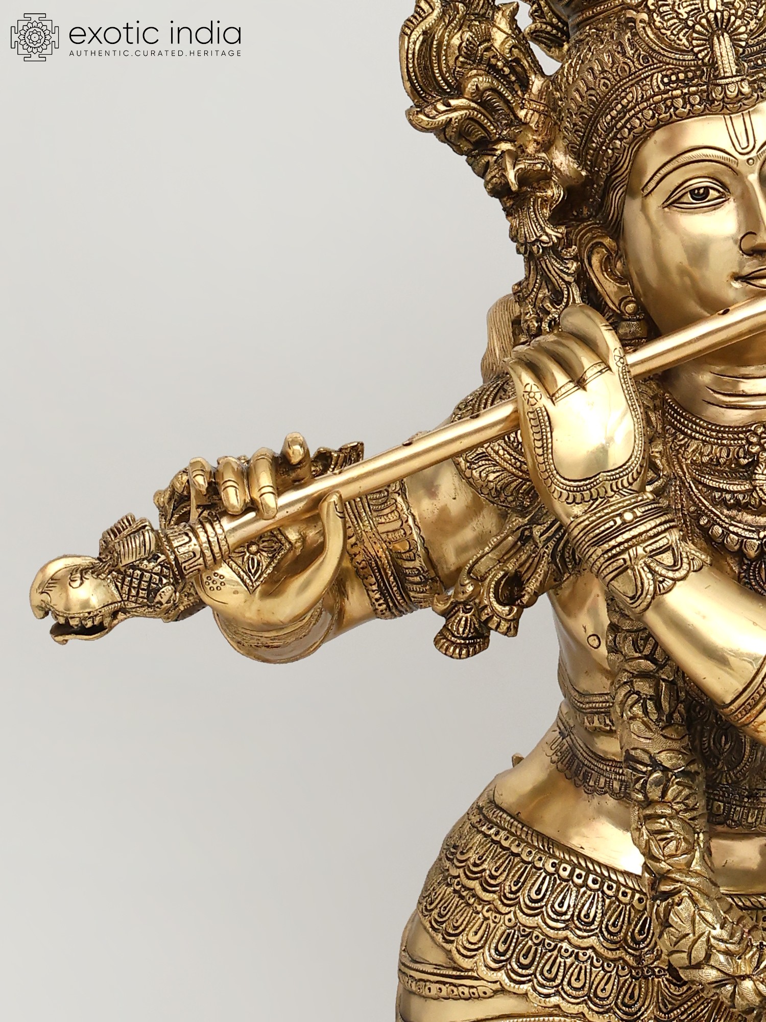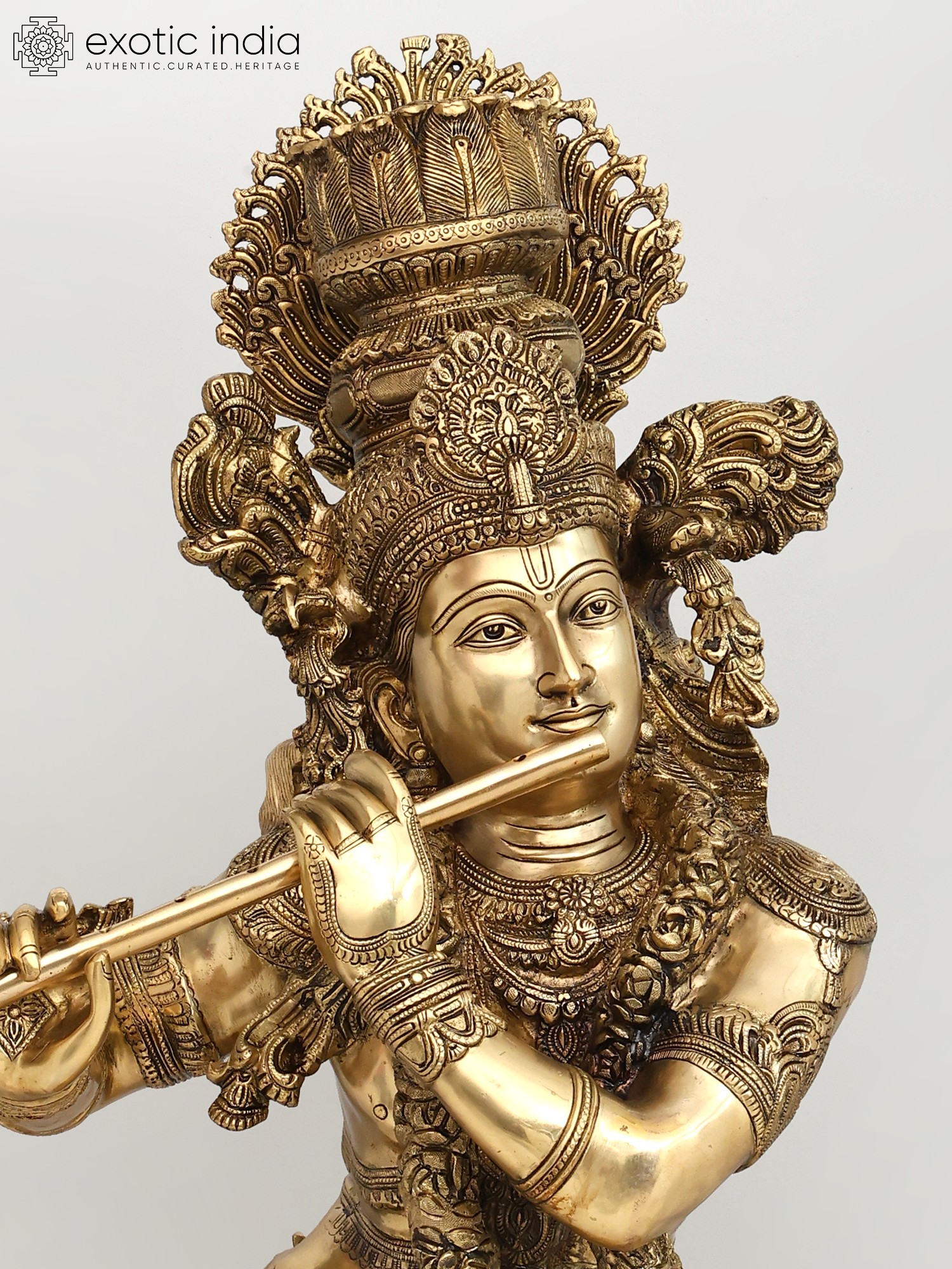 45" Large Superfine Lord Krishna Playing Flute | Brass Statue