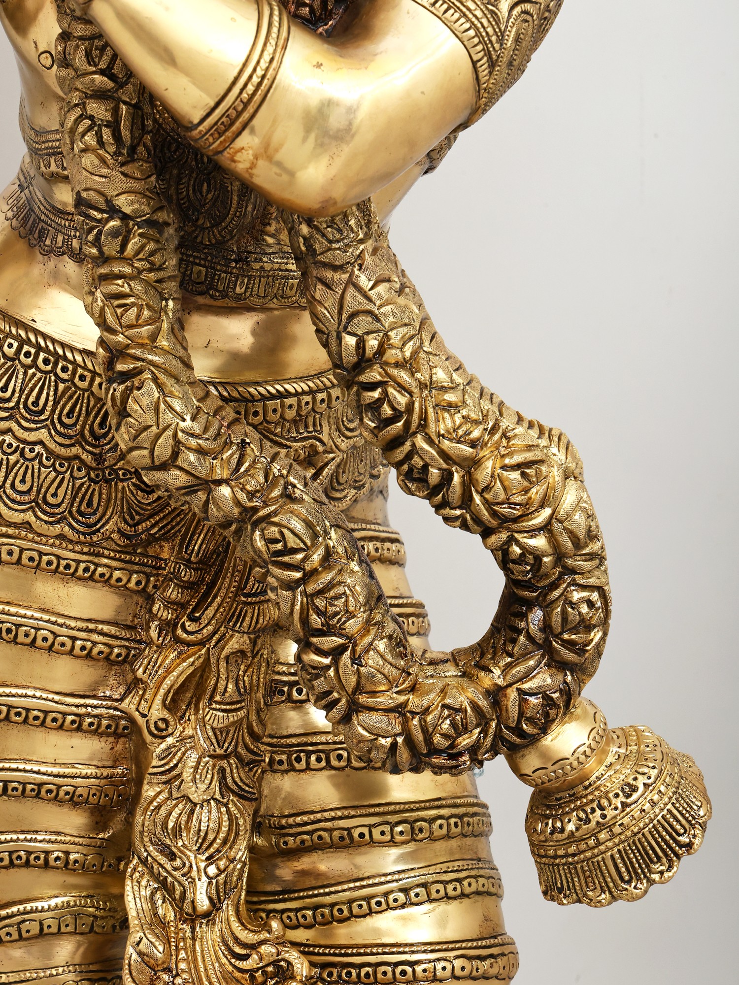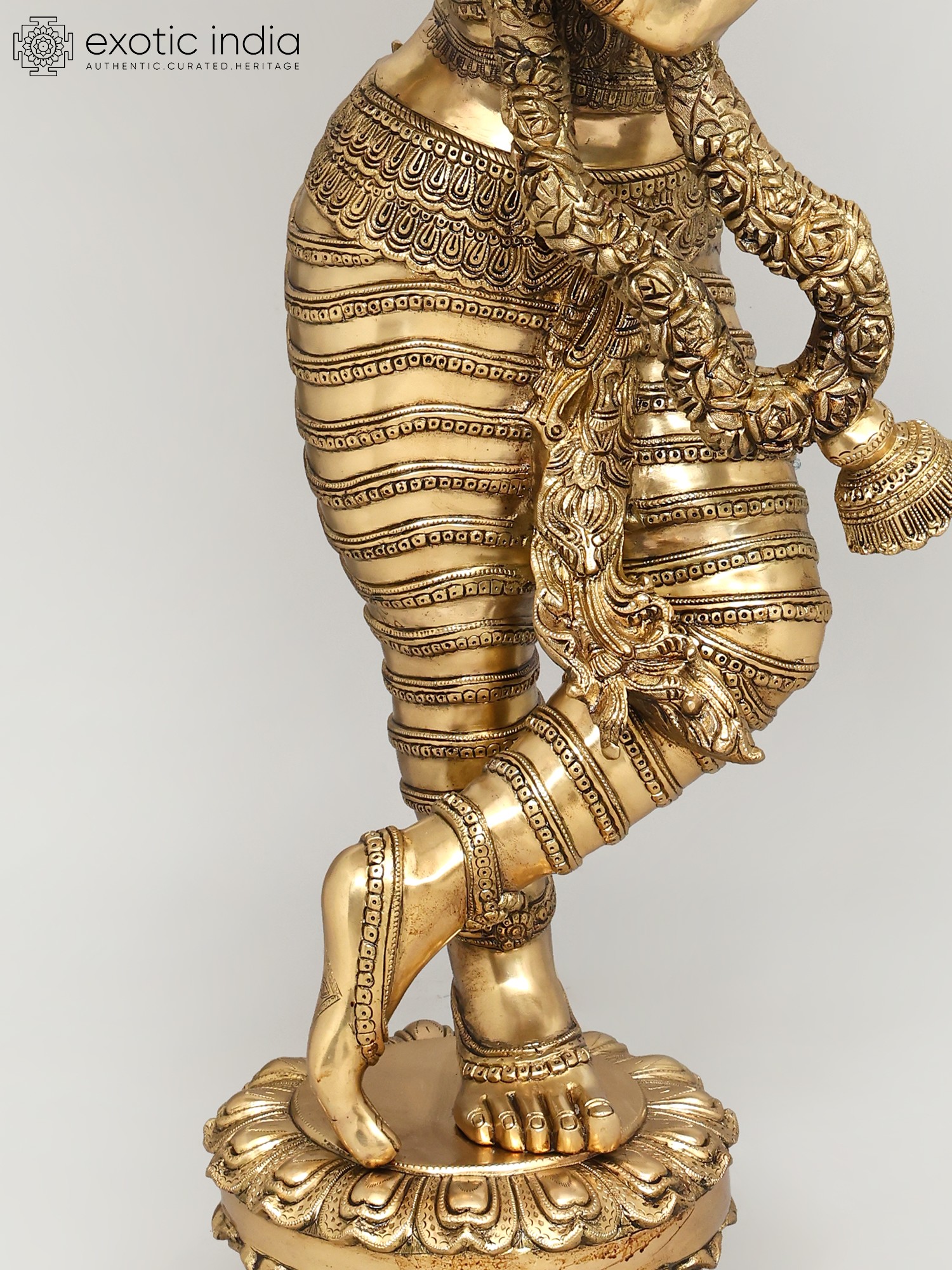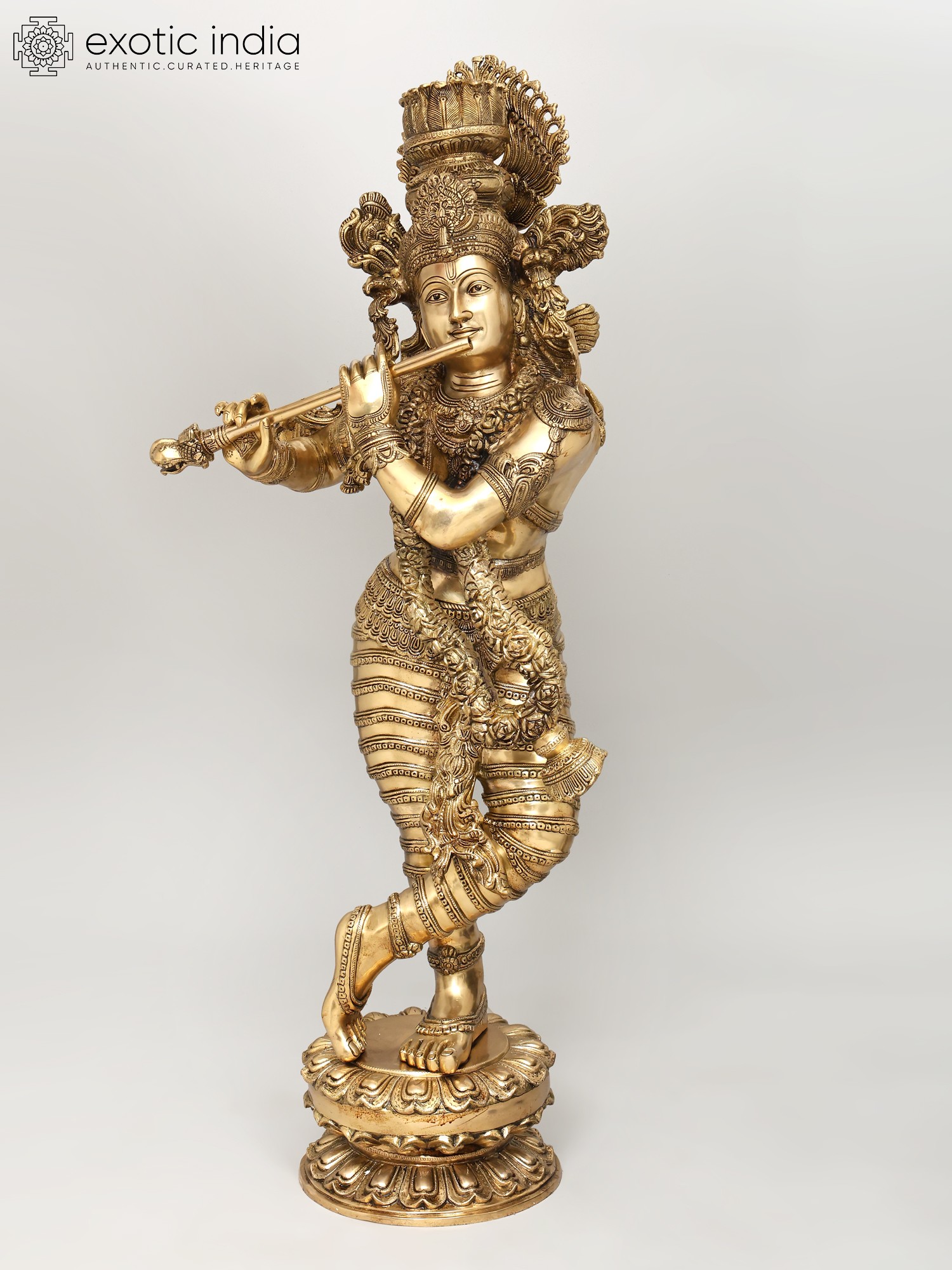 45" Large Superfine Lord Krishna Playing Flute | Brass Statue
