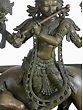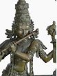 The story of Krishna becoming Narayana is told in the Chaitanya Charitamrita, where the Gopis, upon encountering the celestial body of Narayana, as seen in this bronze murti, expressed their adulations for him and immediately began inquiring about their Kanahiya. They asked, “Where is our Kishora, all-beautiful Krishna?” The pure, devotional ecstasy that the milkmaids felt for the dark-skinned youth was absent in their meeting with the great Narayana. There was devotion, but there was no Prema Bhava (emotion of love). The intense affections that they had for the divinely romantic Lilas (plays) of Krishna were solely for Him. Towards no other being, not even Narayana-Vishnu who is the source of all beauty and exquisiteness of the universe, could they feel the attraction they felt for the young cowherd playing his flute, in the groves of Vrindavana. This is the zenith of Prema (love) and Bhakti (devotion). Immersed in such tales of the Gopis’ pure love, Krishna in his manifestations appear to be Madhurya-nilaya, the dark-skinned lord who is the eternal source of blissful sweetness. Such infinite divine lavishness of the lord is the inspiration behind this superb Krishna bronze.