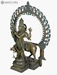 Krishna, the eternally youthful form of Vishnu is the beloved of the milkmaids of Vrindavana, whose heart he has captured with the melodies of his flute and the magnificence of his beauty, manifests himself in this beautiful bronze idol. Enchanted by the divine opulence of Sri Krishna, the gopis offer their hearts and minds to the lotus feet of their loving Sakha (friend), like a devotee who offers flowers to her God. One day jestingly, the lover “Kanha” transformed himself into the lord of the primordial waters, “Narayana”. In this exquisite Krishna Panchaloha bronze sculpture, He appears in his “Chaturbhuja” or four-armed Narayana Roopa (form).